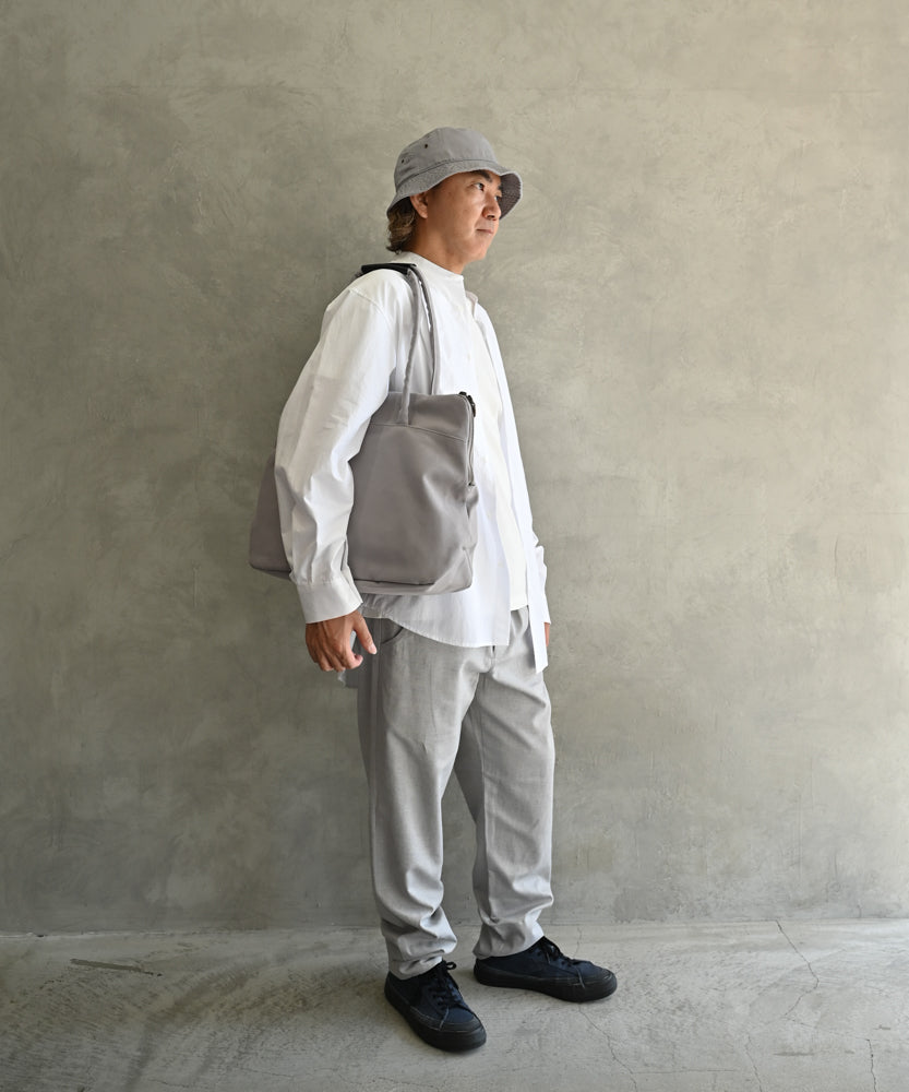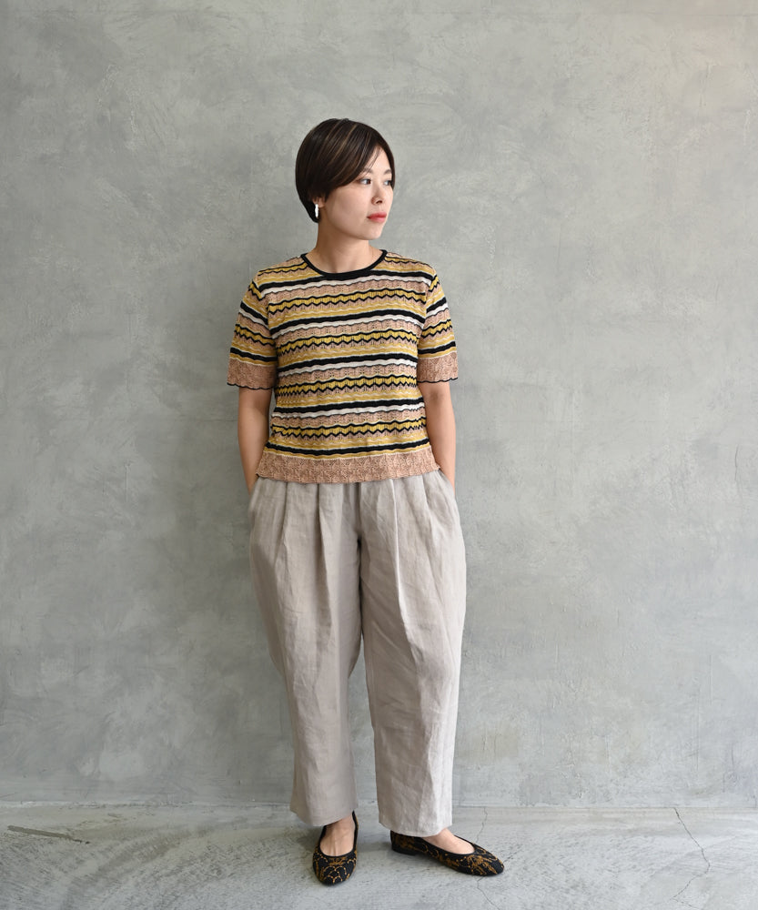 リネンウール裾タックパンツ (mug310 グレー/ベージュ)