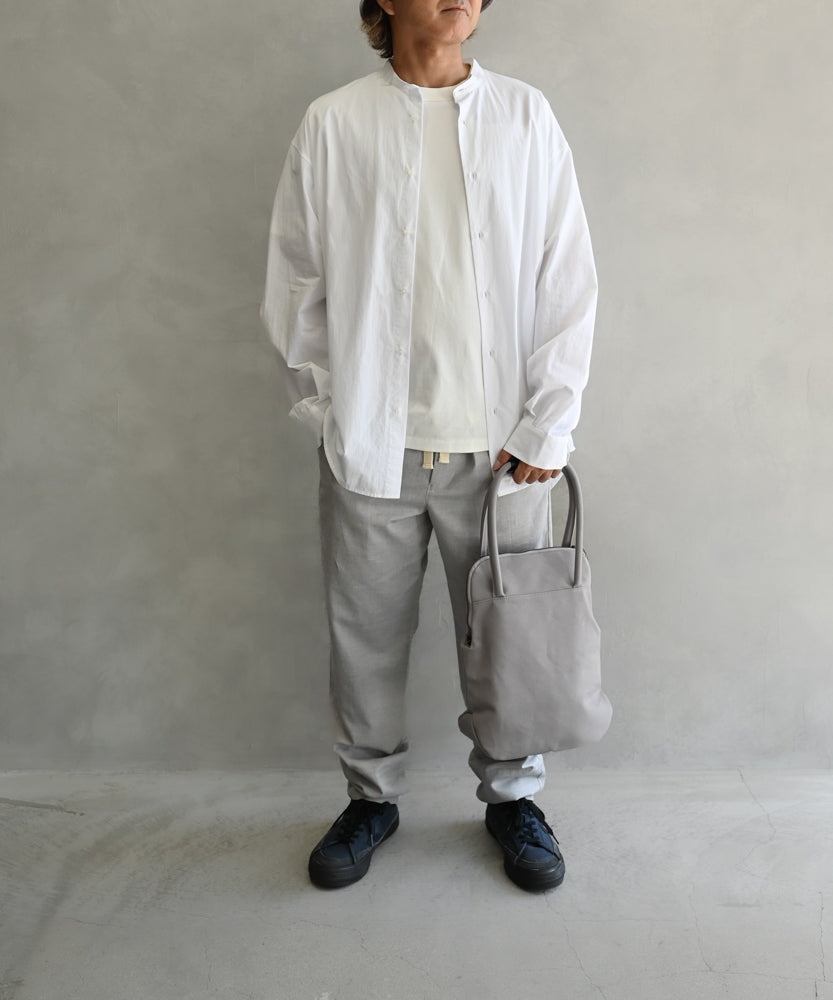 〈遠州織物〉ノーカラーブラウス (mug124)