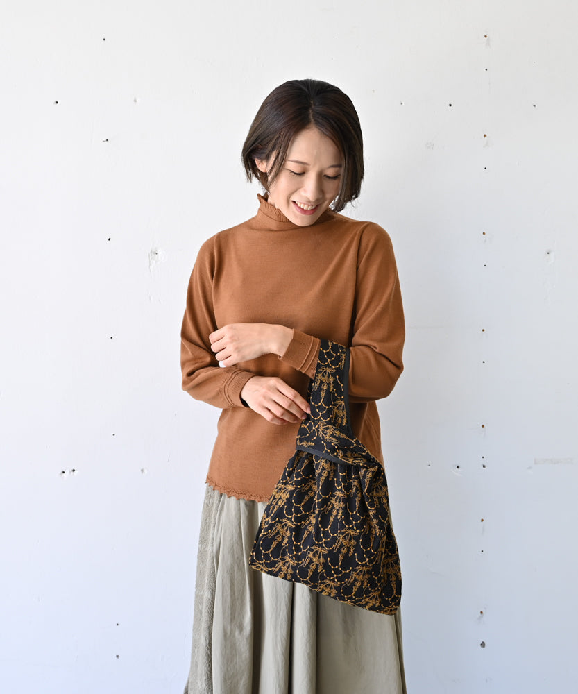 〈高品質シルク&スーピマ超長綿〉〈洗えるニット〉半袖ボトルネックプルオーバー (muf911) (mub914-ORG)