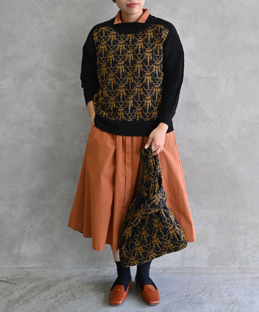手仕事のビーズ花刺繍プルオーバー (eve946)