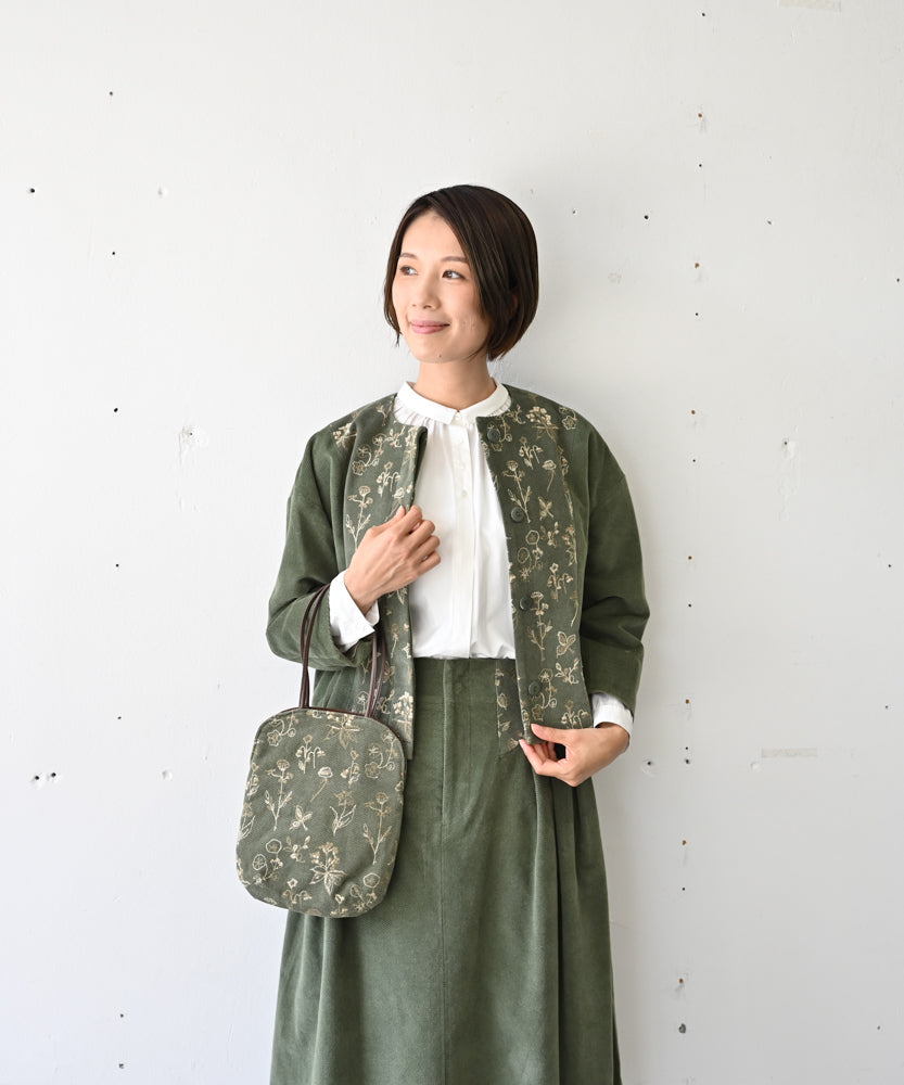 〈遠州織物 コットンコーデュロイ〉花刺繍のブルゾン (mug521)