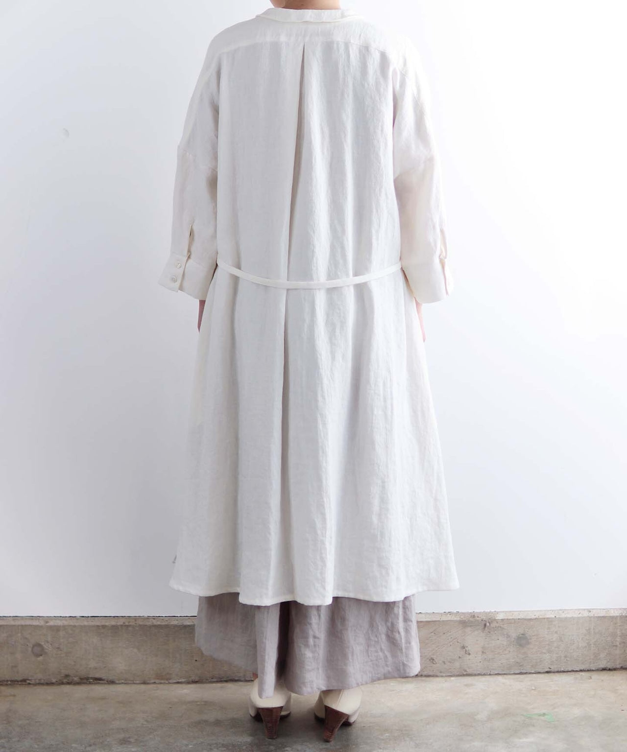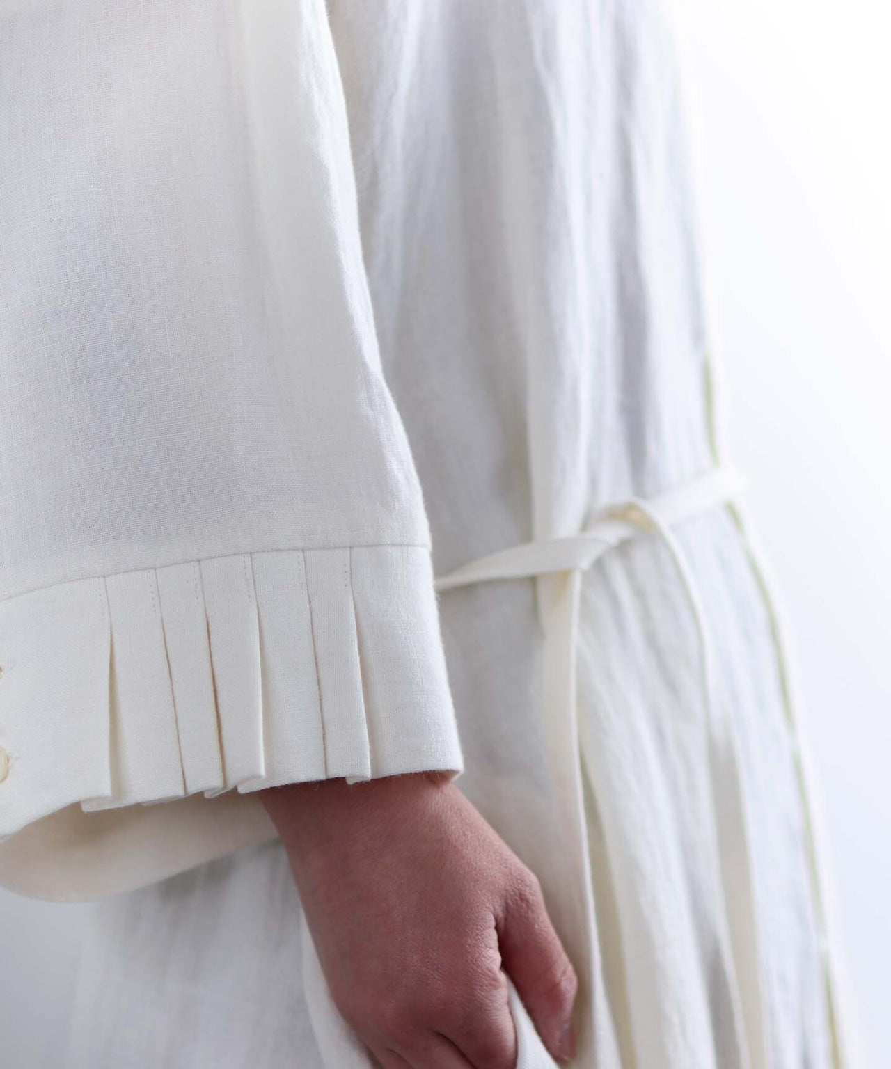 〈高品質ベルギーリネン100%〉〈2WAY〉ウエスト紐あり 小さめ衿 プリーツ袖 羽織り&ワンピースドレス (evh633)