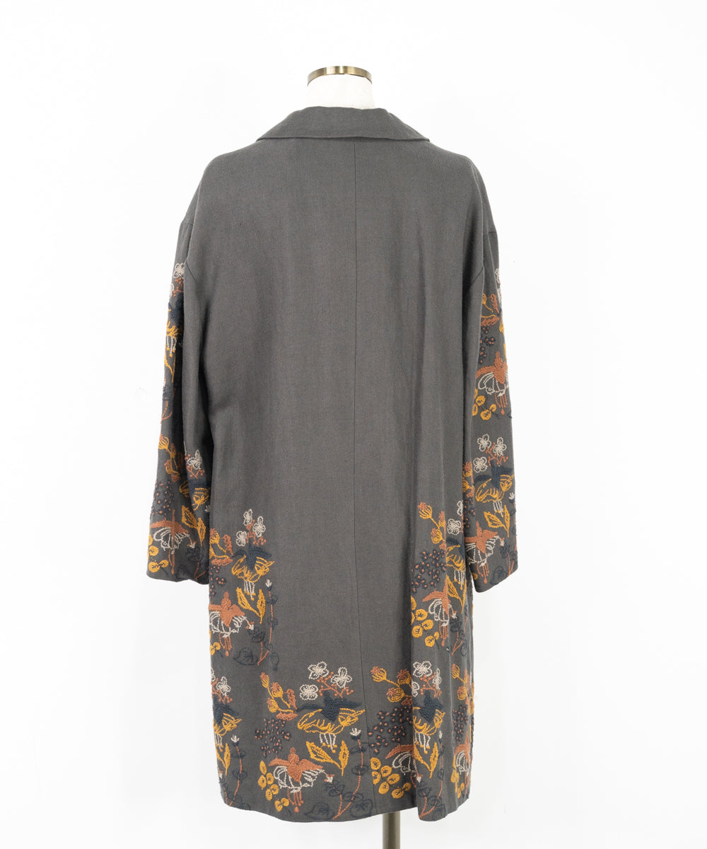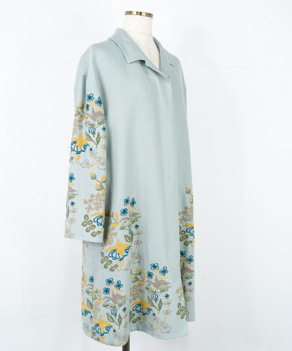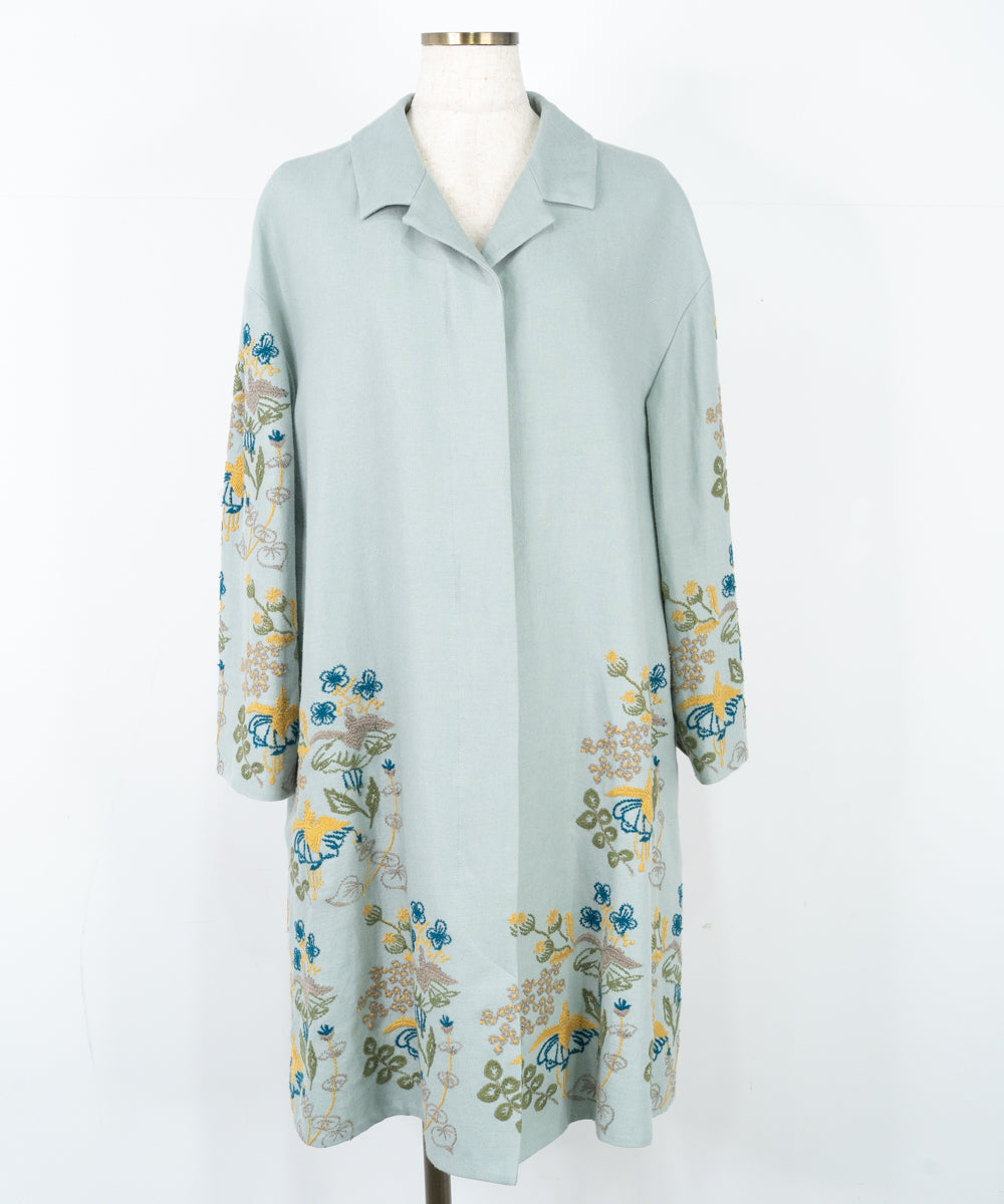 【ワケアリ】〈遠州織物 リネンウール〉フクシアの花刺繍 テーラードカラー比翼仕立てコート (muc501)