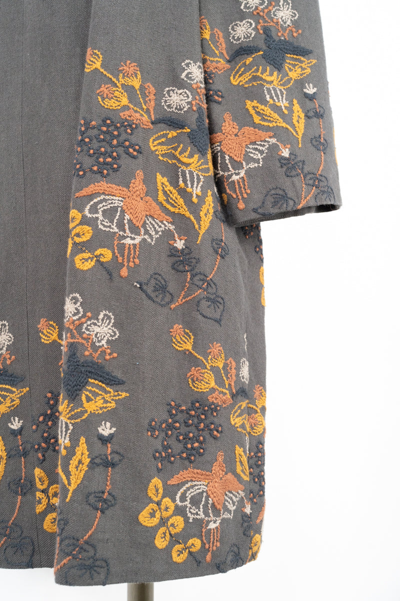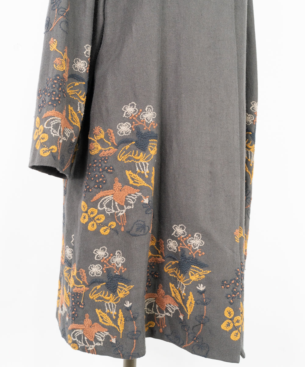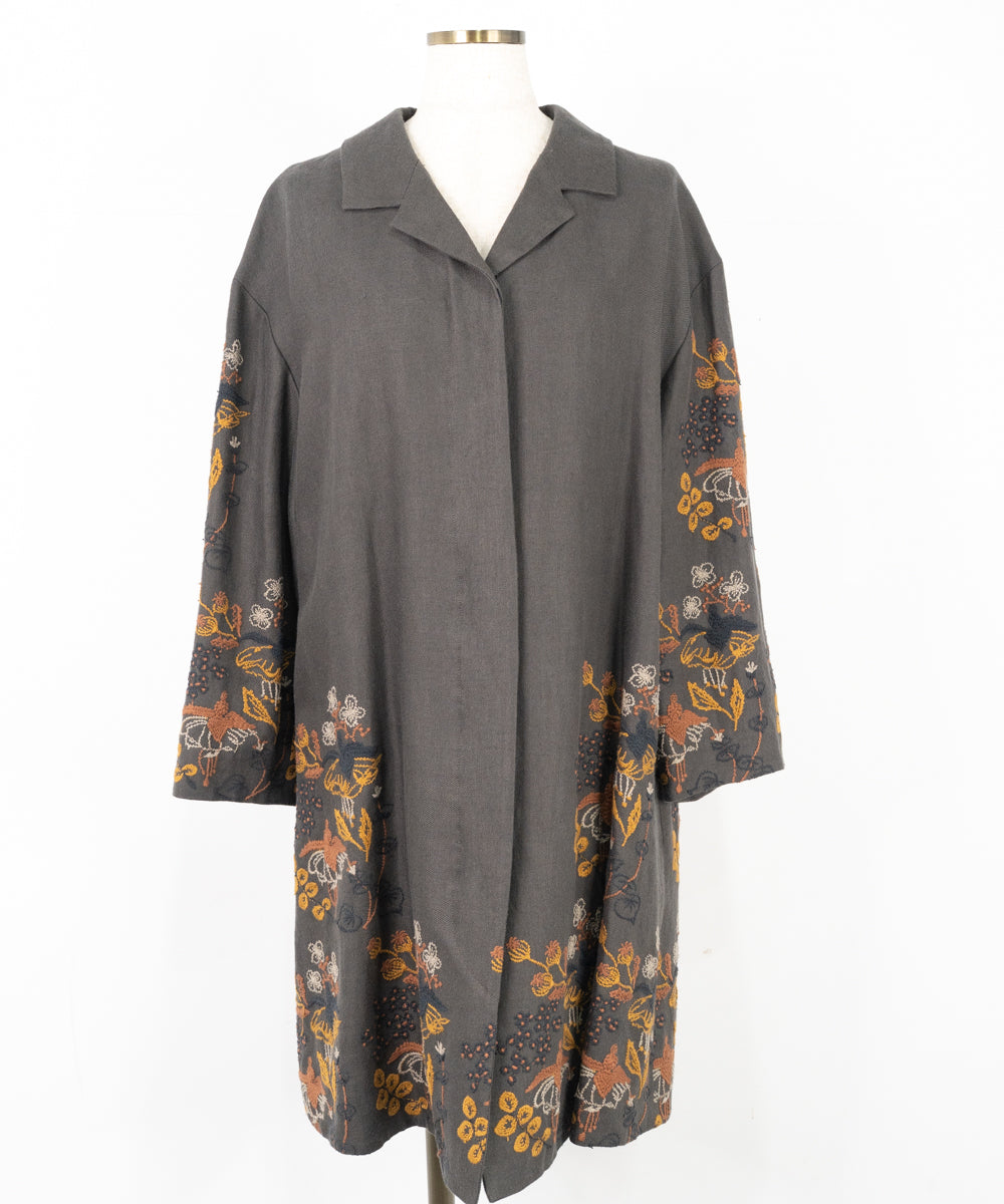 【ワケアリ】〈遠州織物 リネンウール〉フクシアの花刺繍 テーラードカラー比翼仕立てコート (muc501)