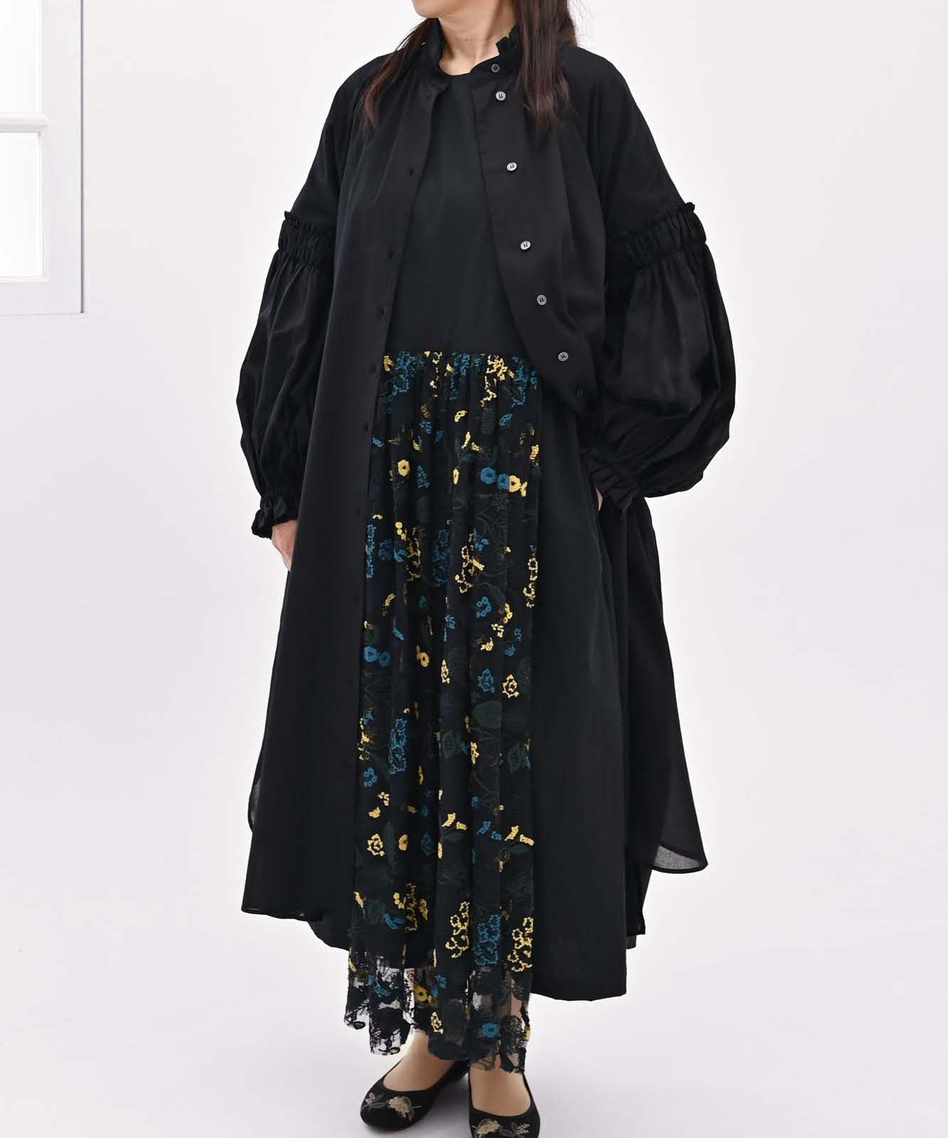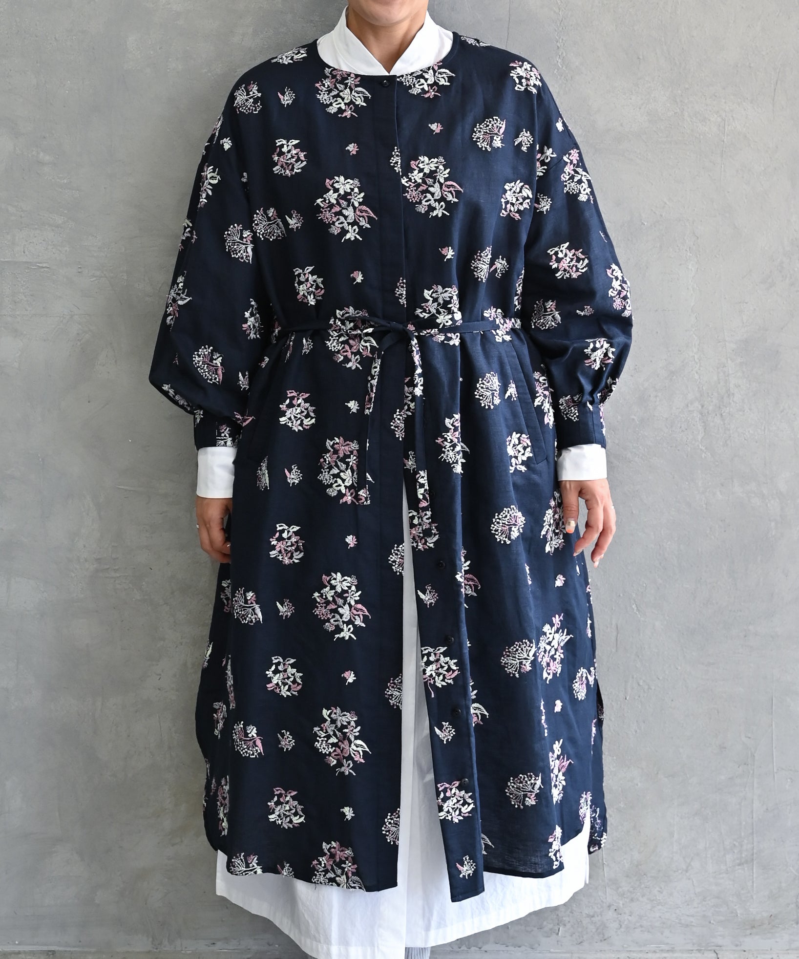 〈遠州織物 オーガニックコットン〉あじさい小花刺繍 羽織り&ワンピースドレス (muh607)