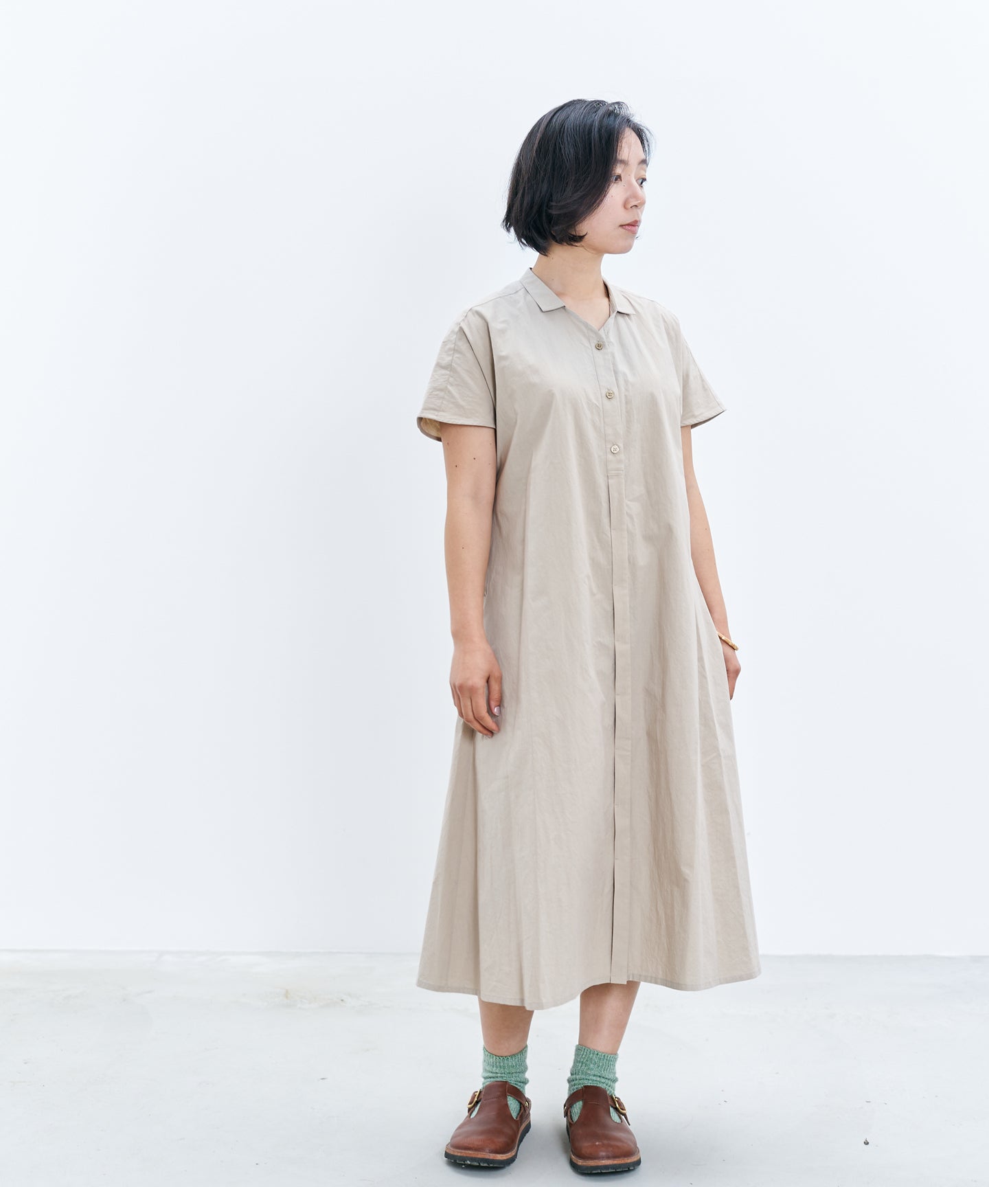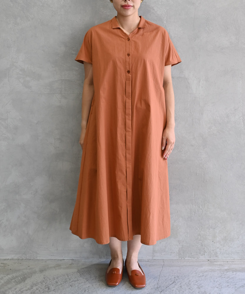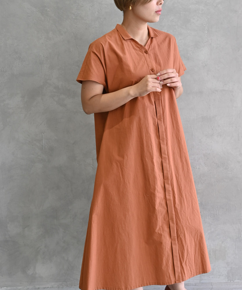 〈遠州織物〉フレンチスリーブのシャツワンピース (muf626)