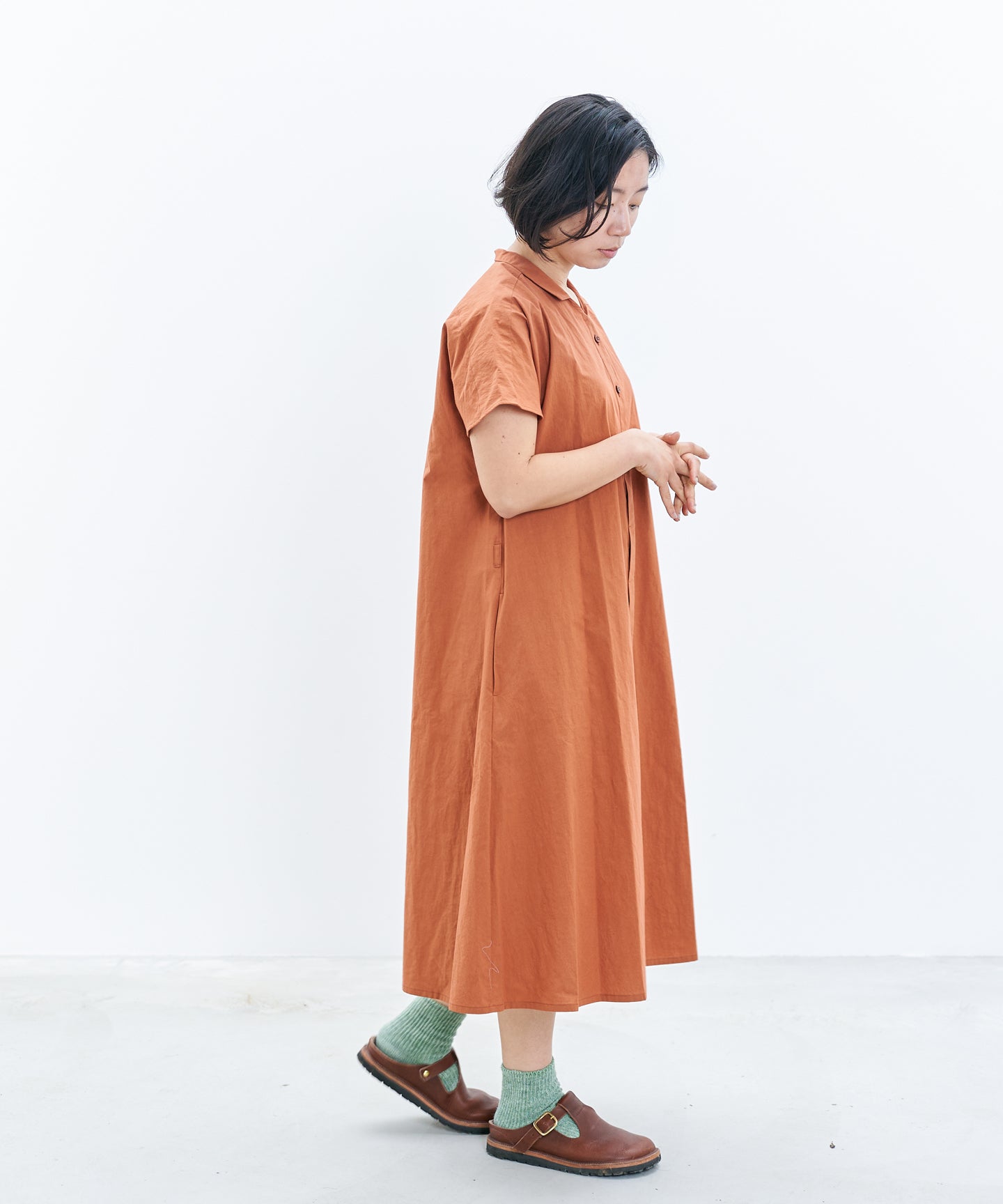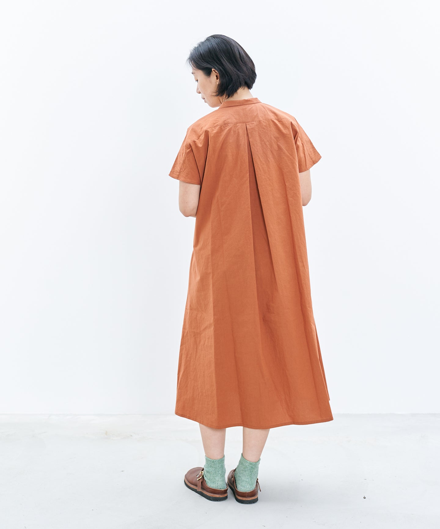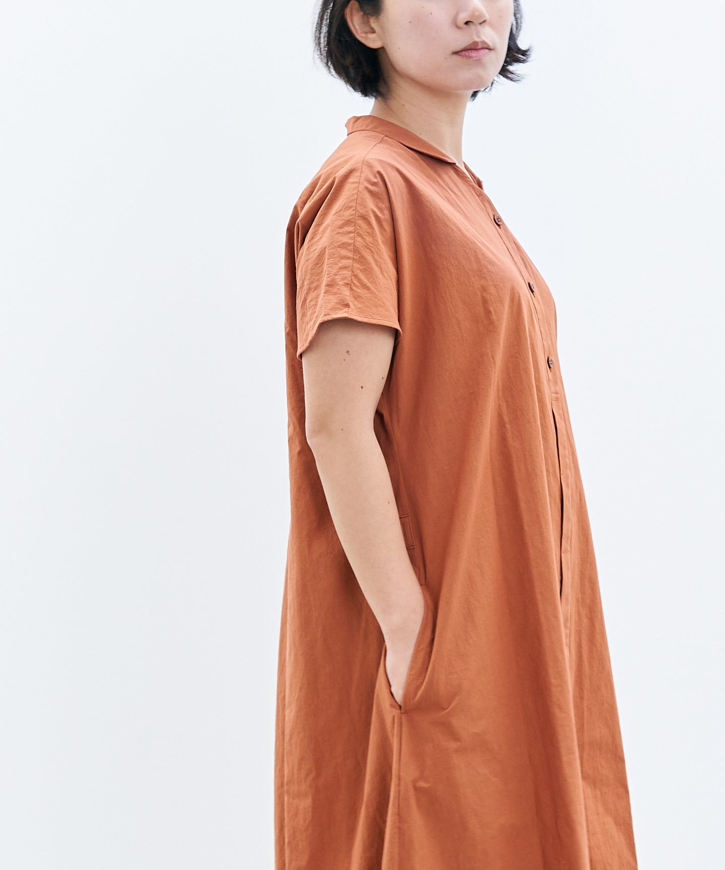 〈遠州織物〉フレンチスリーブのシャツワンピース (muf626)