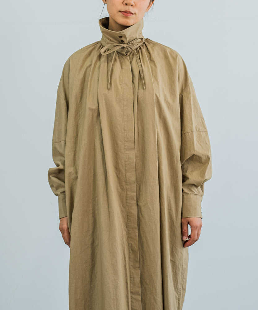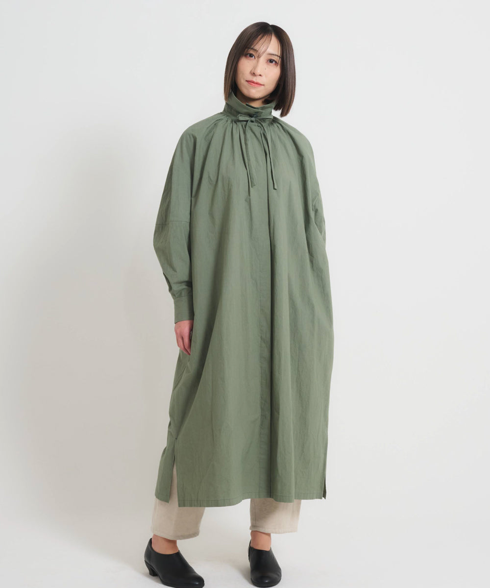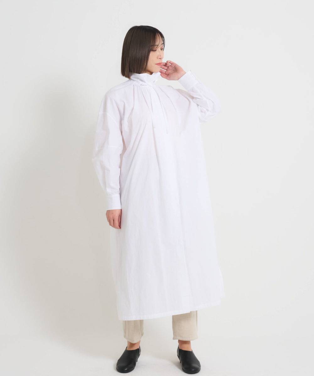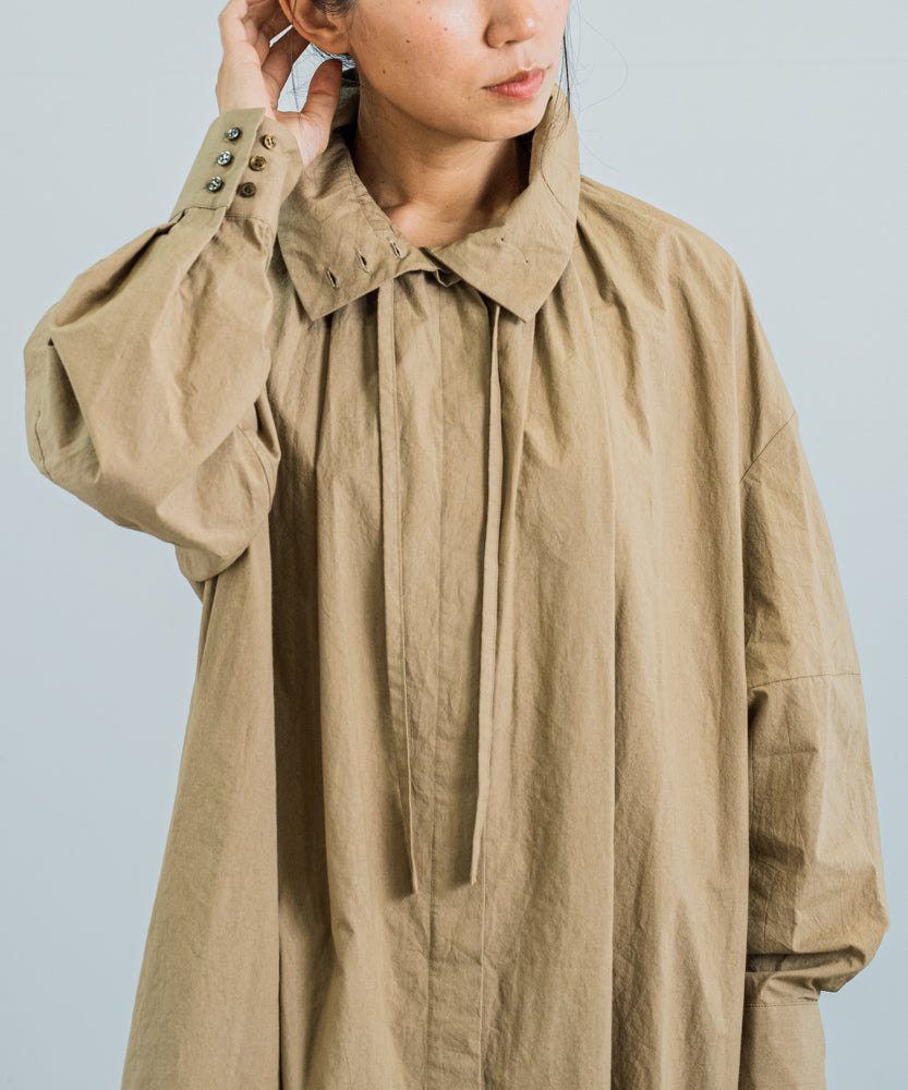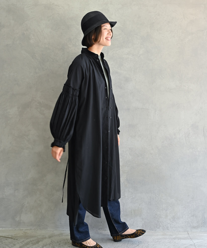 〈多彩な着方が叶う〉〈衿立て&衿折り〉〈遠州織物〉リボン紐付き多様衿 シャツ ワンピース (mug605)