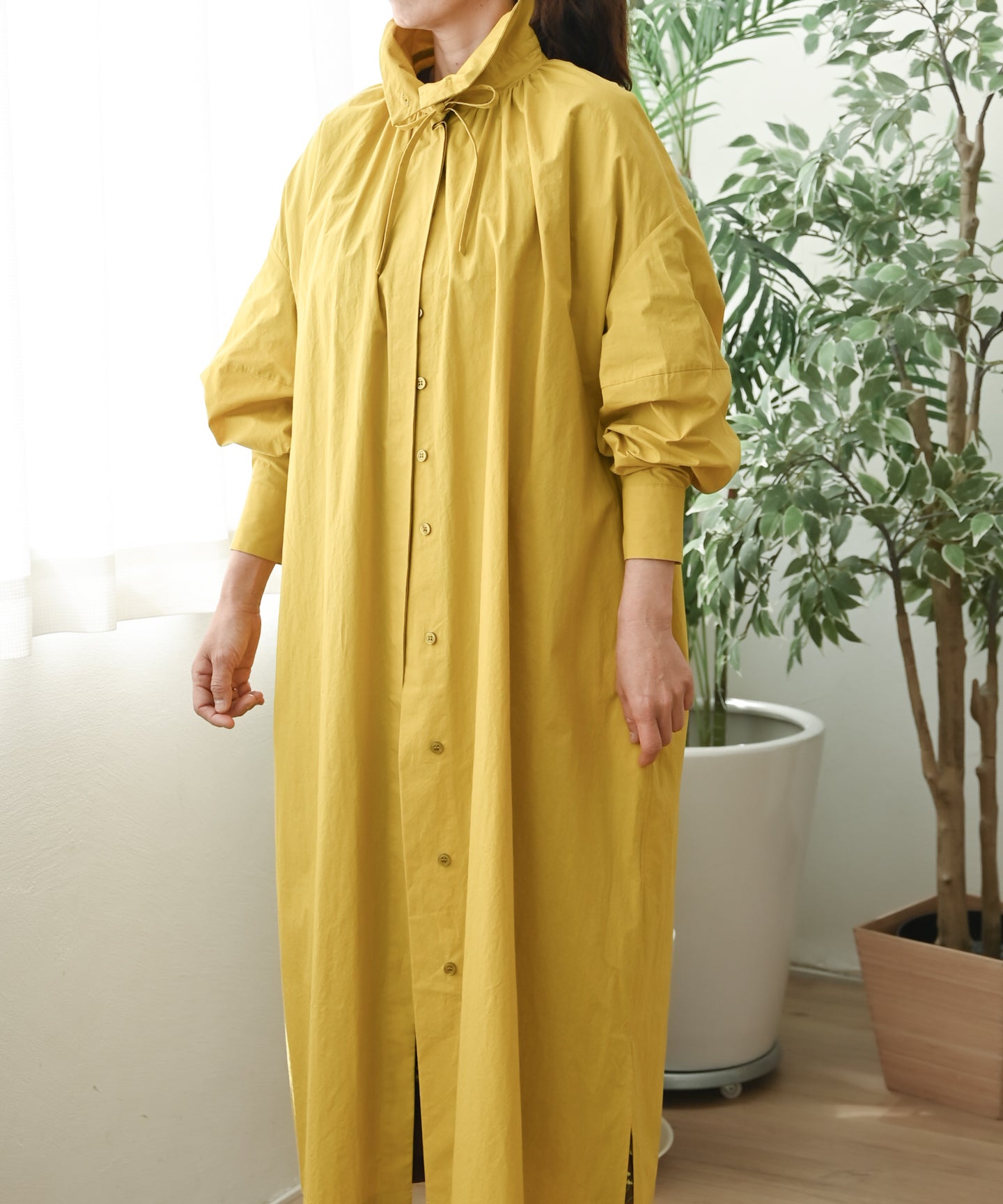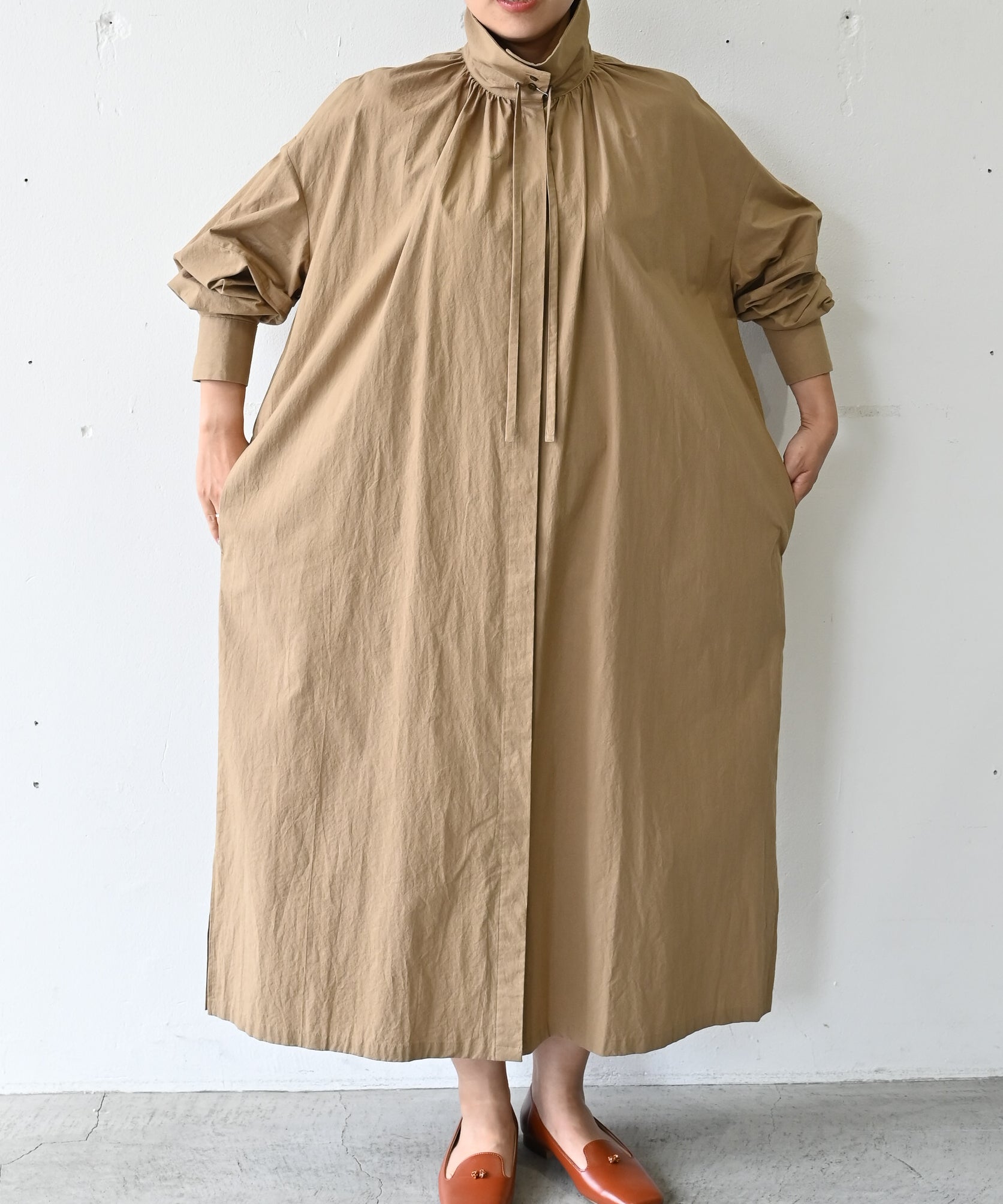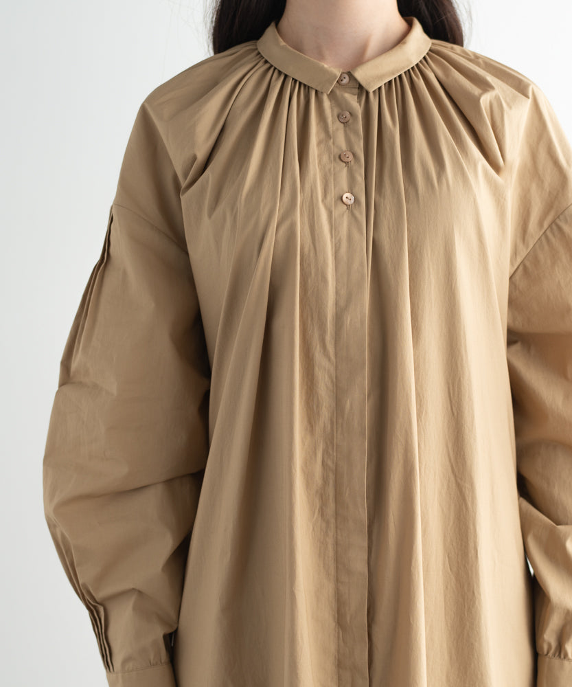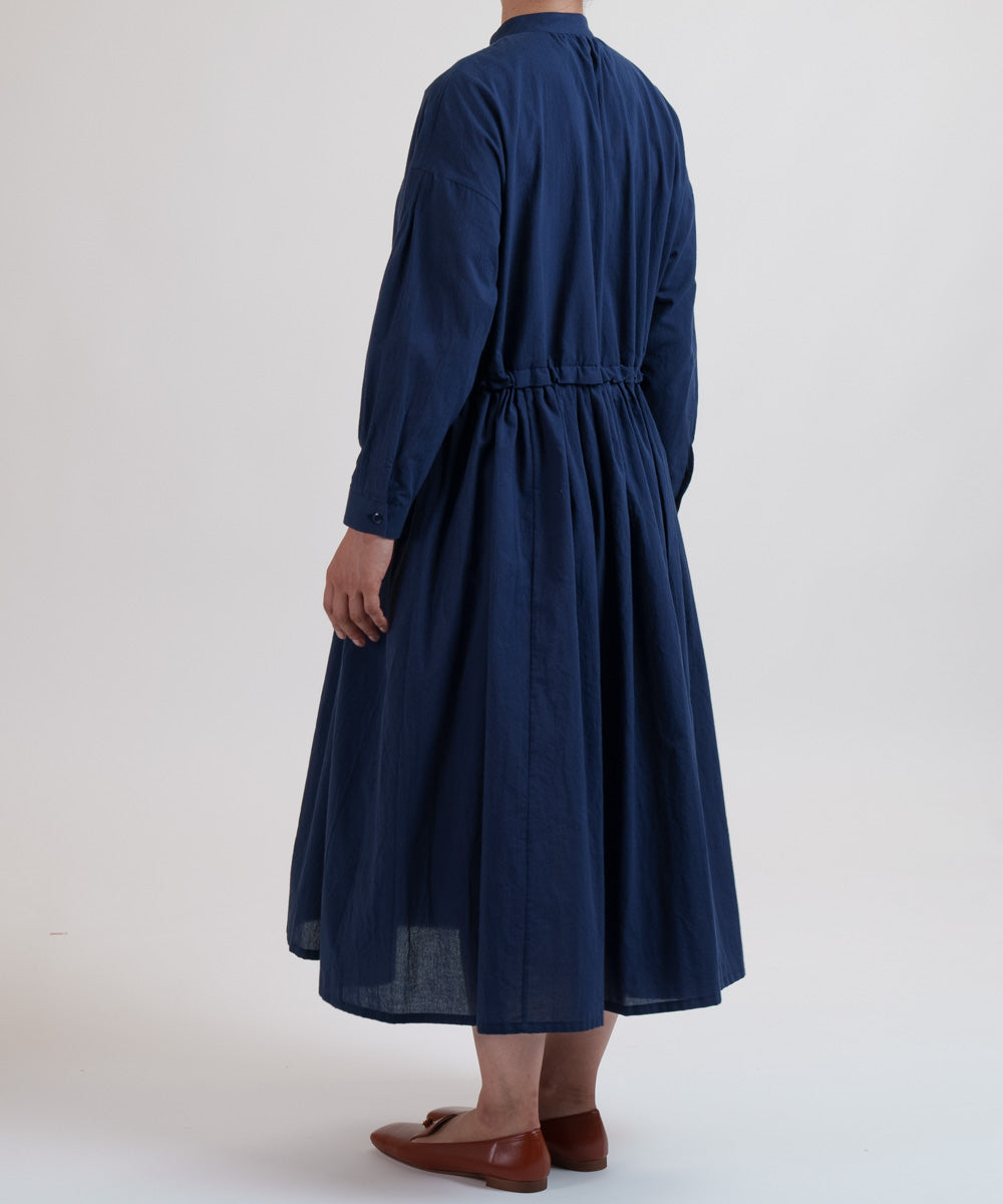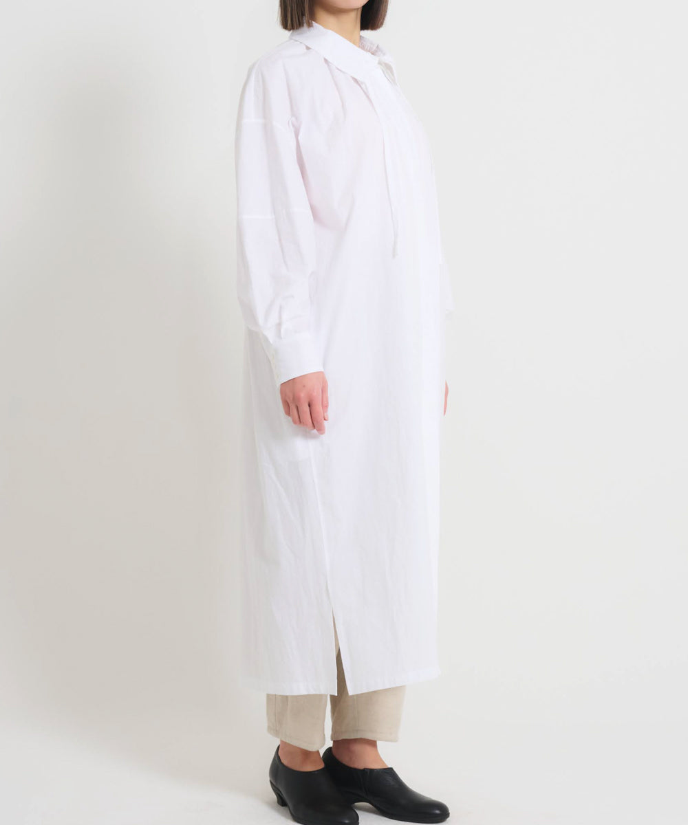 〈多彩な着方が叶う〉〈衿立て&衿折り〉〈遠州織物〉リボン紐付き多様衿 シャツ ワンピース (mug605)