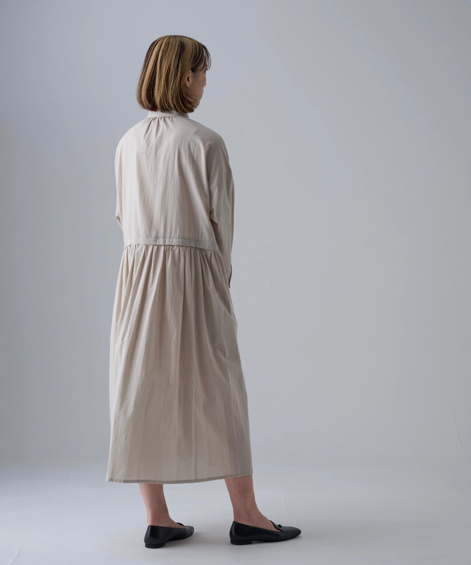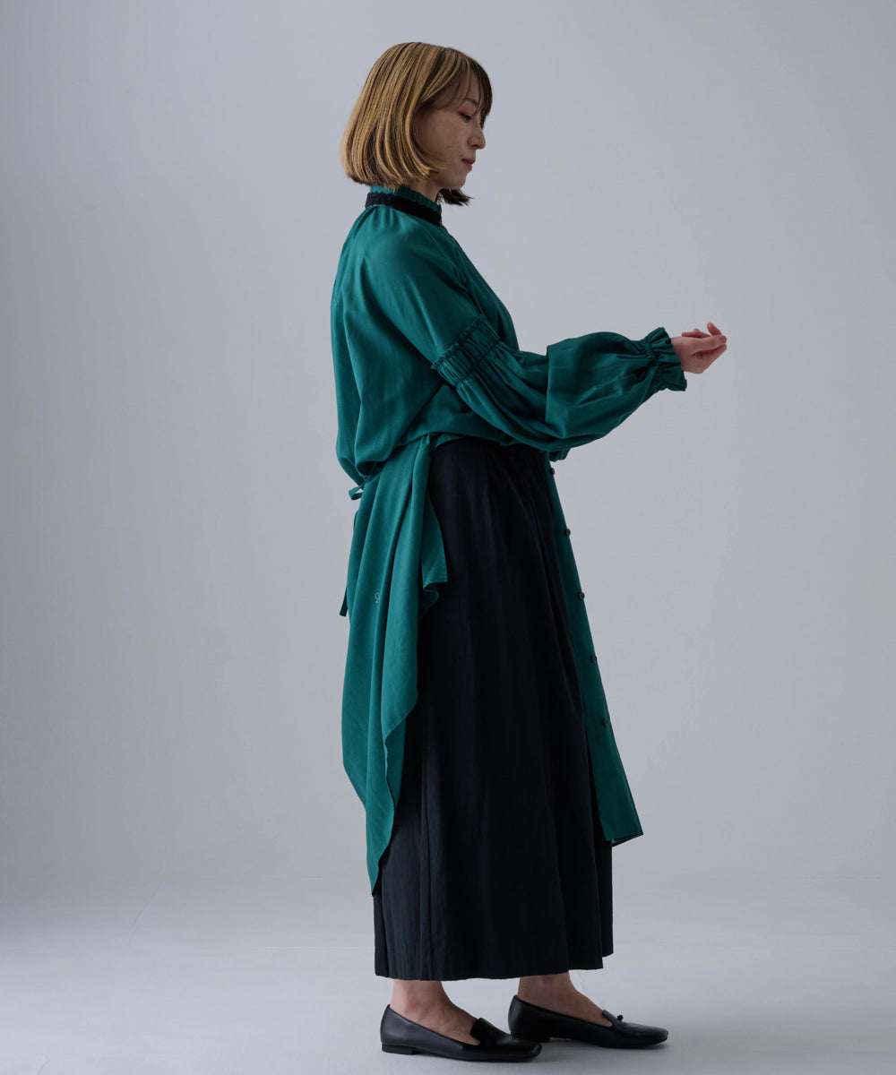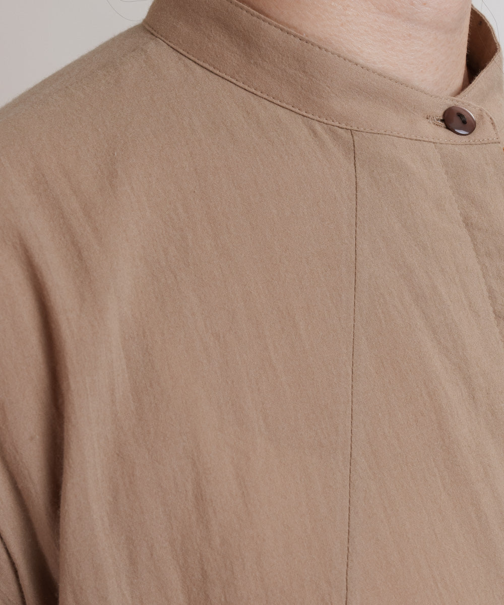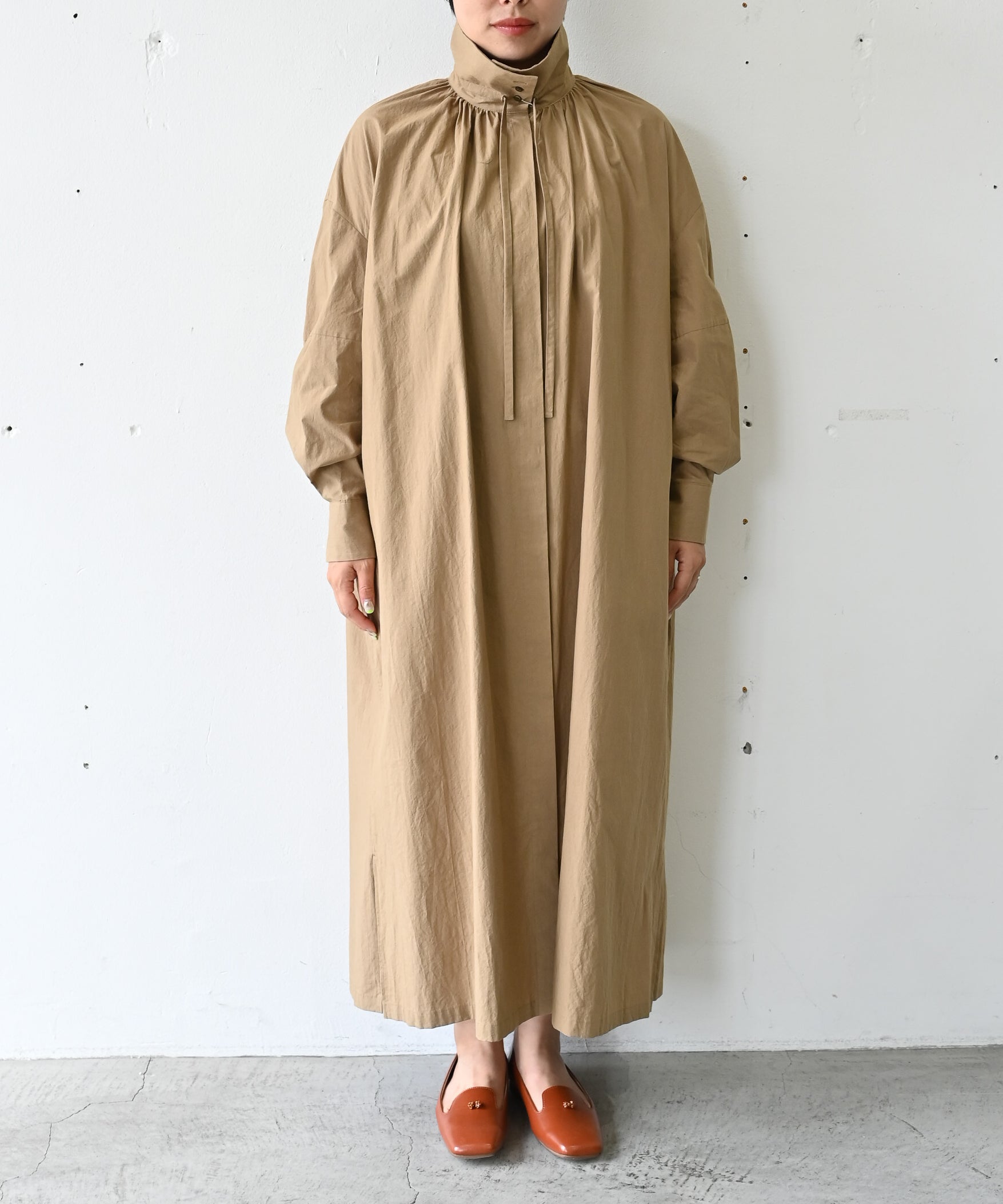 〈多彩な着方が叶う〉〈衿立て&衿折り〉〈遠州織物〉リボン紐付き多様衿 シャツ ワンピース (mug605)
