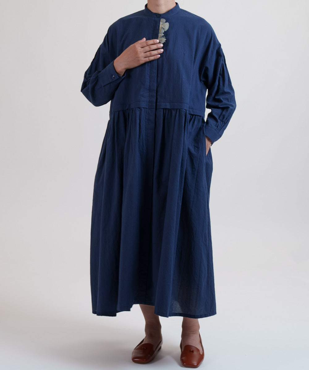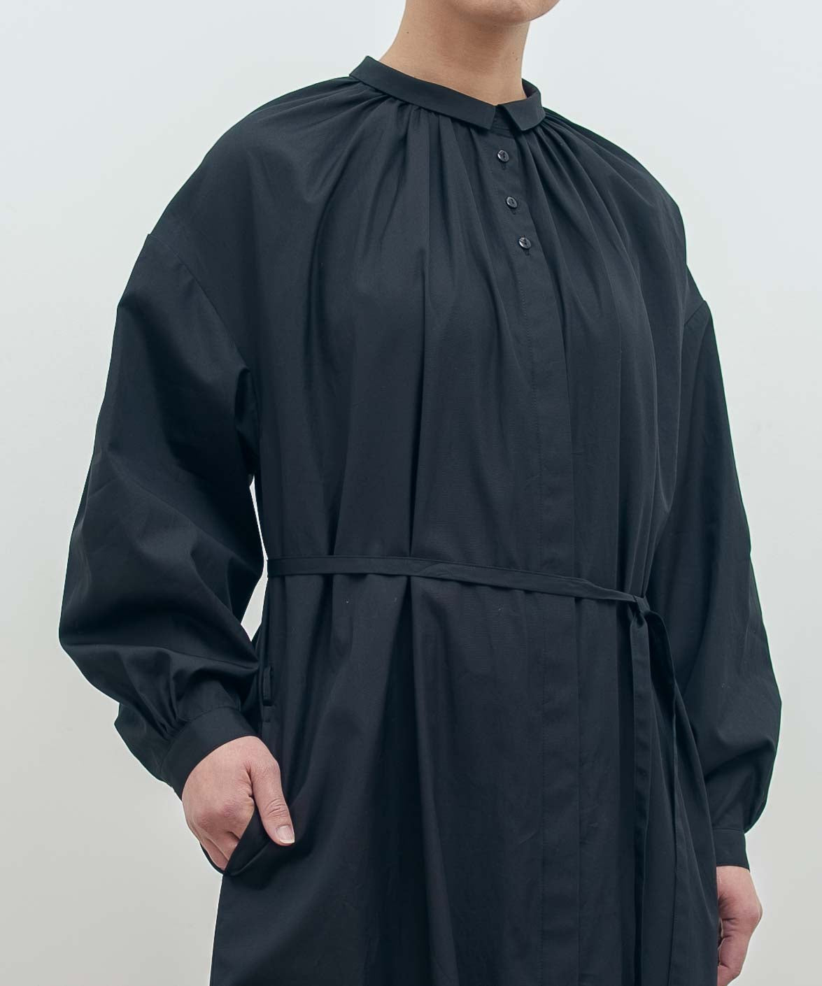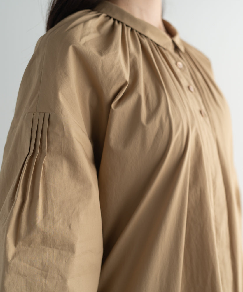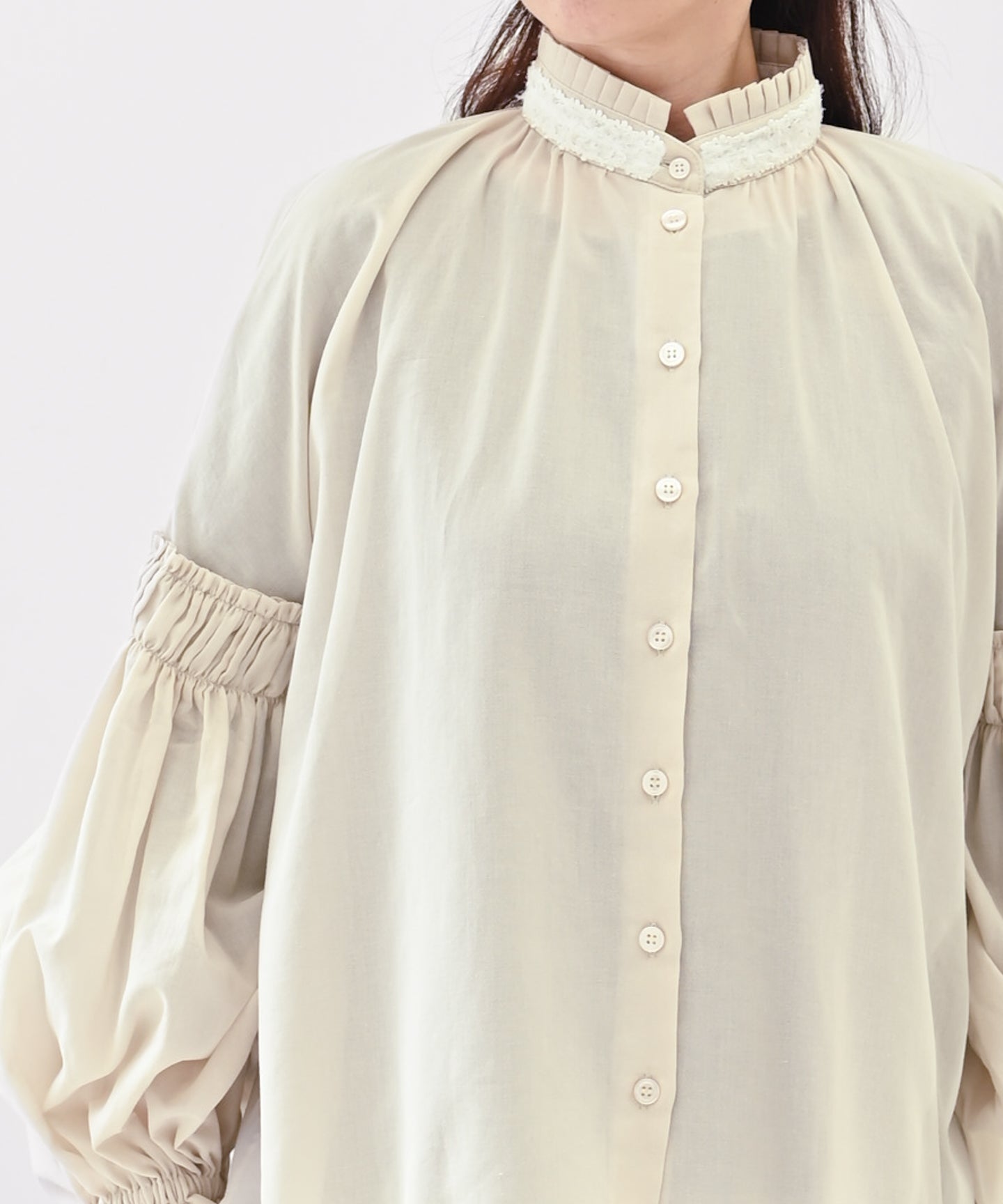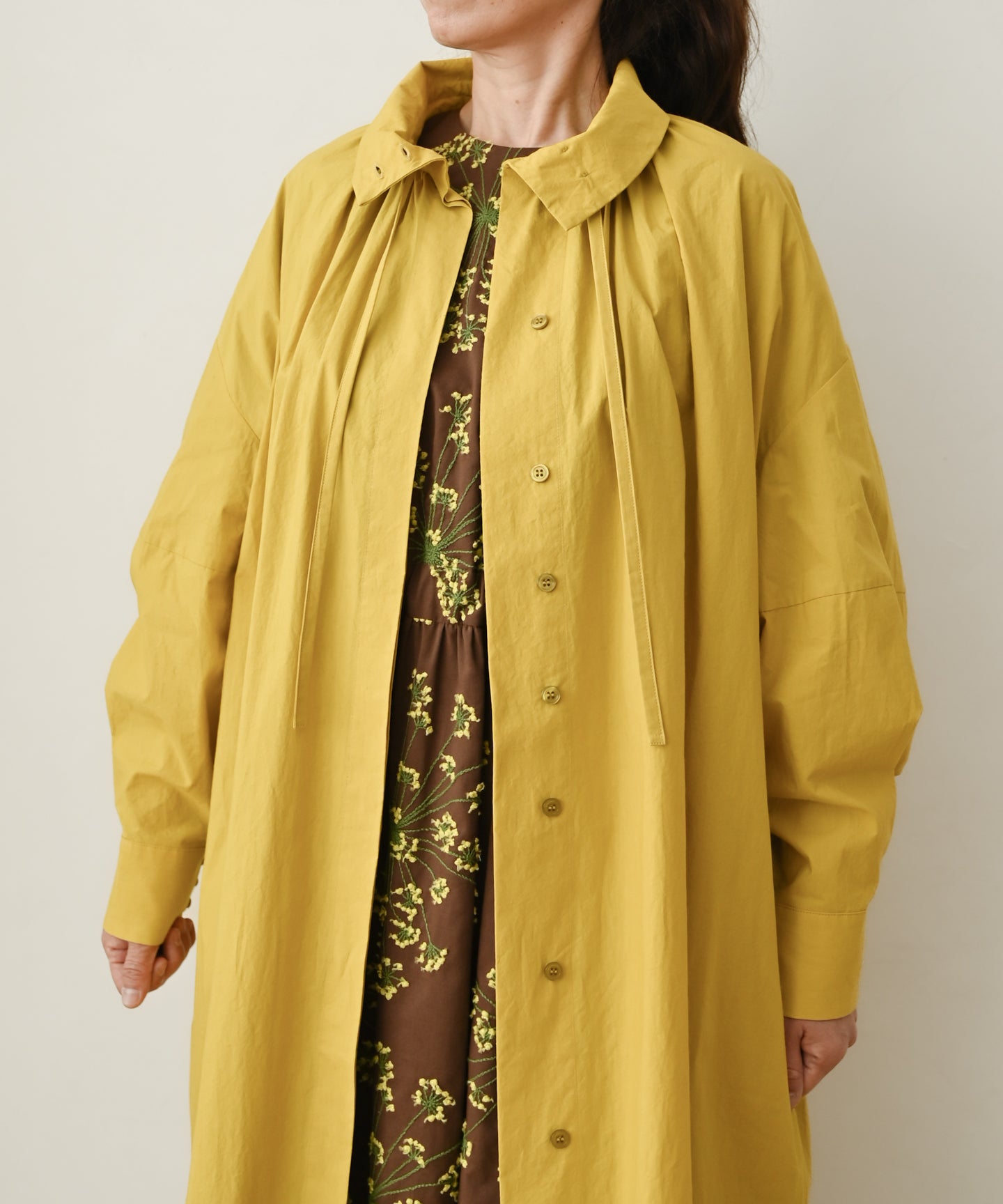 〈多彩な着方が叶う〉〈衿立て&衿折り〉〈遠州織物〉リボン紐付き多様衿 シャツ ワンピース (mug605)