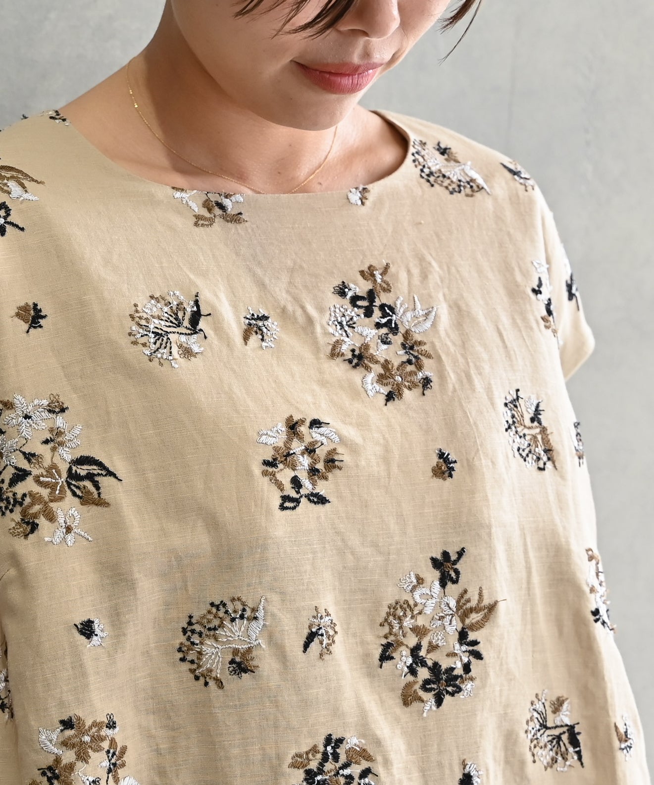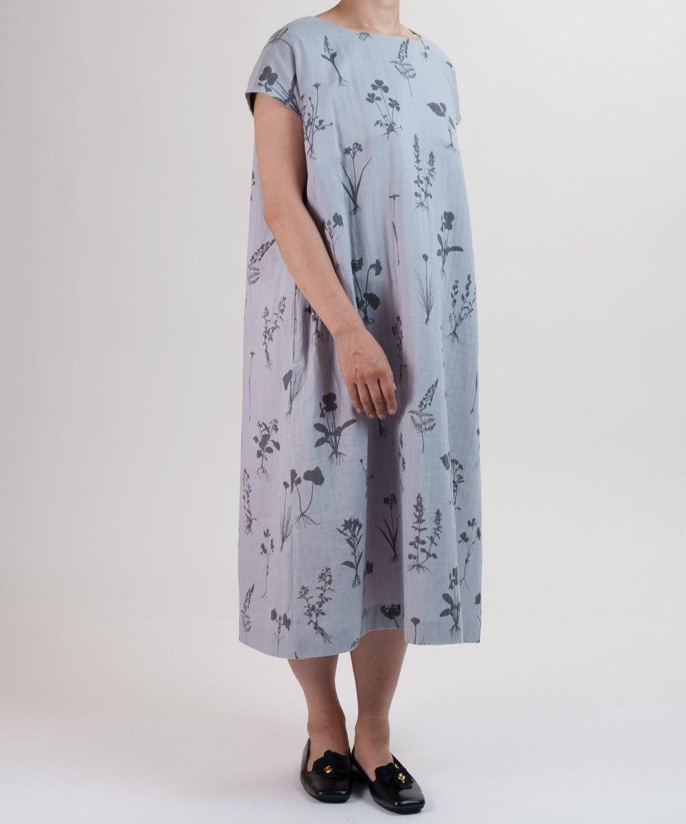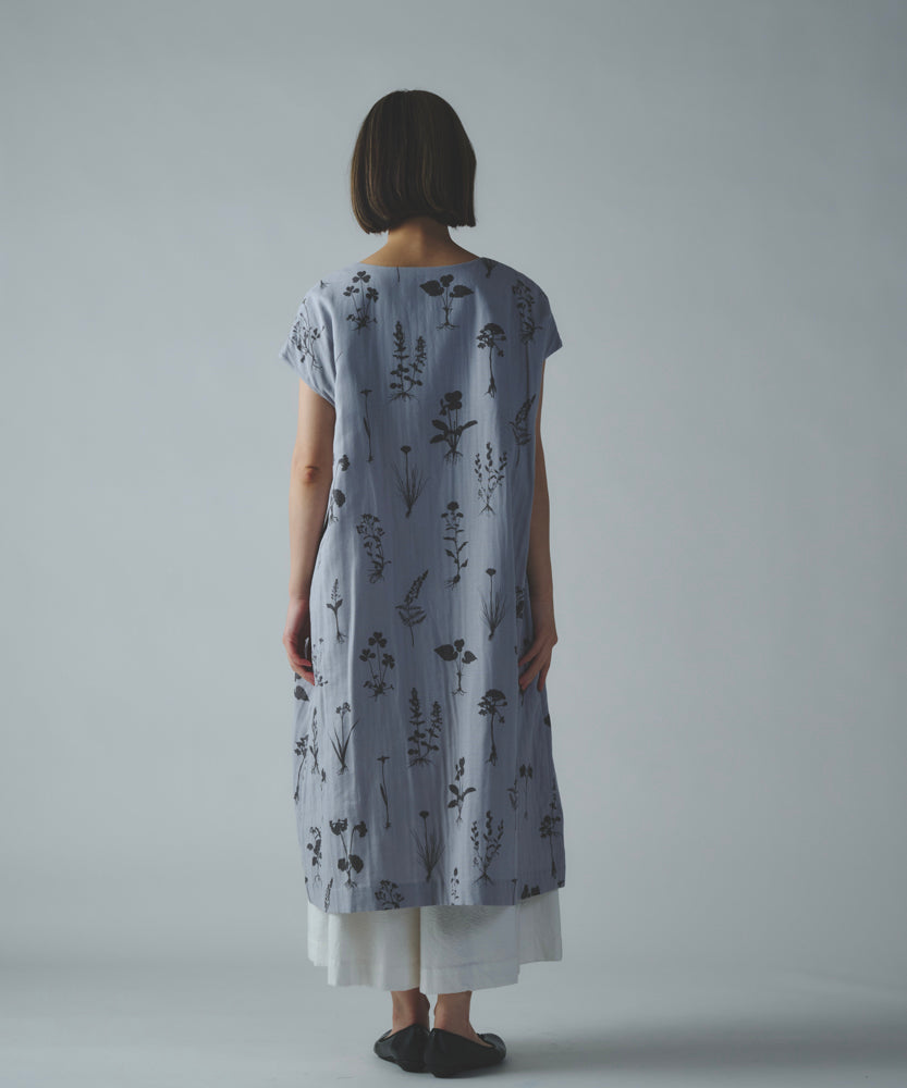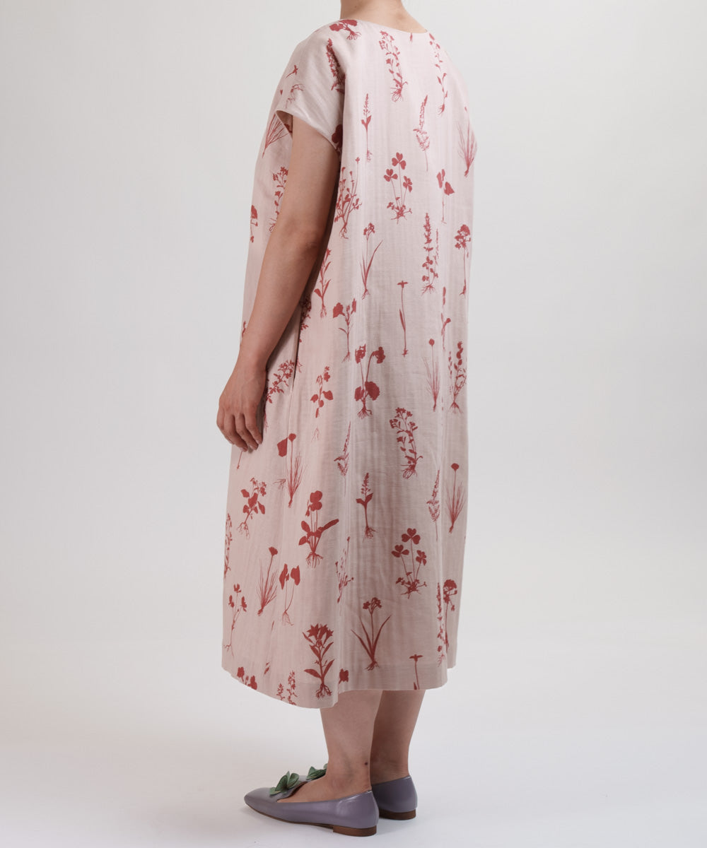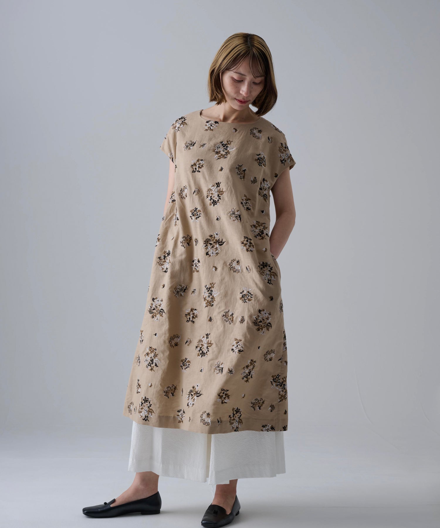 〈遠州織物 コットンリネン〉野小花刺繍 フレンチスリーブワンピース (muh603)