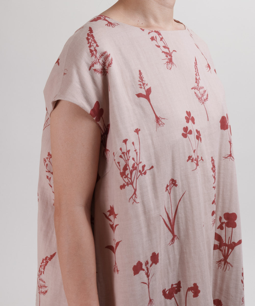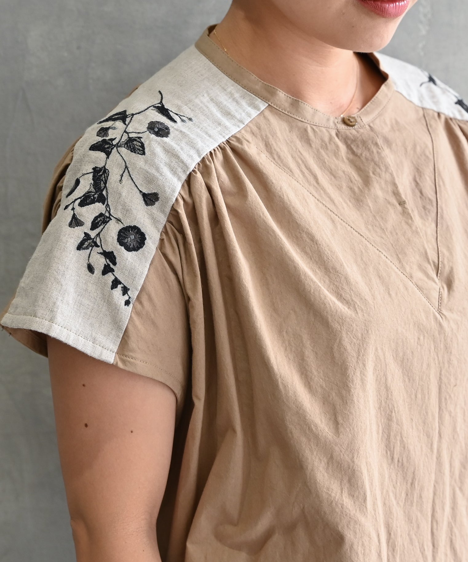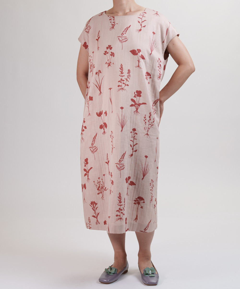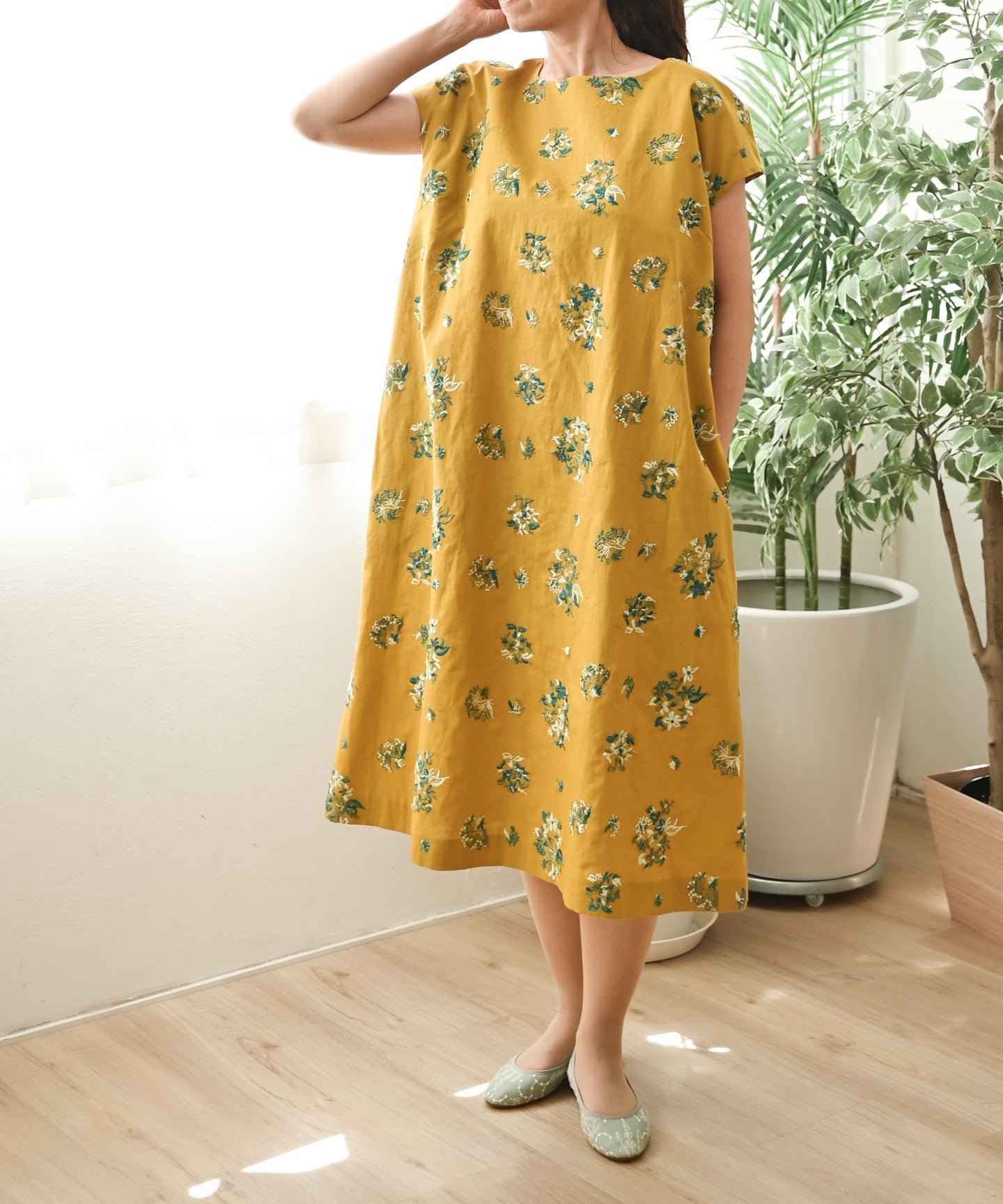 〈遠州織物 コットンリネン〉野小花刺繍 フレンチスリーブワンピース (muh603)