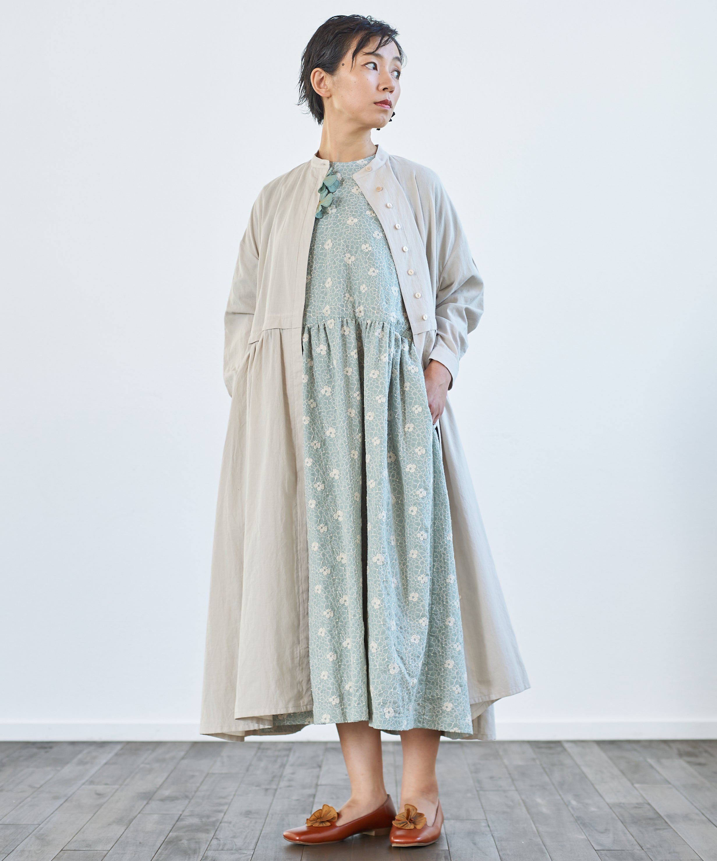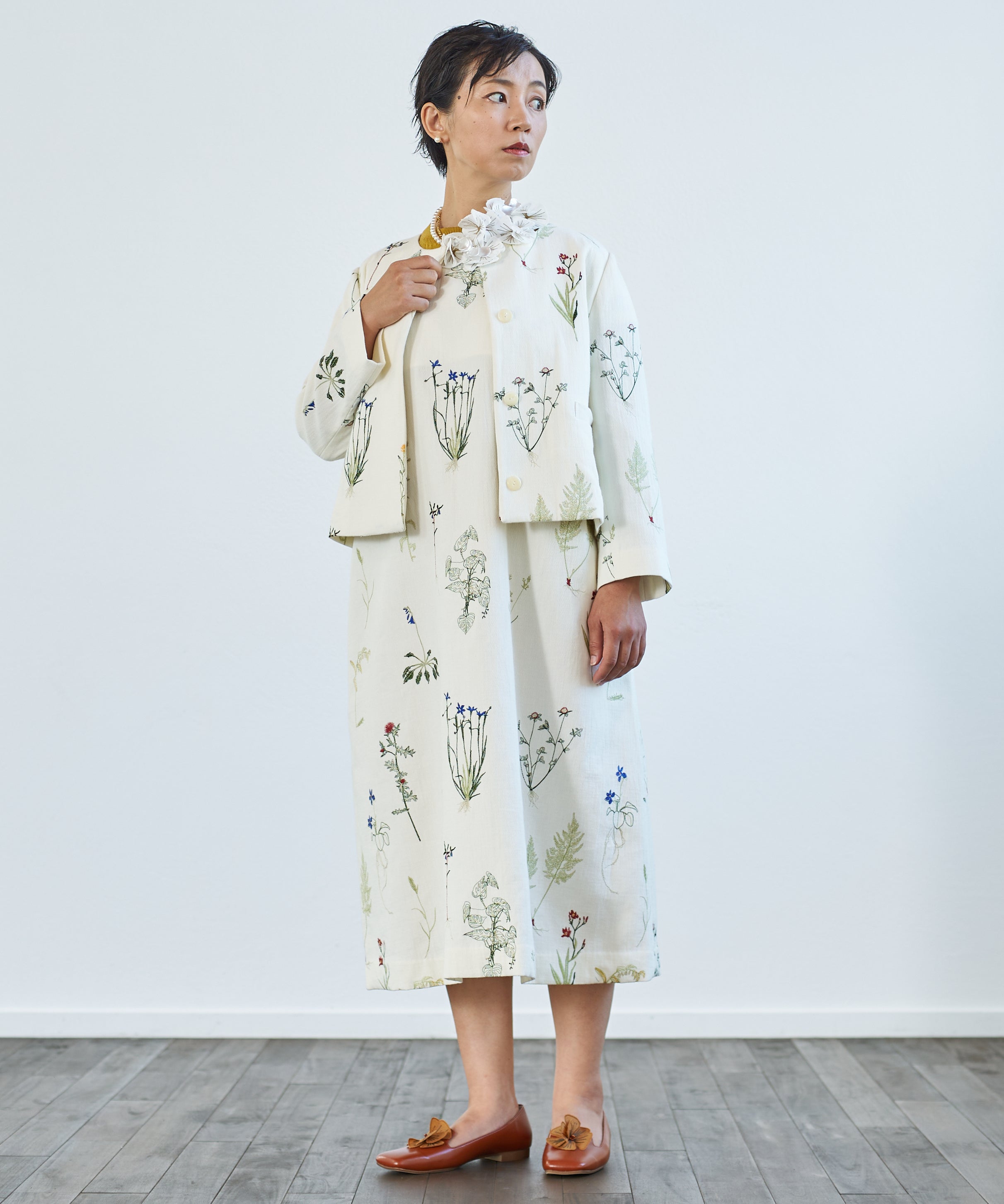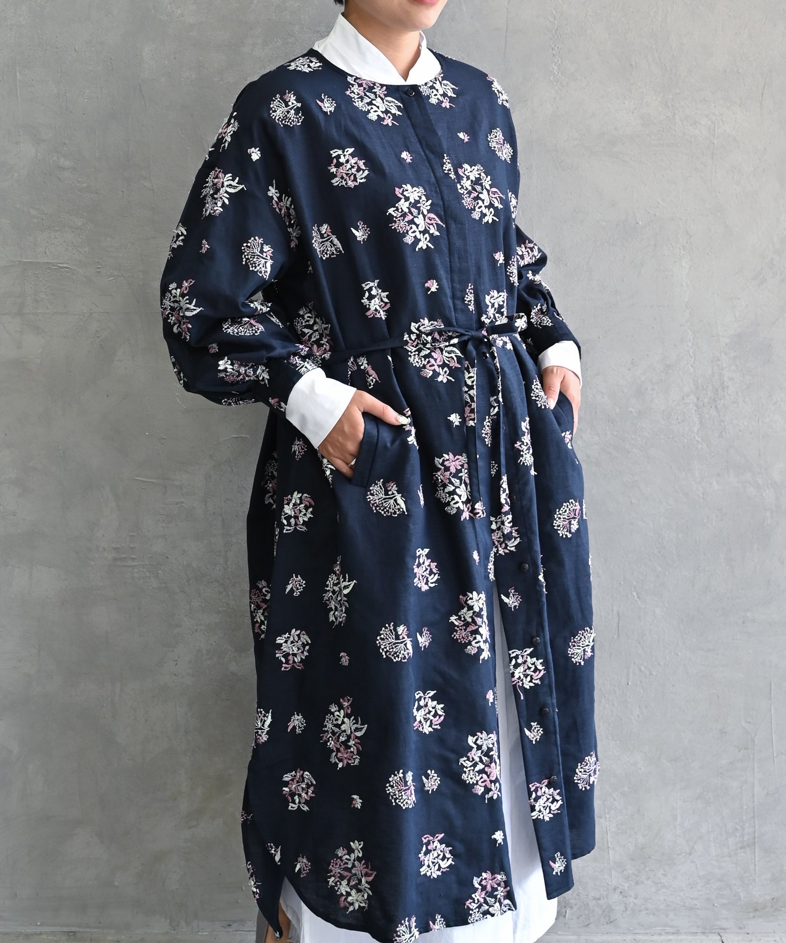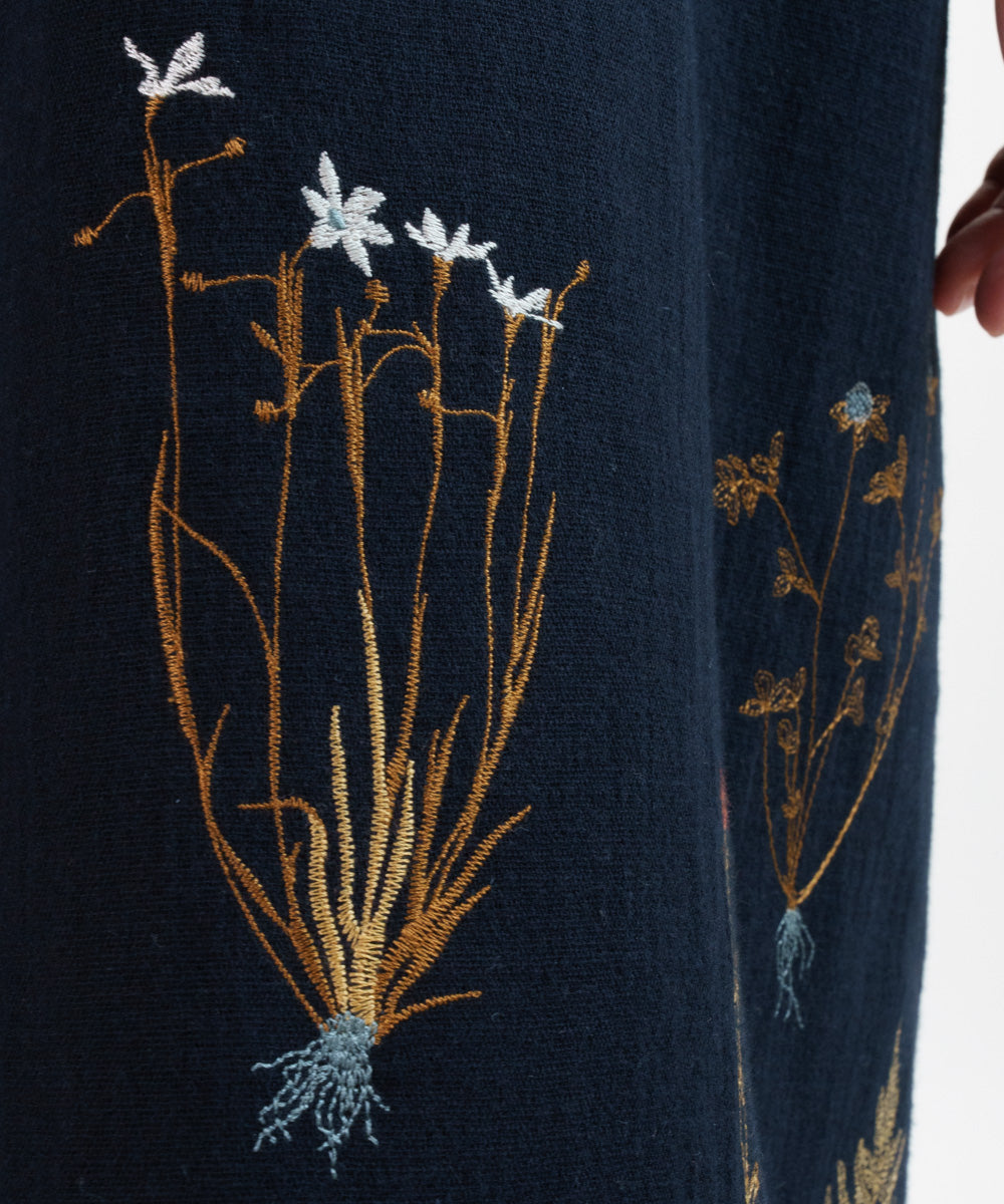 〈遠州織物 コットン×リネン〉野小花刺繍 羽織り&ワンピースドレス (muh602)