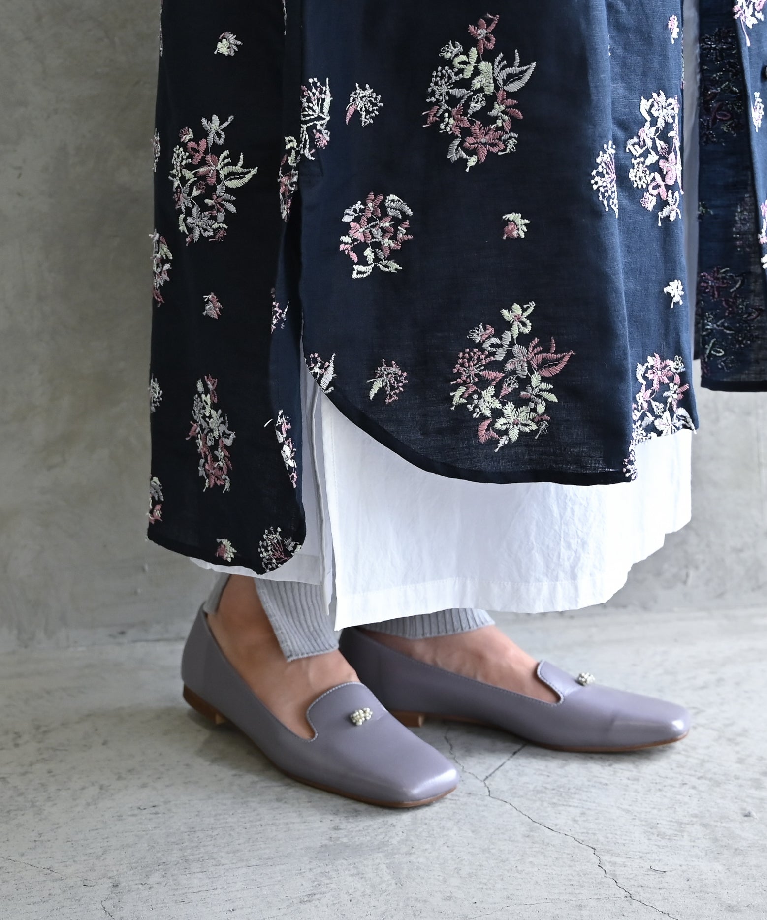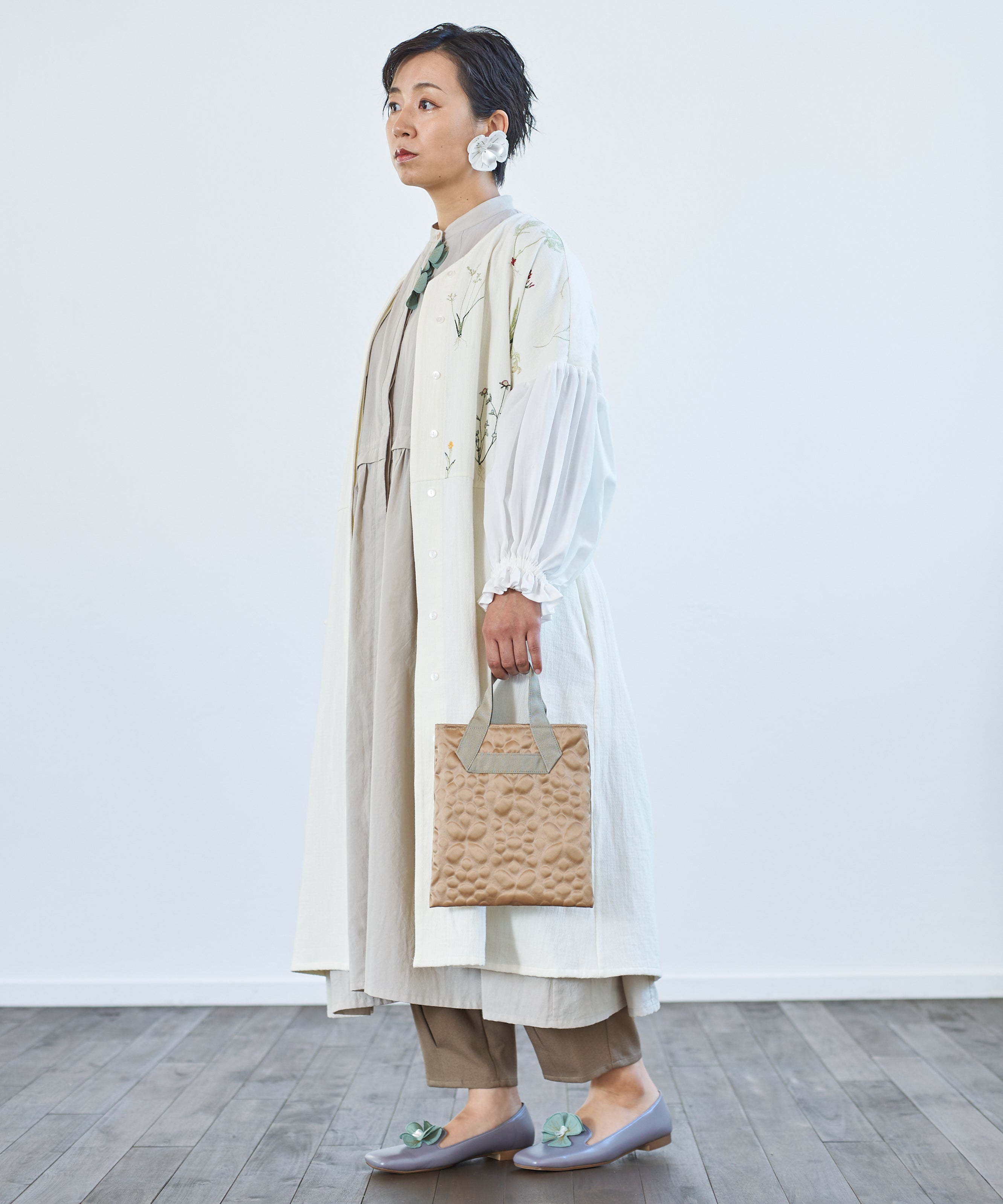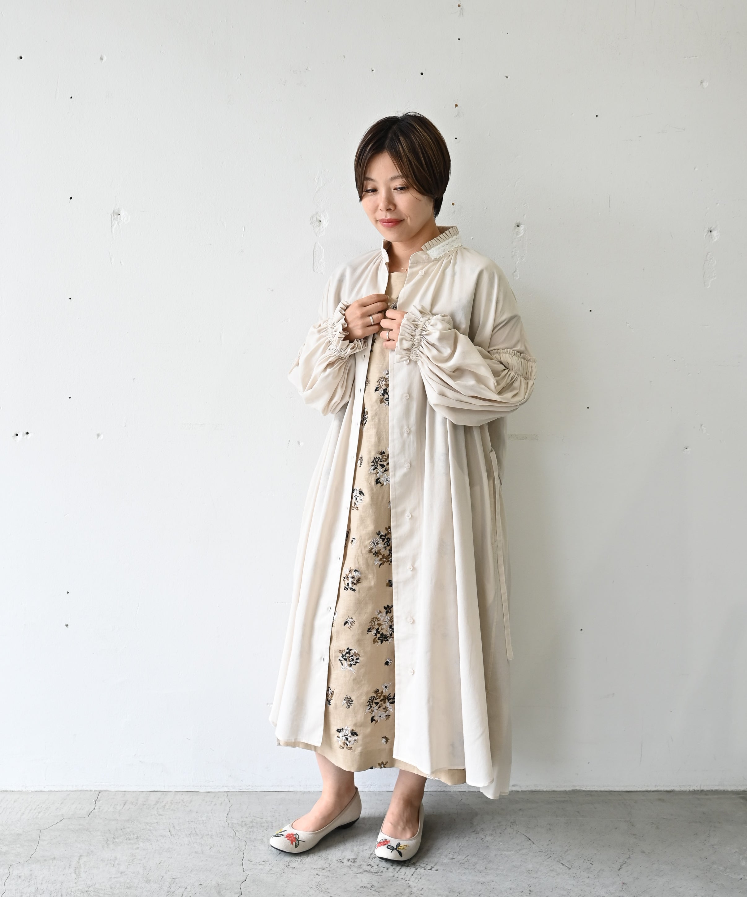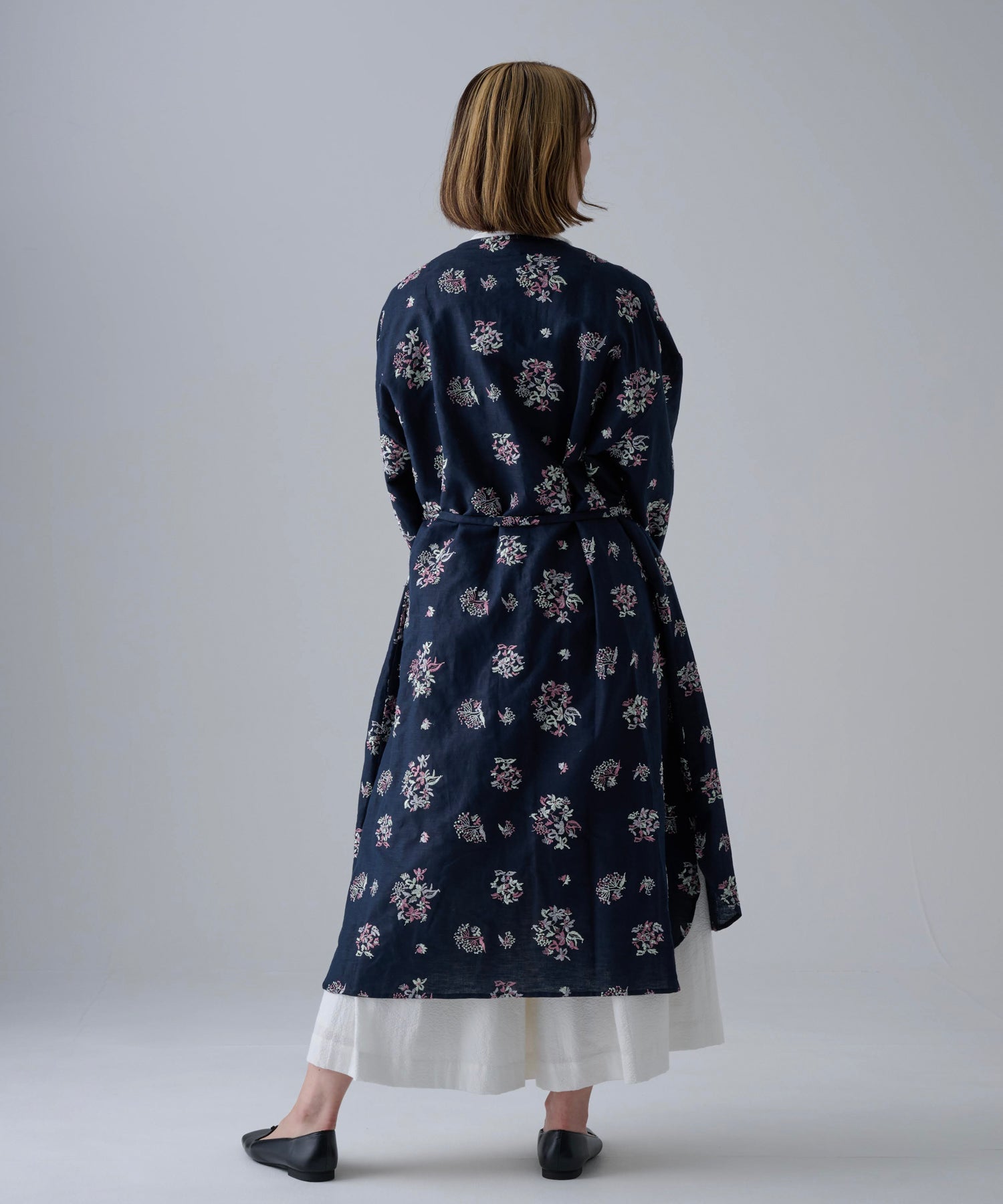 〈遠州織物 コットン×リネン〉野小花刺繍 羽織り&ワンピースドレス (muh602)
