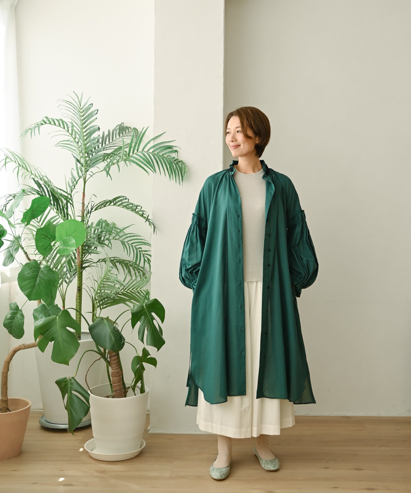 〈遠州織物〉コットンドビーギャザー 羽織り&ワンピースドレス (muh609)