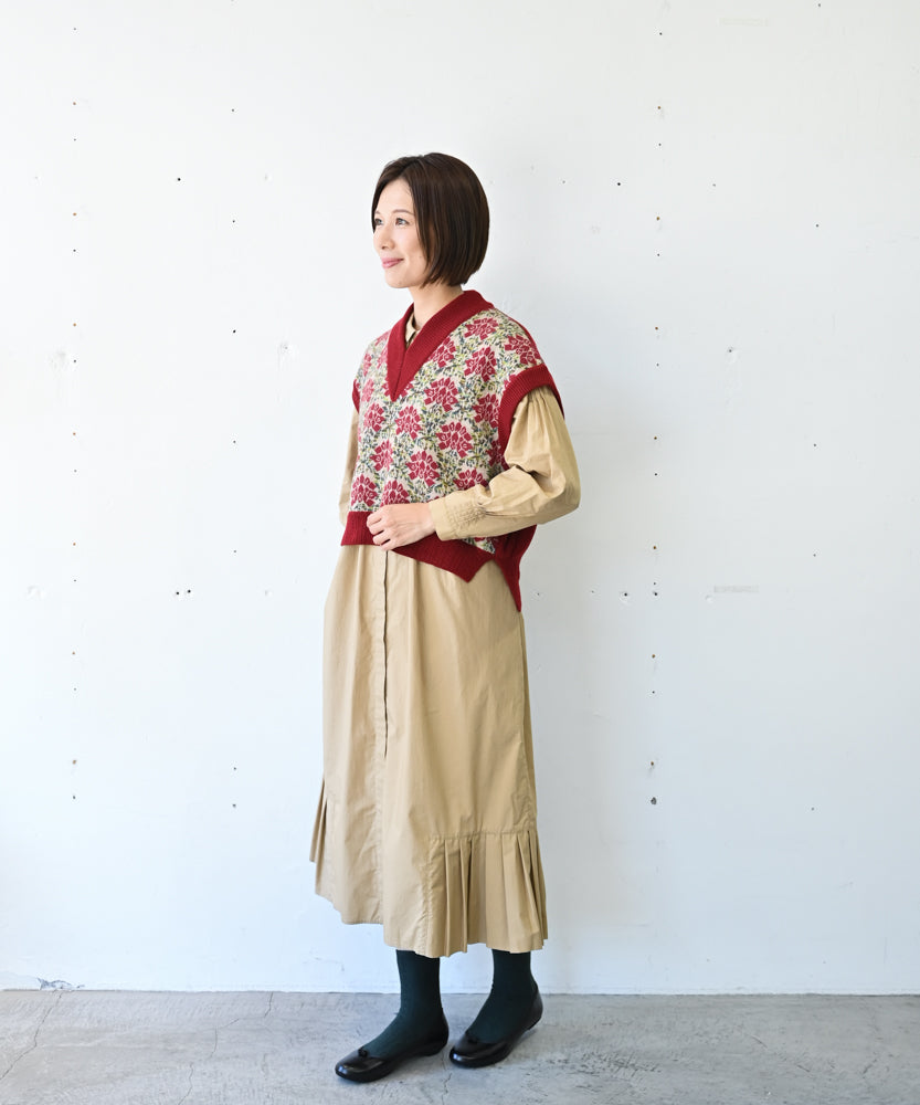 〈オーガニックコットン〉〈コットンブロード生地〉コットン裾プリーツ切替ワンピース (muk613)
