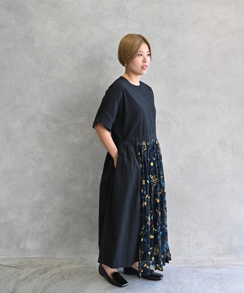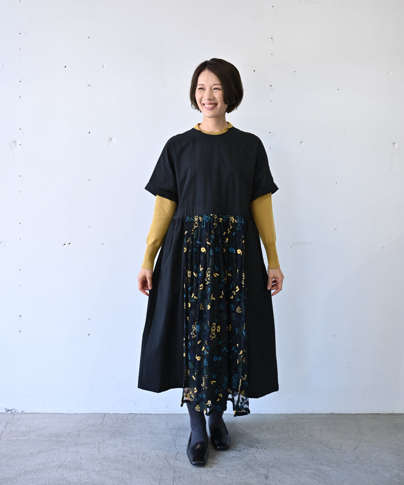 花モチーフ付きコットンローンワンピース (mul610)