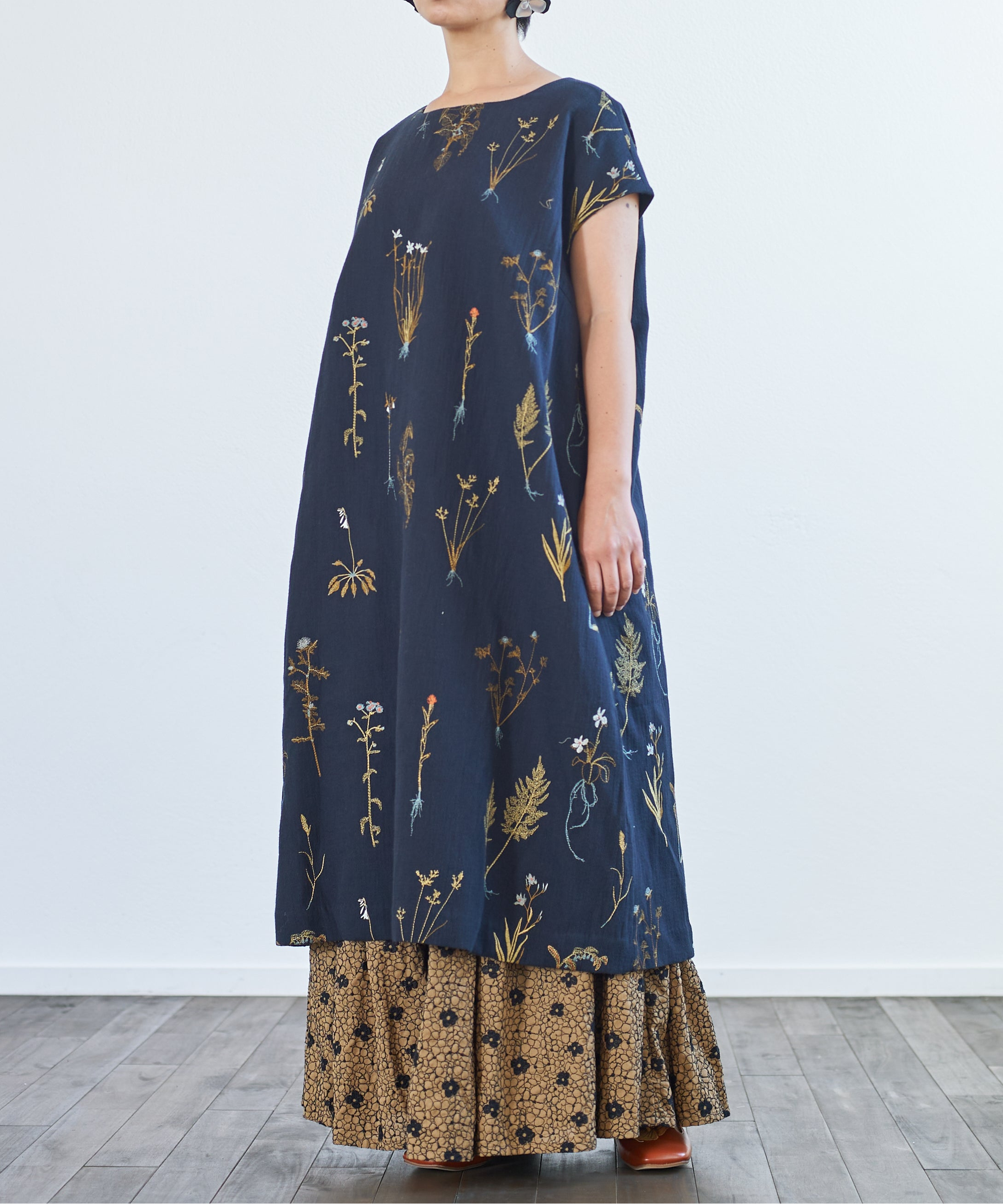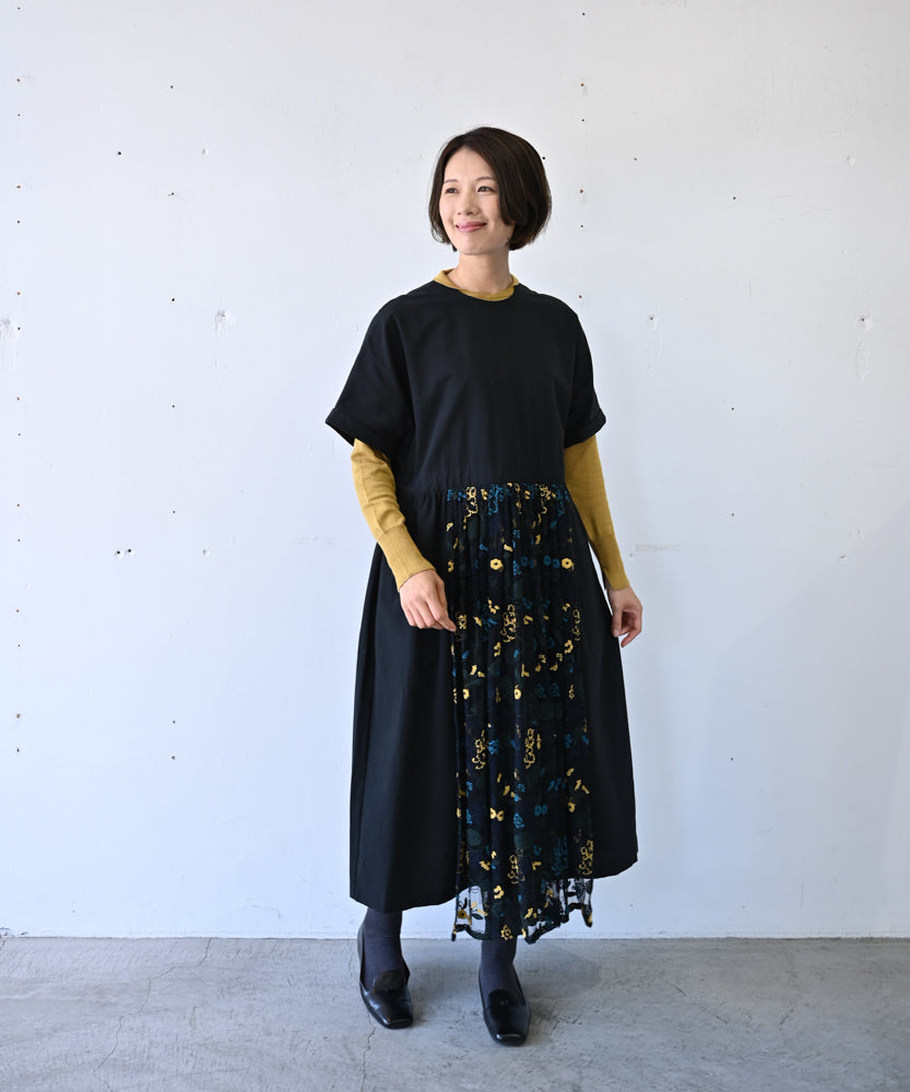 ボタニカル刺繍ゆったりワンピース (mul603)