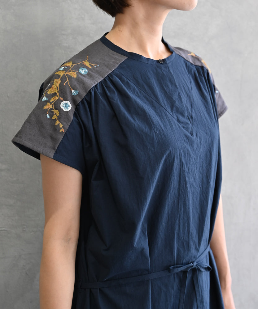 〈遠州織物 オーガニックコットン ブロード〉筆記帳刺繍ワンピース (muh619)