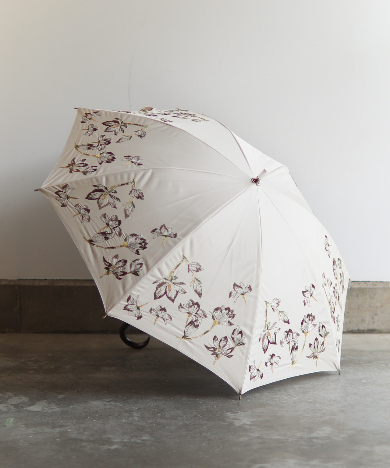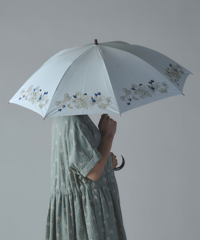 〈一級遮光生地・晴雨兼用〉スミレ刺繍の日傘 (長傘タイプ) (ELS60)