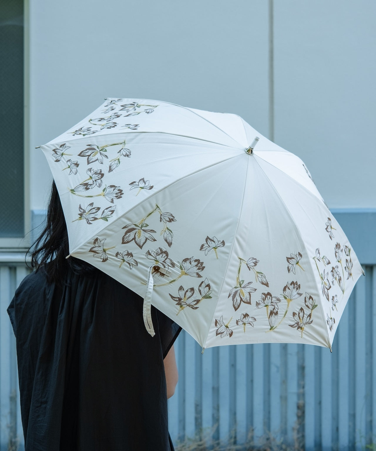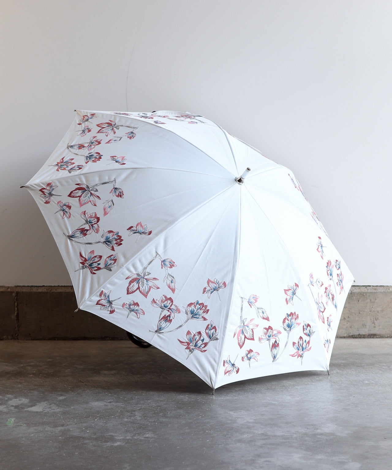 〈UVカット率99%以上・一級遮光生地・晴雨兼用〉モクレンの花刺繍の日傘 (長傘タイプ) (ELS51)