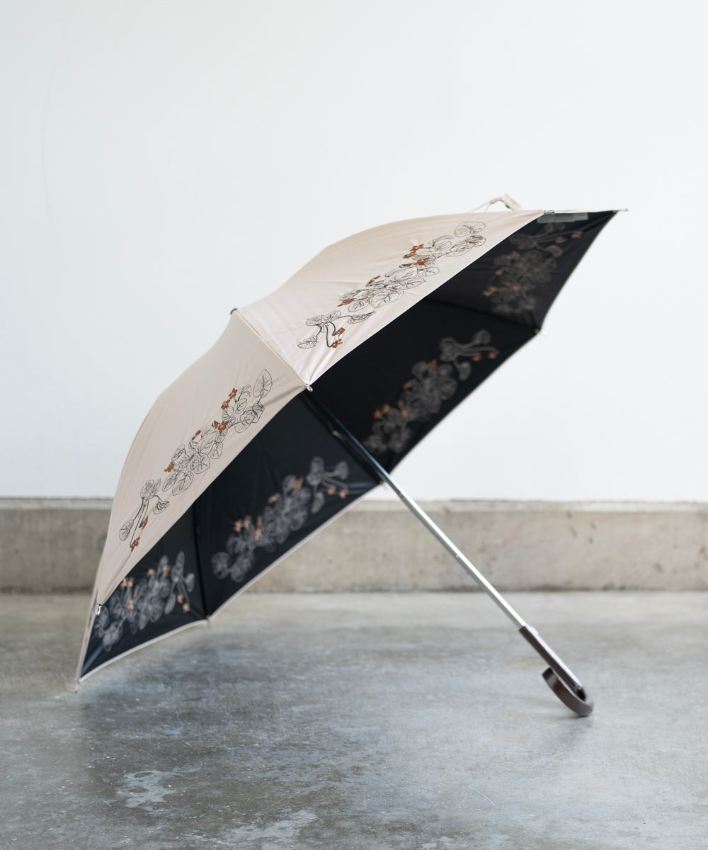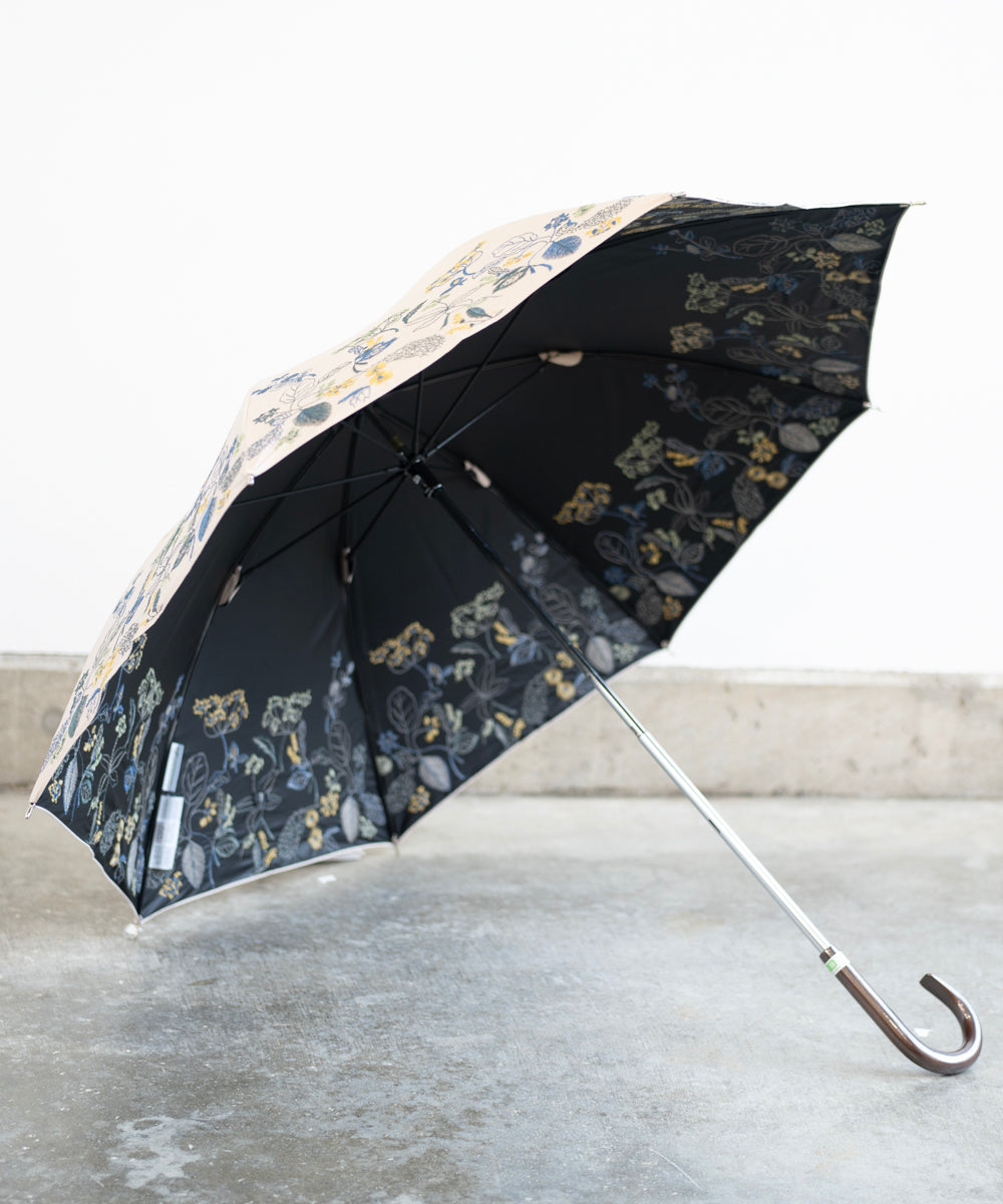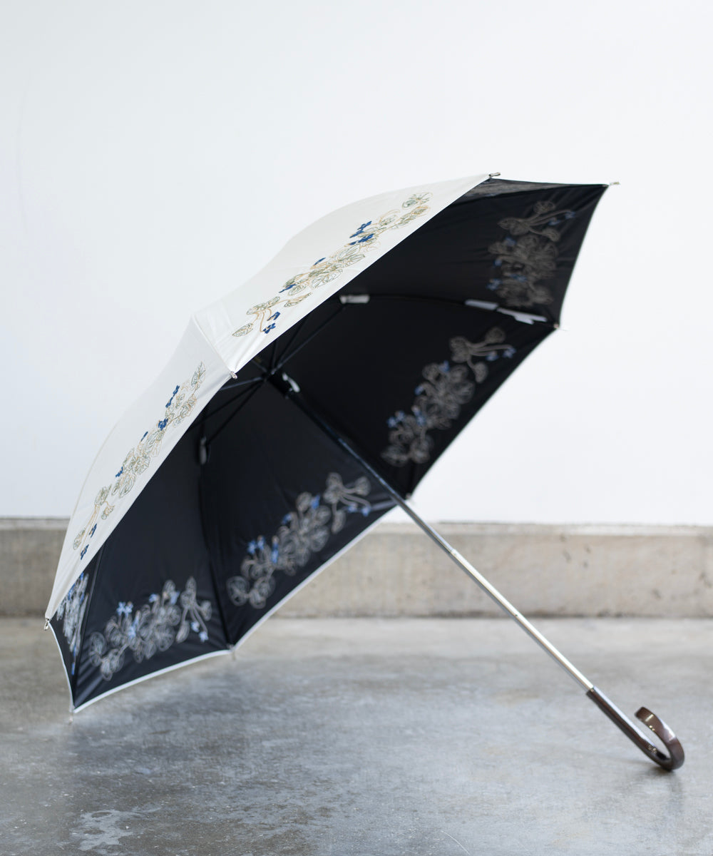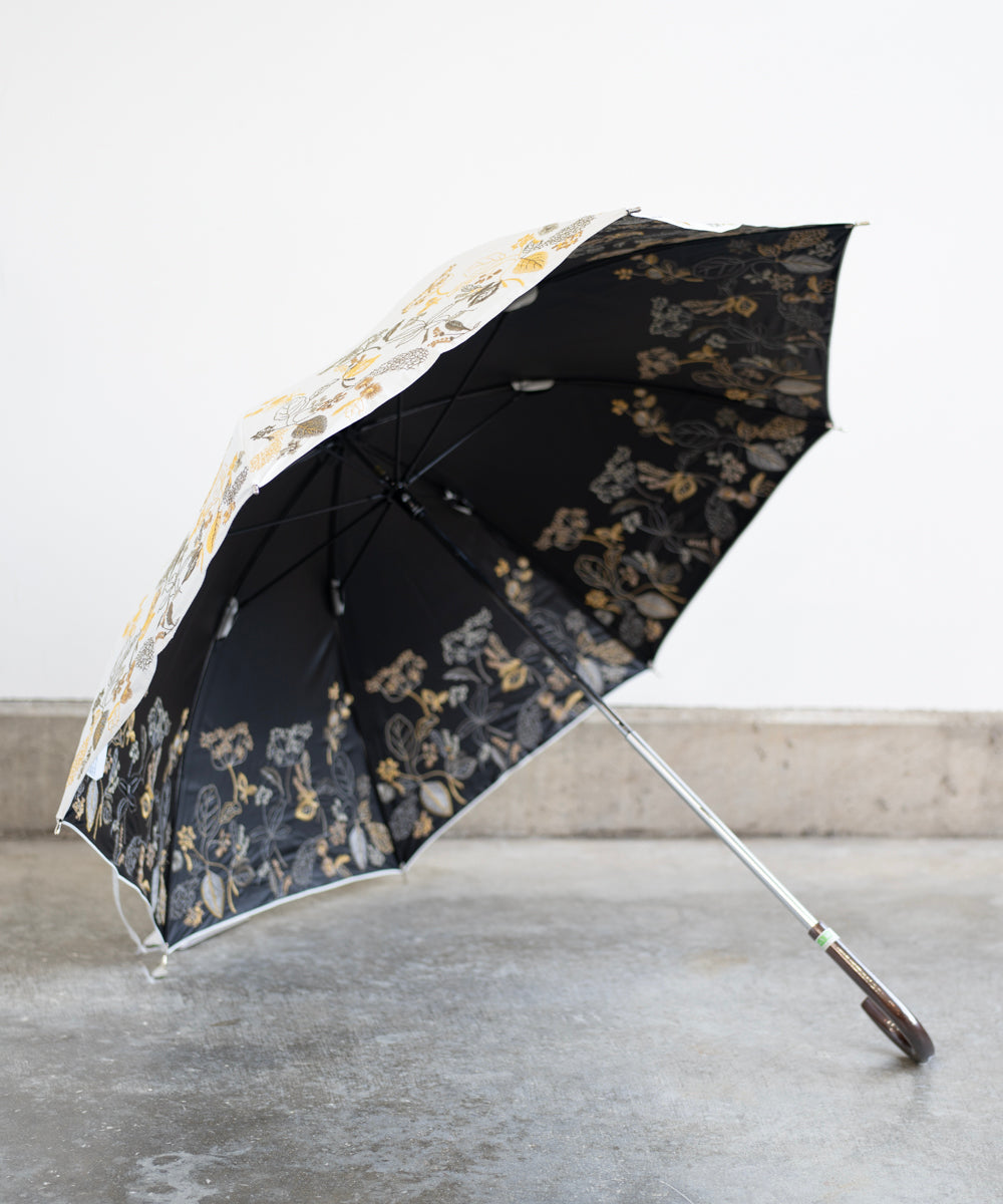 〈一級遮光生地・晴雨兼用〉ボタニカル刺繍の日傘 (長傘タイプ) (ELS61)