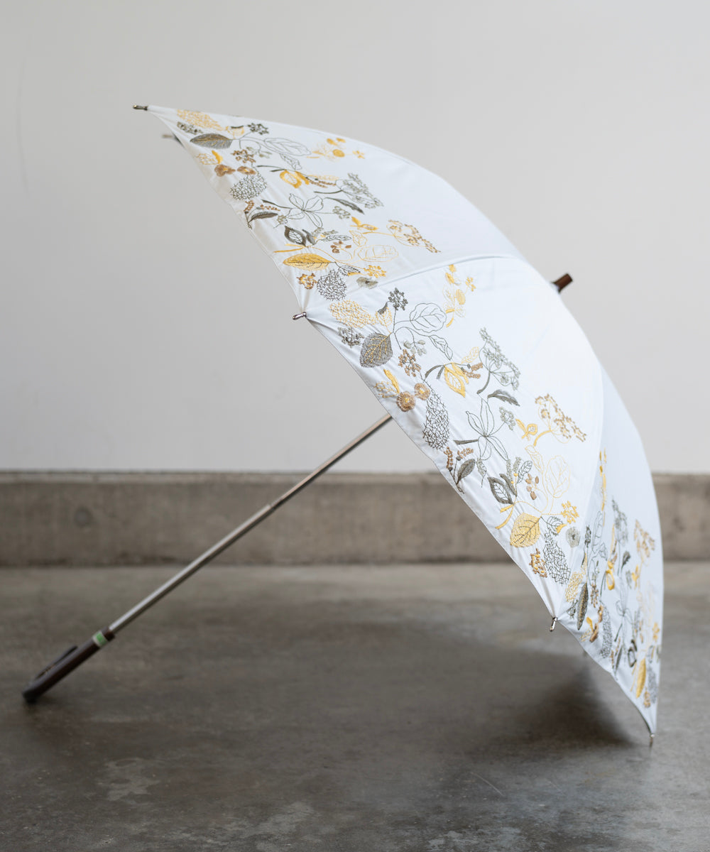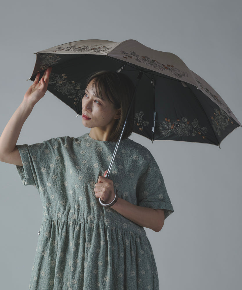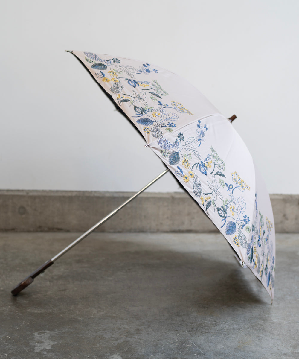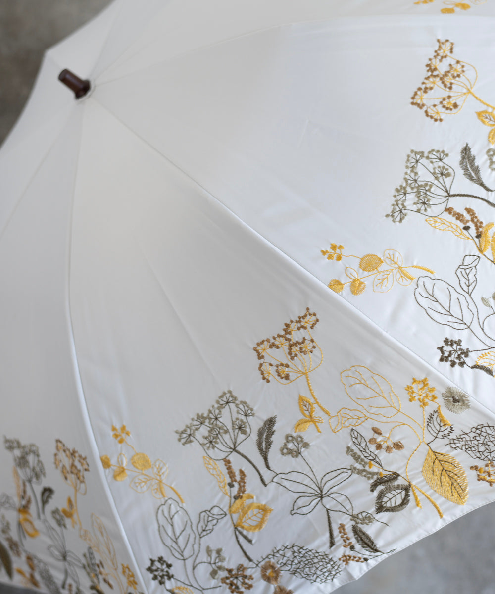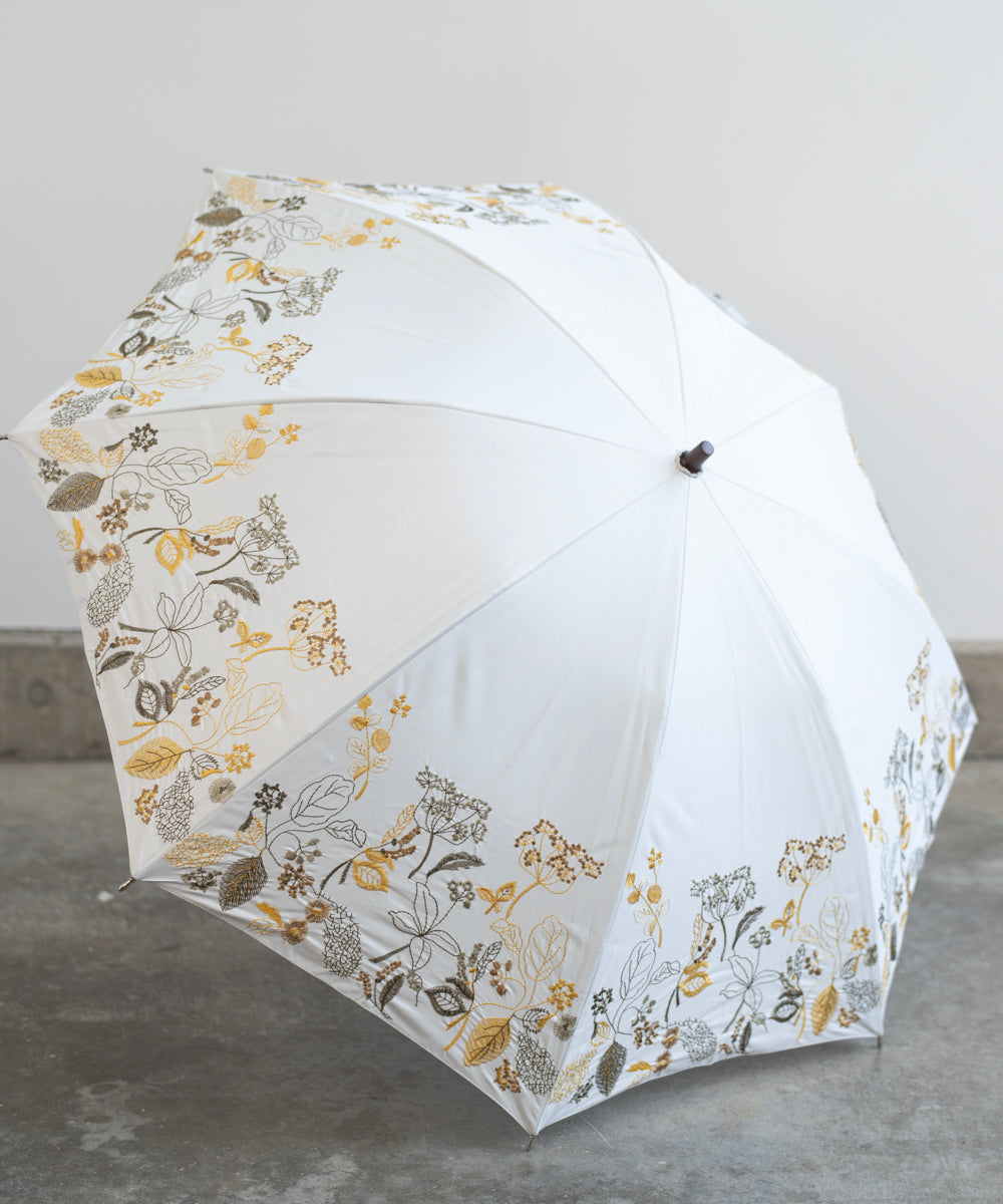 〈一級遮光生地・晴雨兼用〉ボタニカル刺繍の日傘 (長傘タイプ) (ELS61)