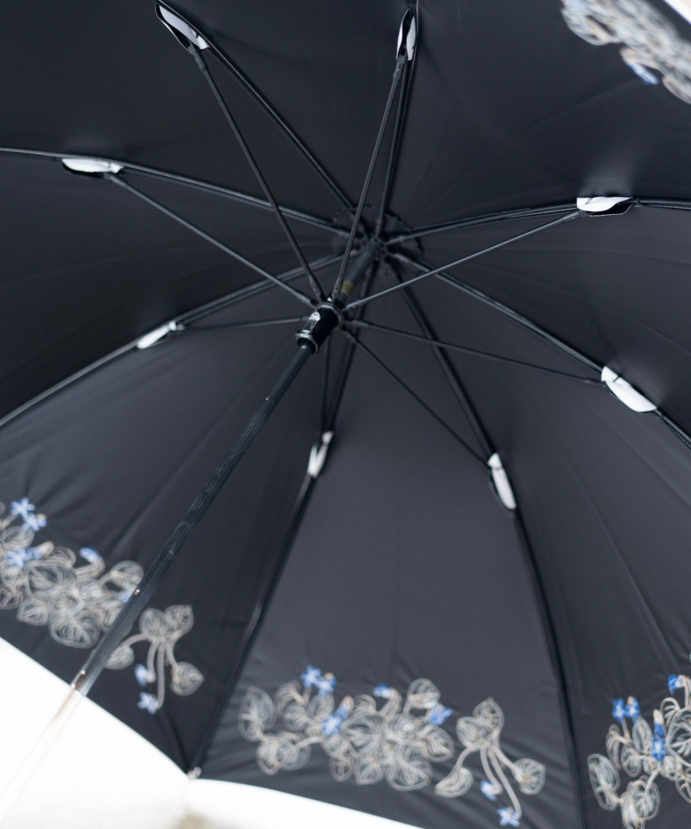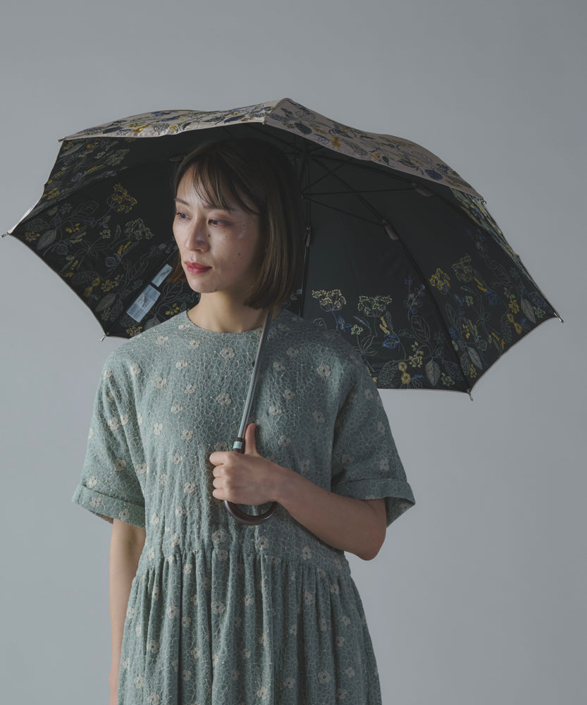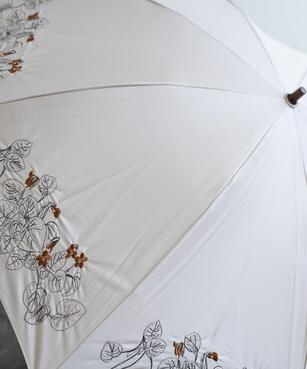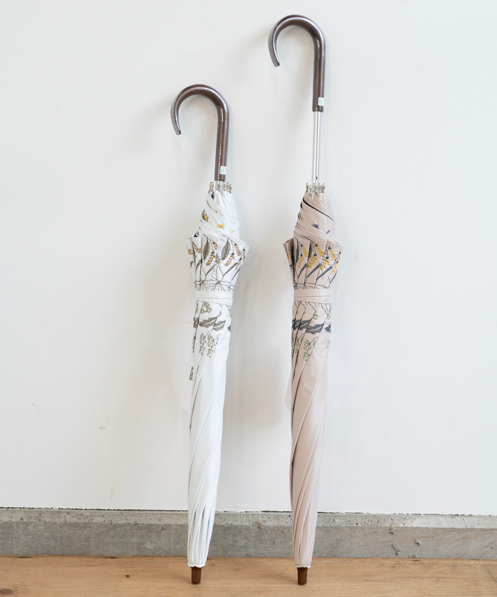 〈一級遮光生地・晴雨兼用〉ボタニカル刺繍の日傘 (長傘タイプ) (ELS61)