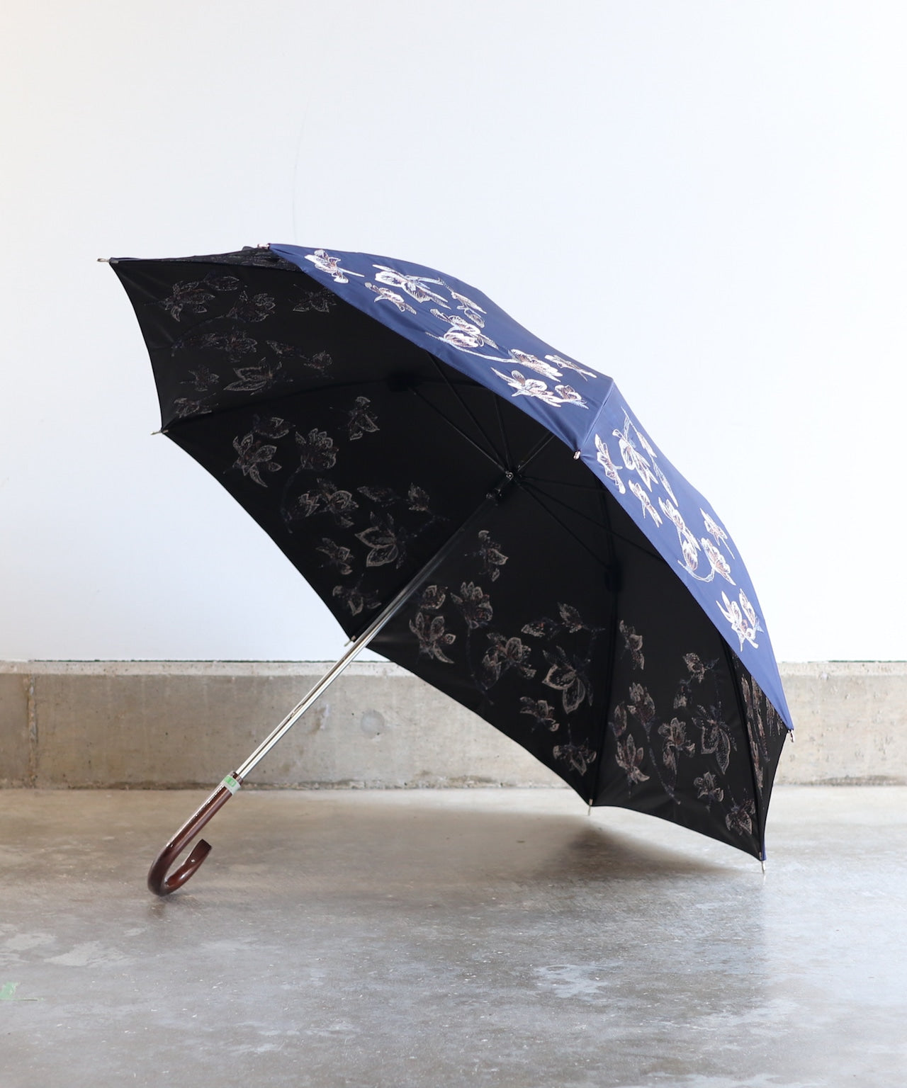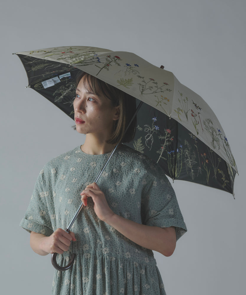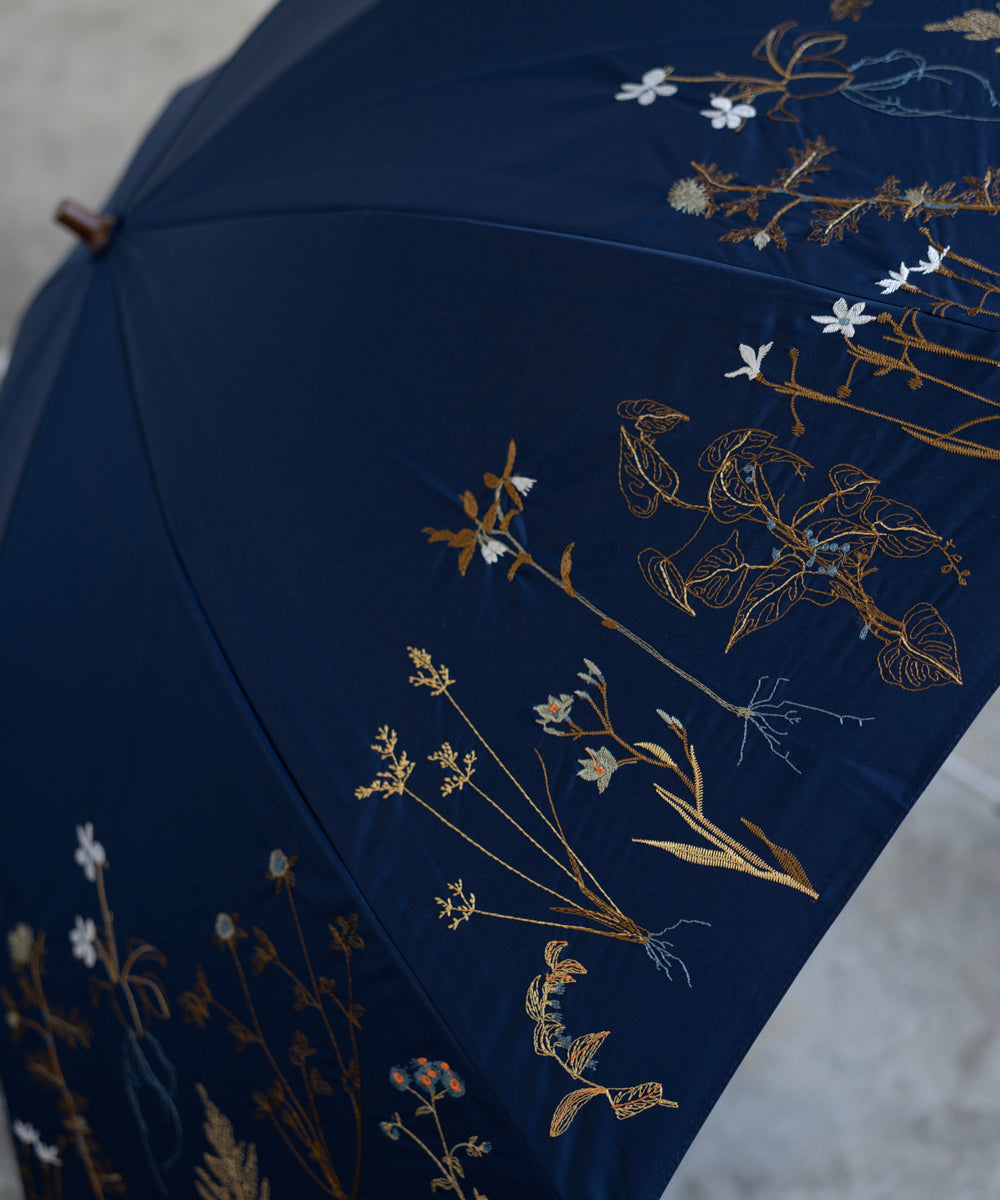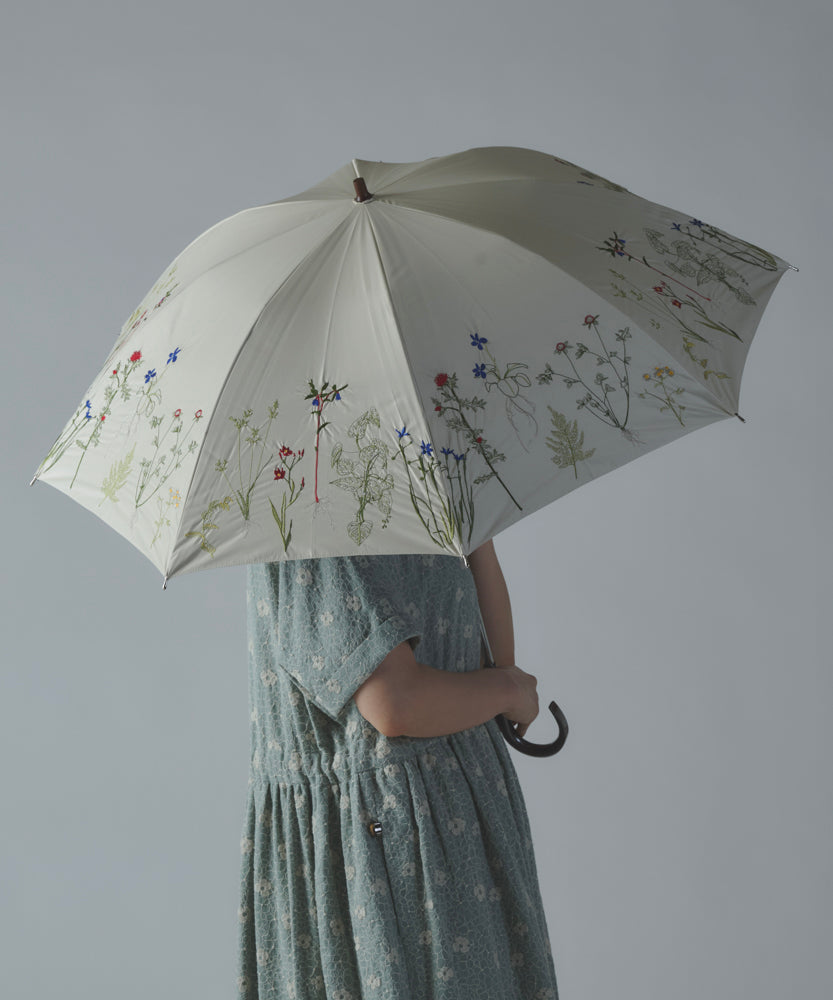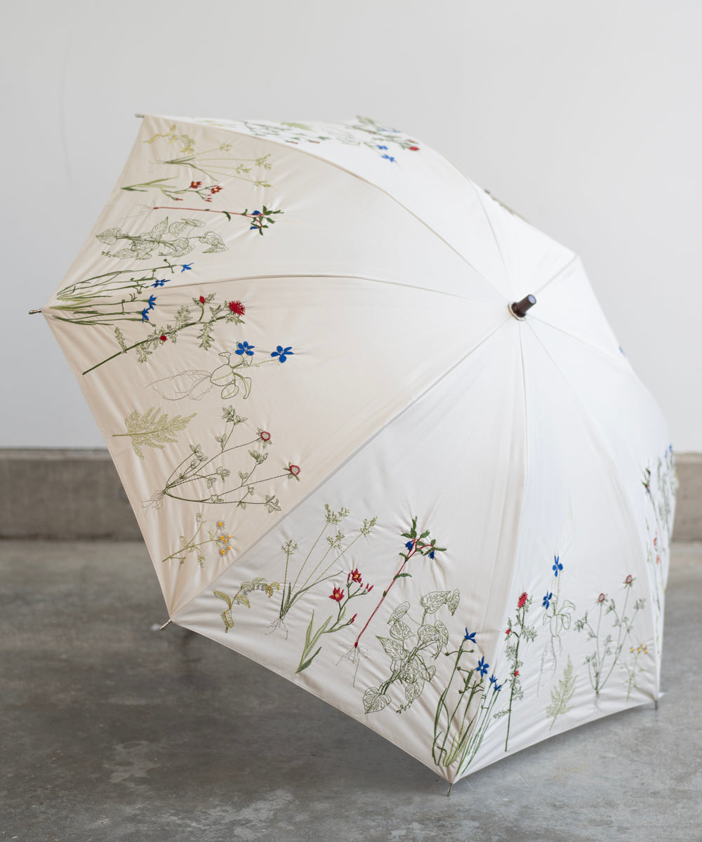 〈一級遮光生地・晴雨兼用〉ボタニカル刺繍の日傘 (長傘タイプ) (ELS61)