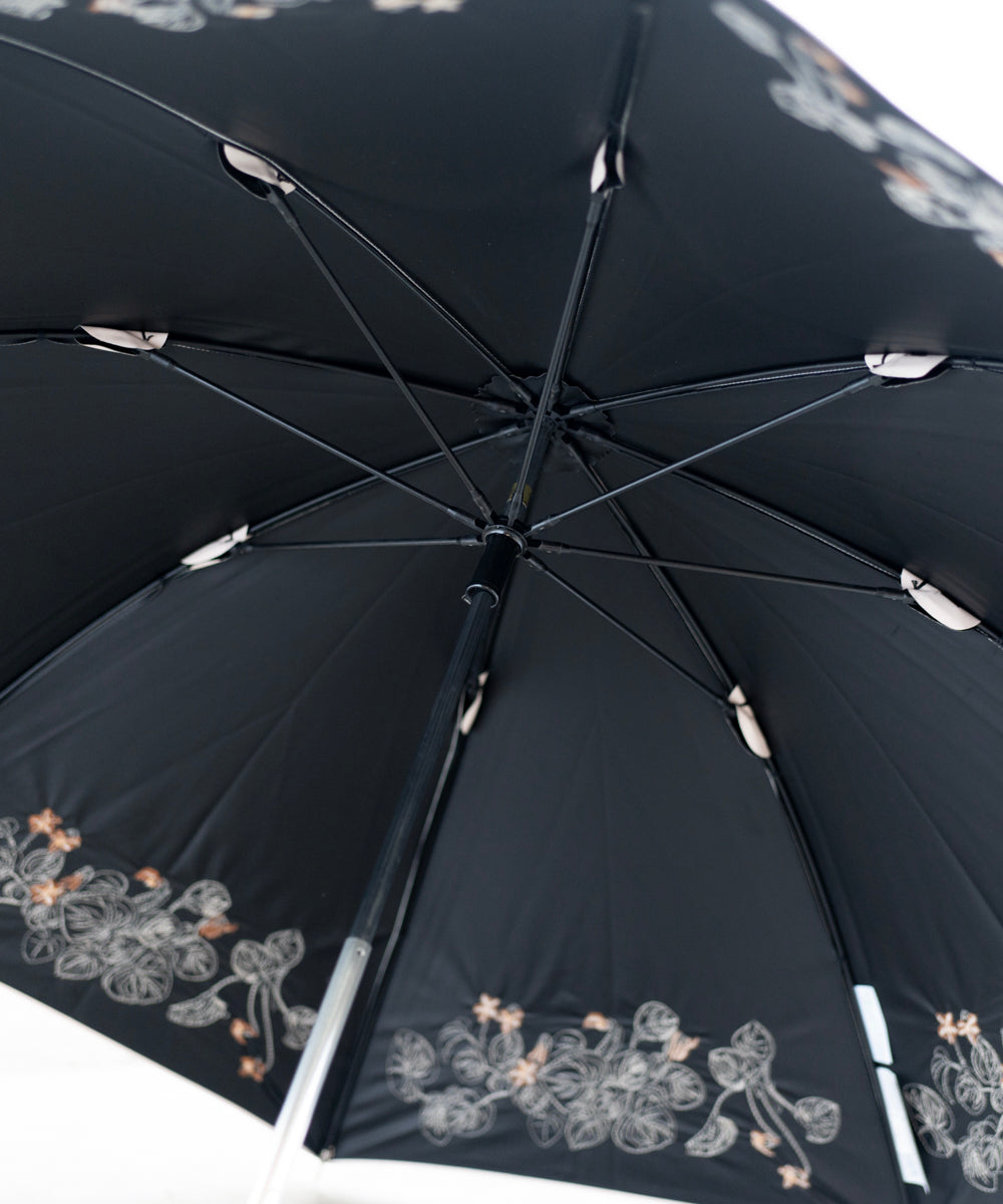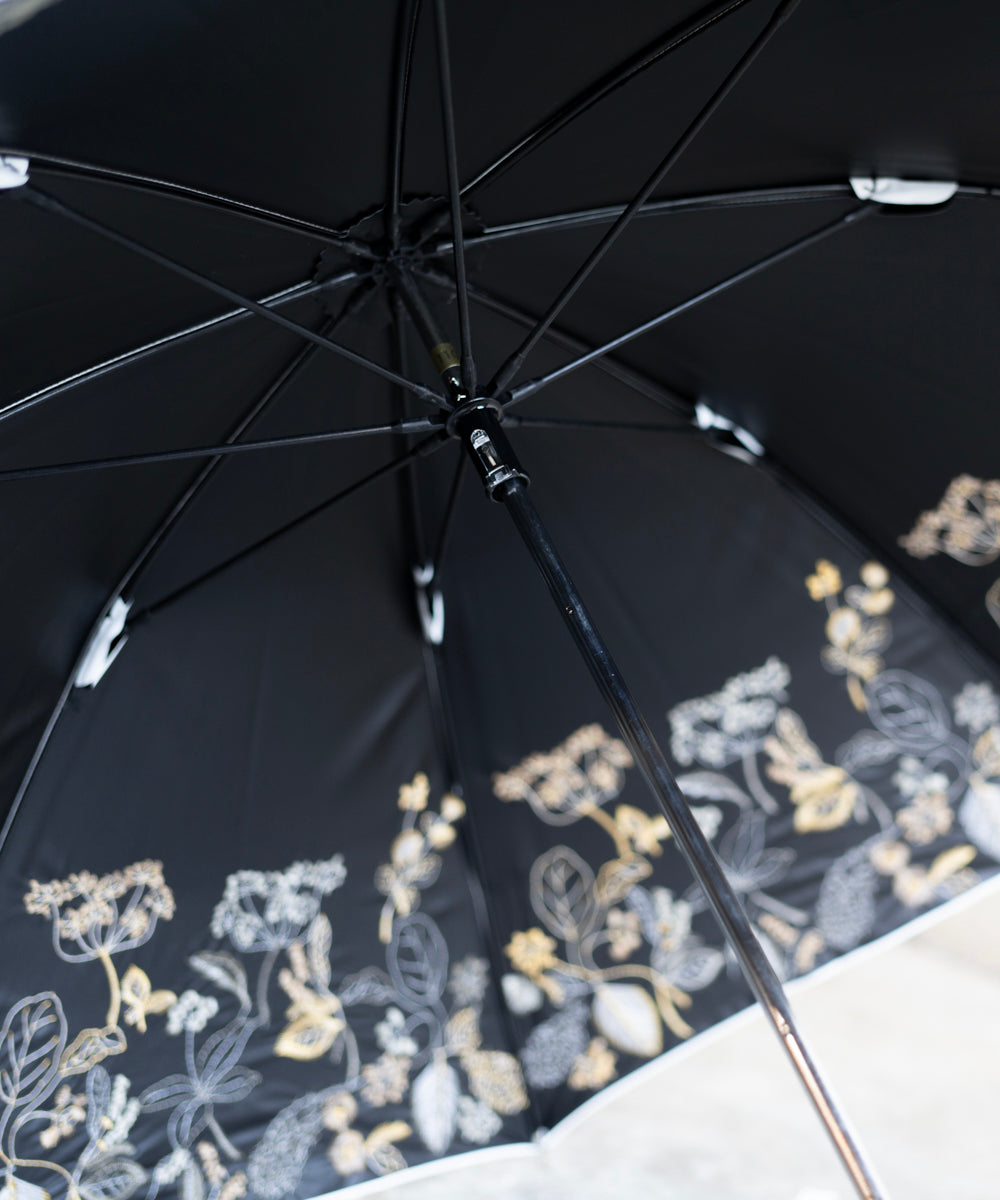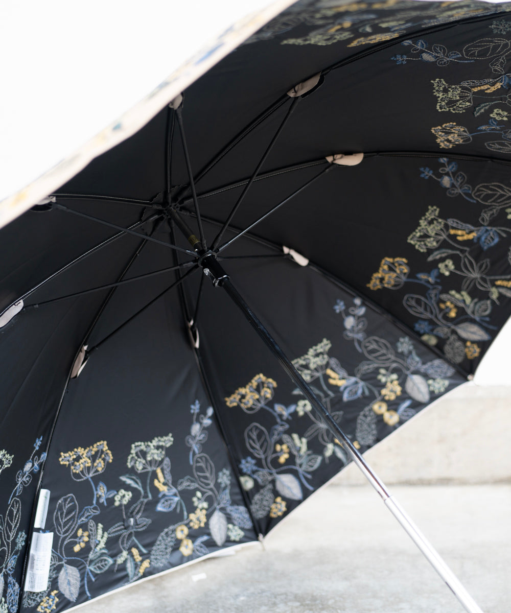 〈UVカット率99%以上・一級遮光生地・晴雨兼用〉ボタニカル刺繍の日傘 (長傘タイプ) (ELS55)