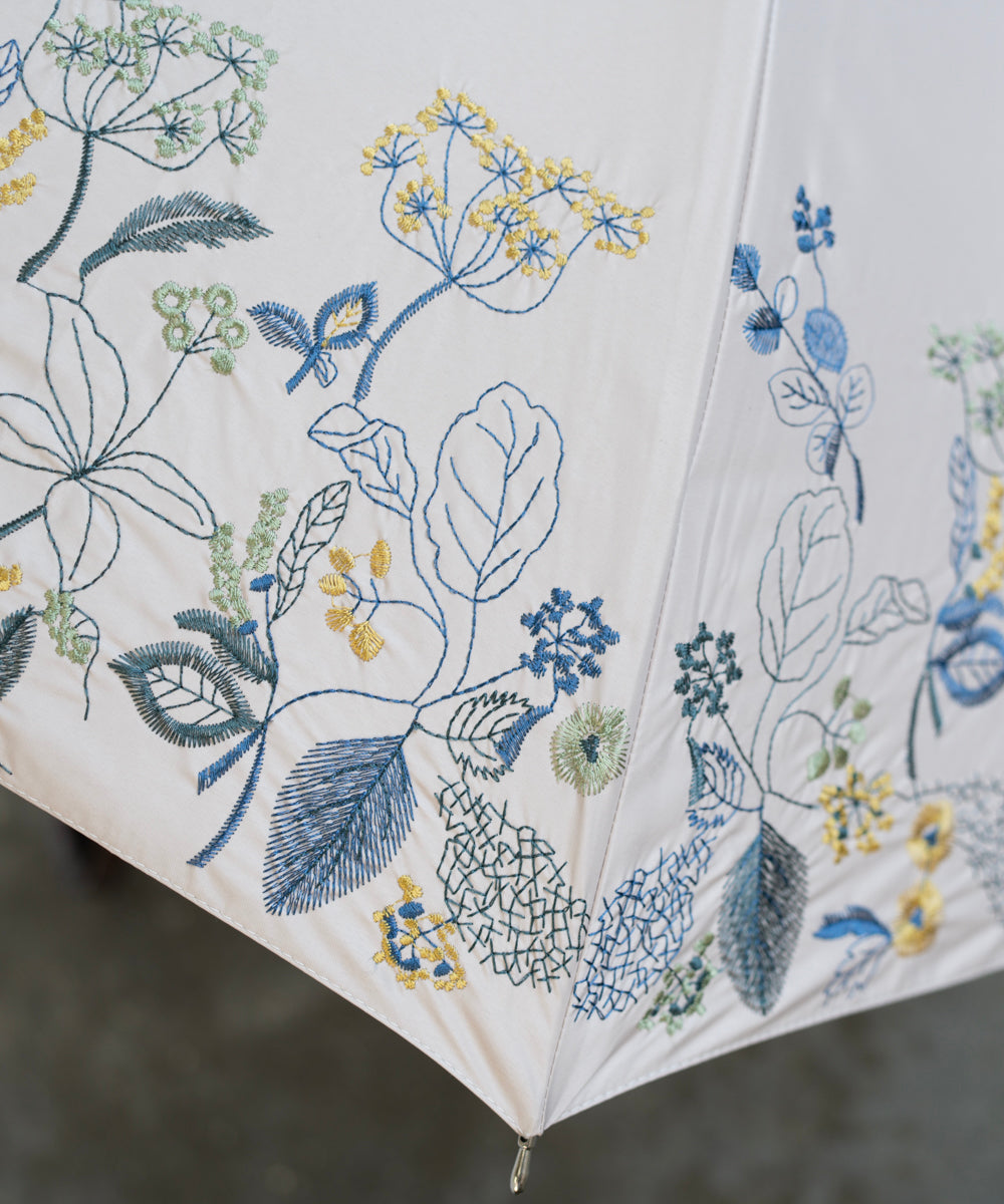 〈一級遮光生地・晴雨兼用〉ボタニカル刺繍の日傘 (折りたたみ傘タイプ)(ELS61mini)