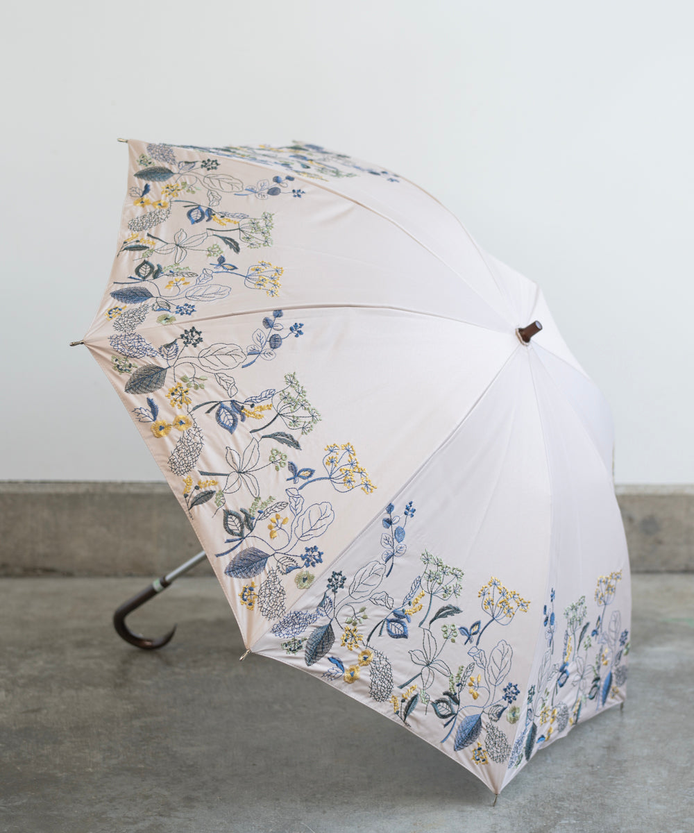 〈UVカット率99%以上・一級遮光生地・晴雨兼用〉ボタニカル刺繍の日傘 (長傘タイプ)(ELS57)
