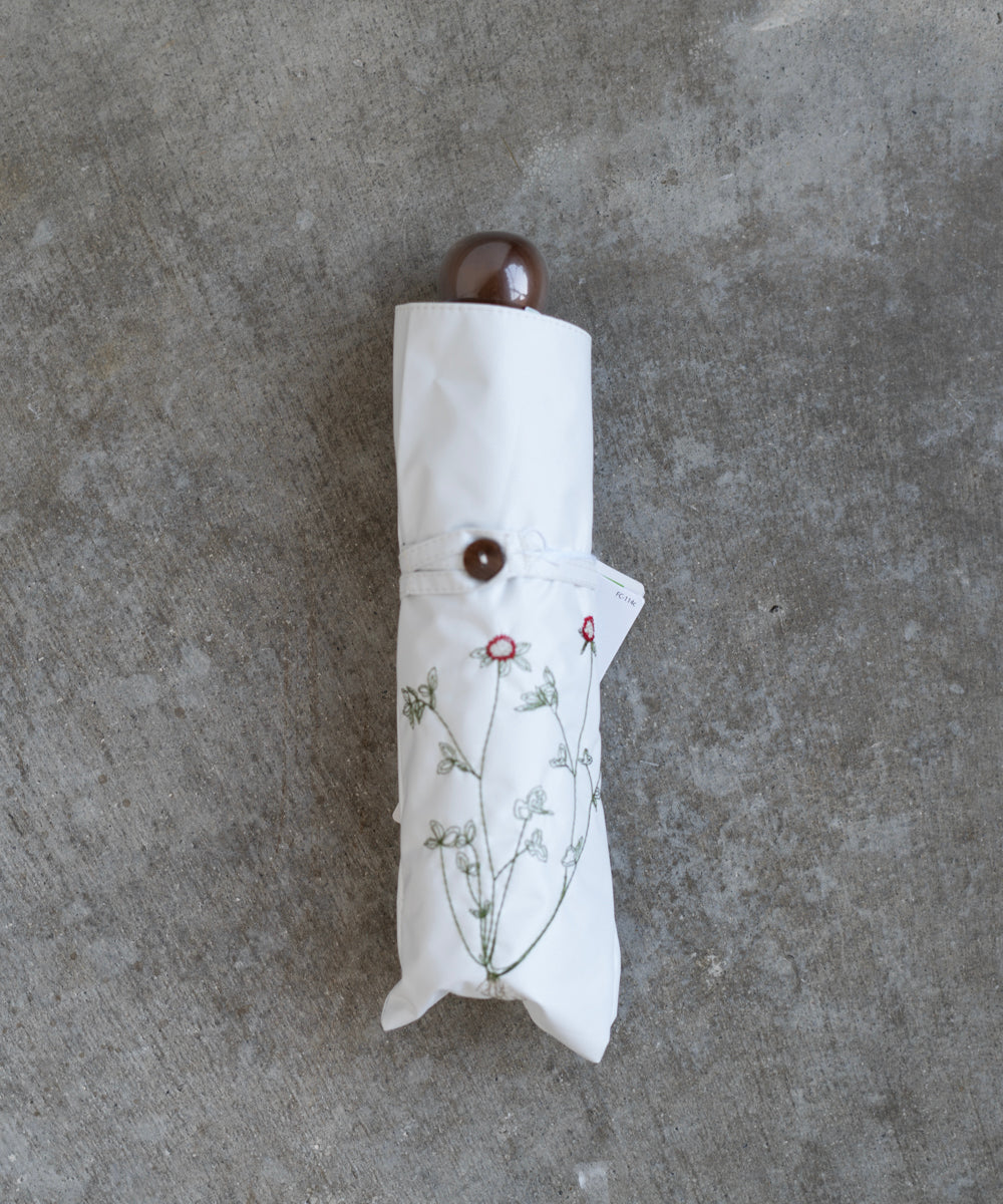 〈UVカット率99%以上・一級遮光生地・晴雨兼用〉野ばら刺繍の日傘 (折りたたみ傘タイプ)(ELS54mini)