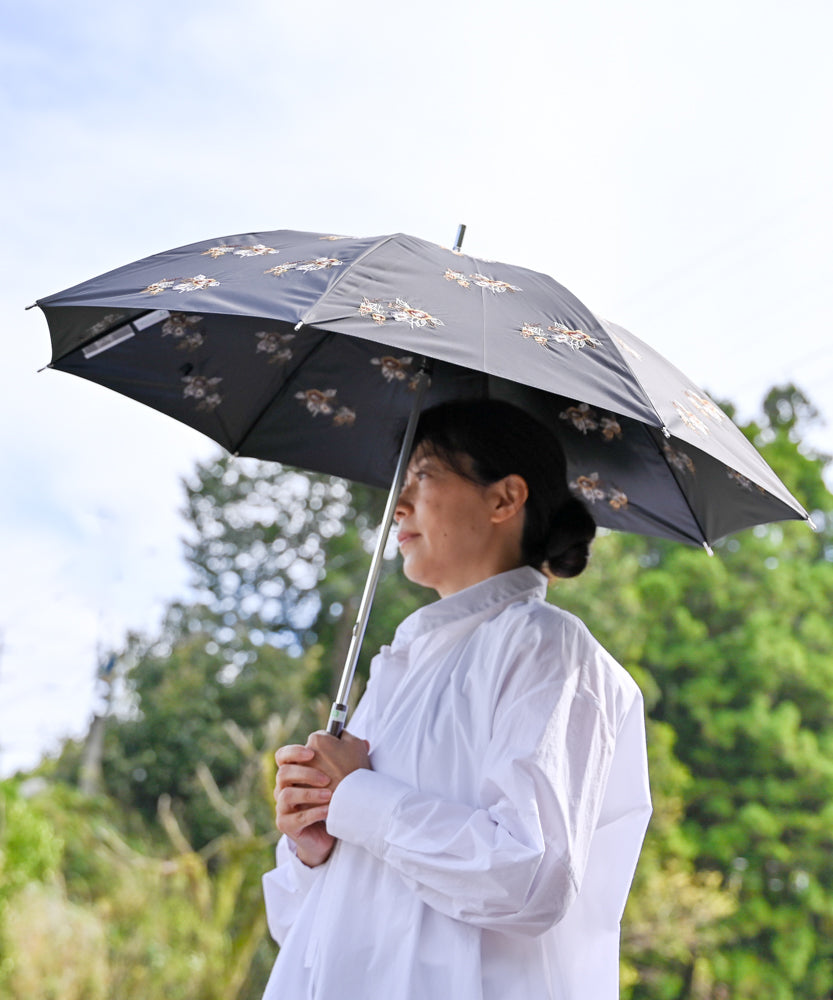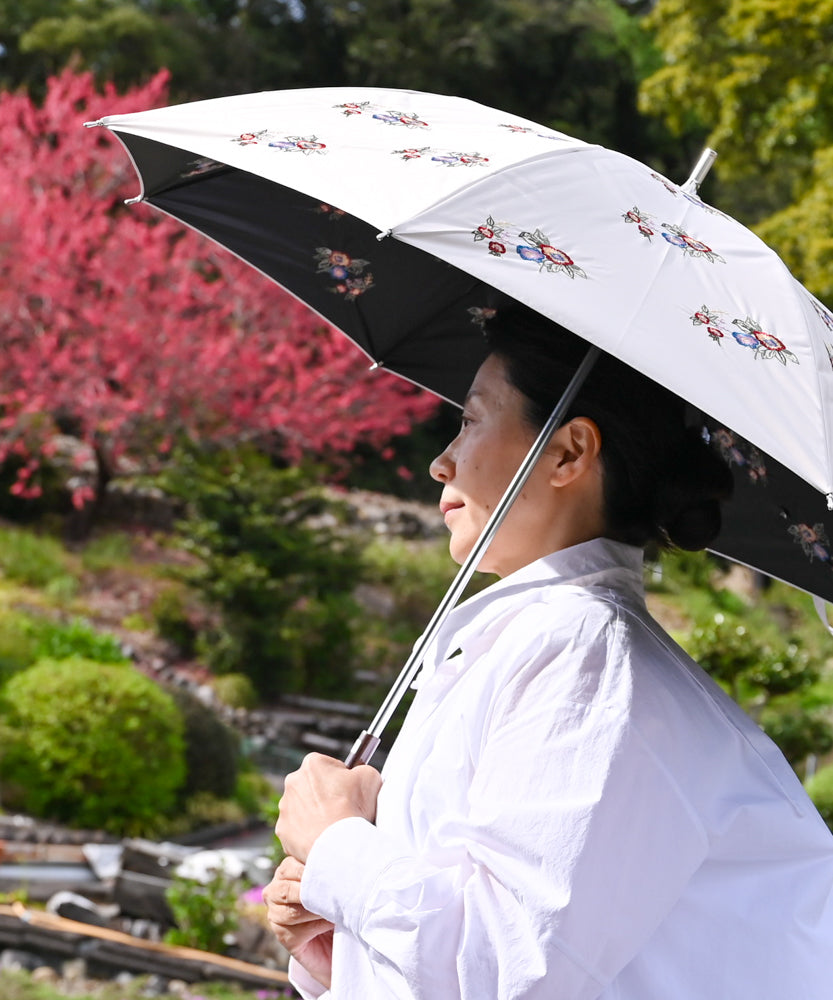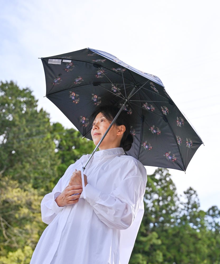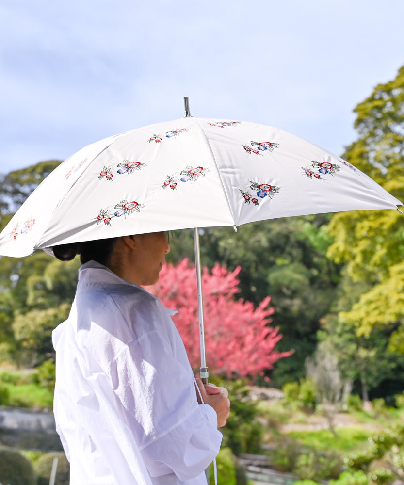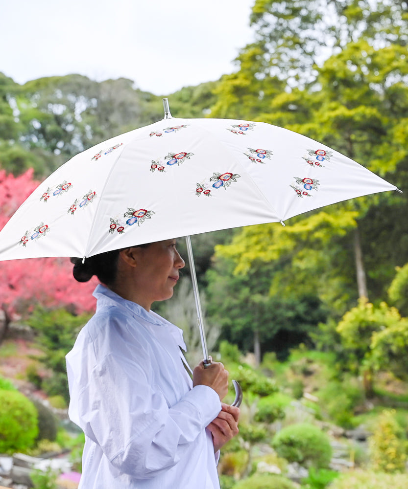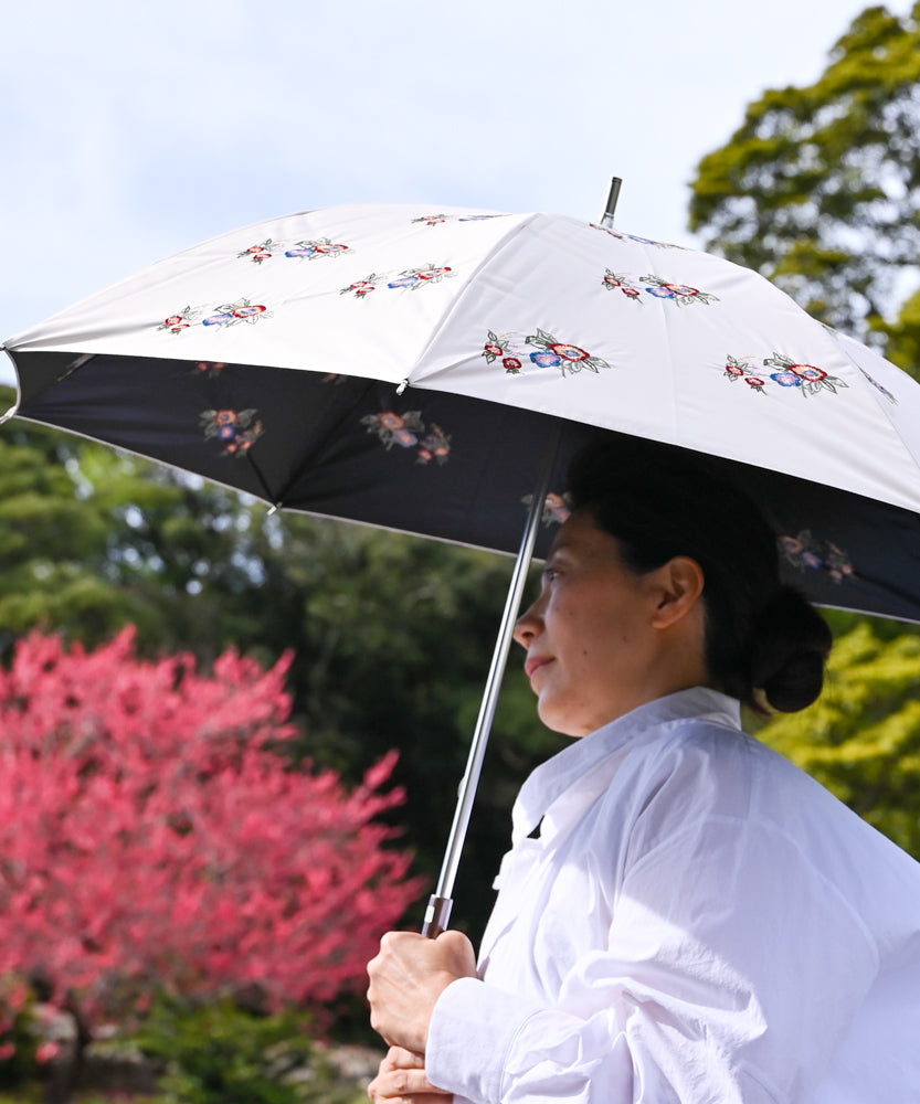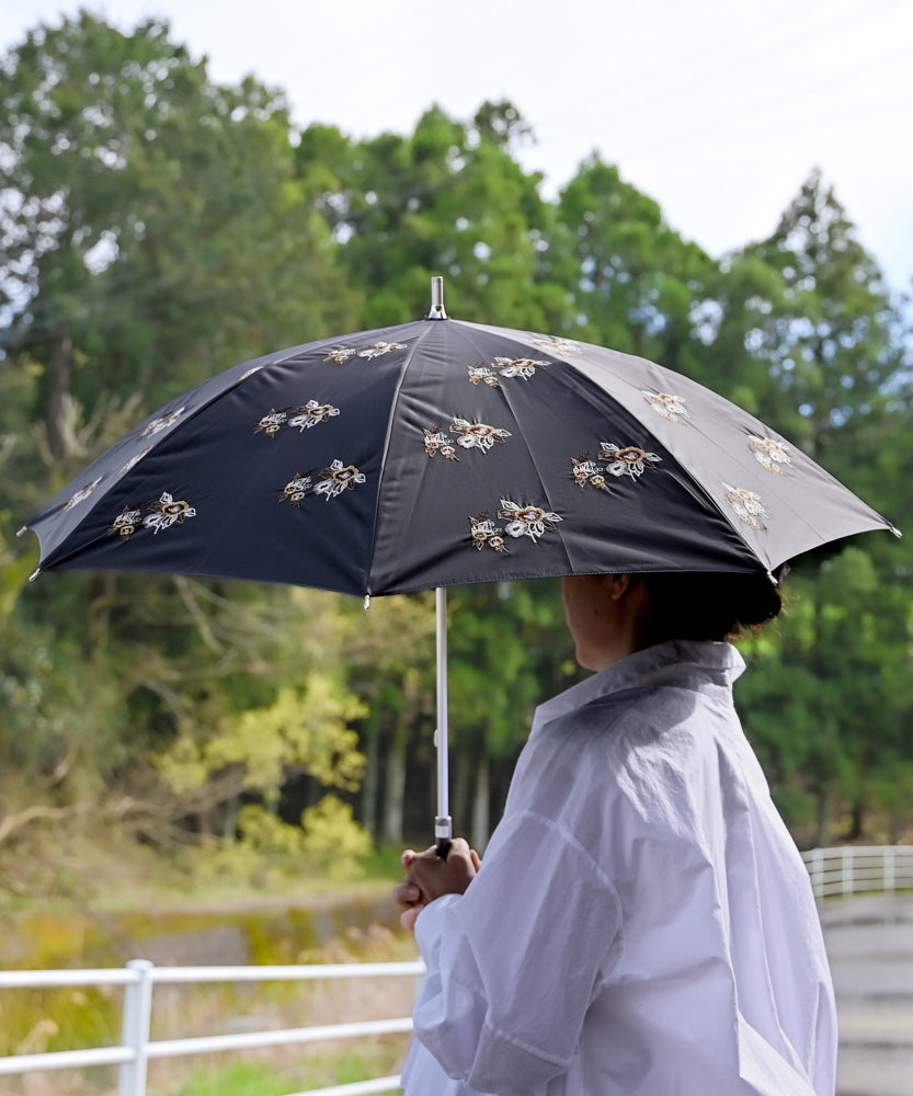 〈UVカット率99%以上・一級遮光生地・晴雨兼用〉イラカ刺繍の日傘 (長傘タイプ)(ELS53)