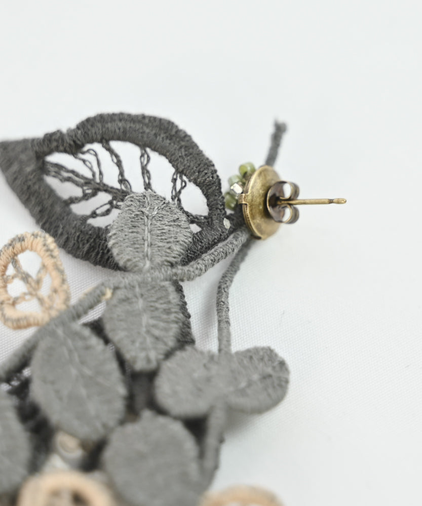 ミモザ刺繍のイヤリング / ピアス (AC016)