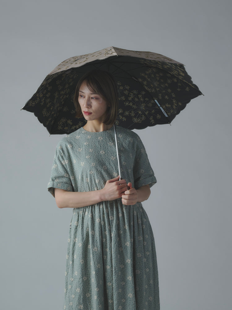 〈一級遮光生地・晴雨兼用〉フェンネル刺繍の日傘 (折りたたみ傘タイプ)(ELS62mini)
