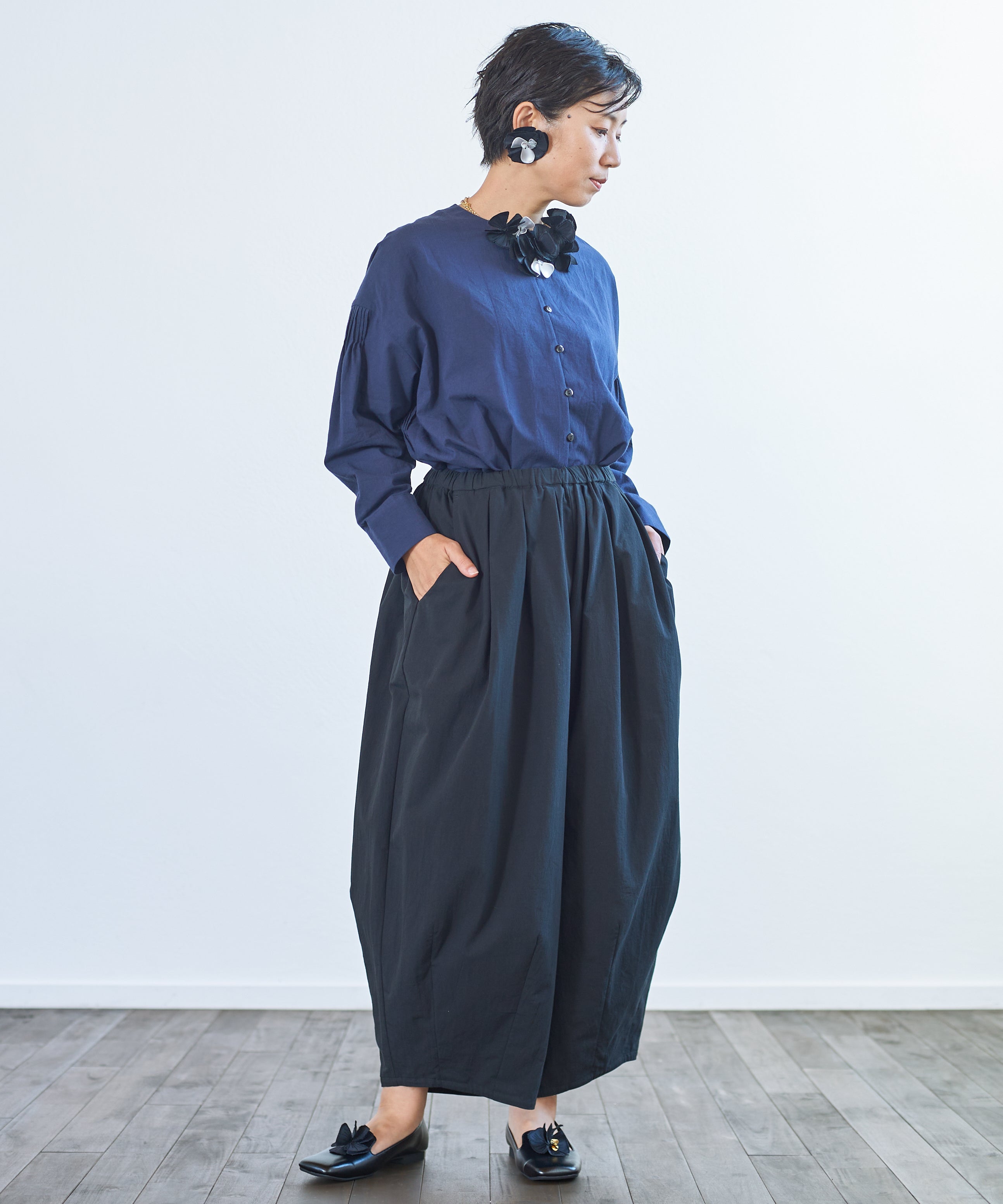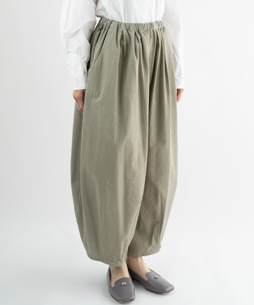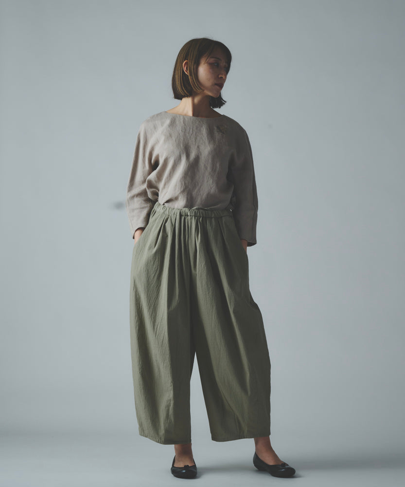 コットンワッシャーブロード・裾タックワイドパンツ (mul320)