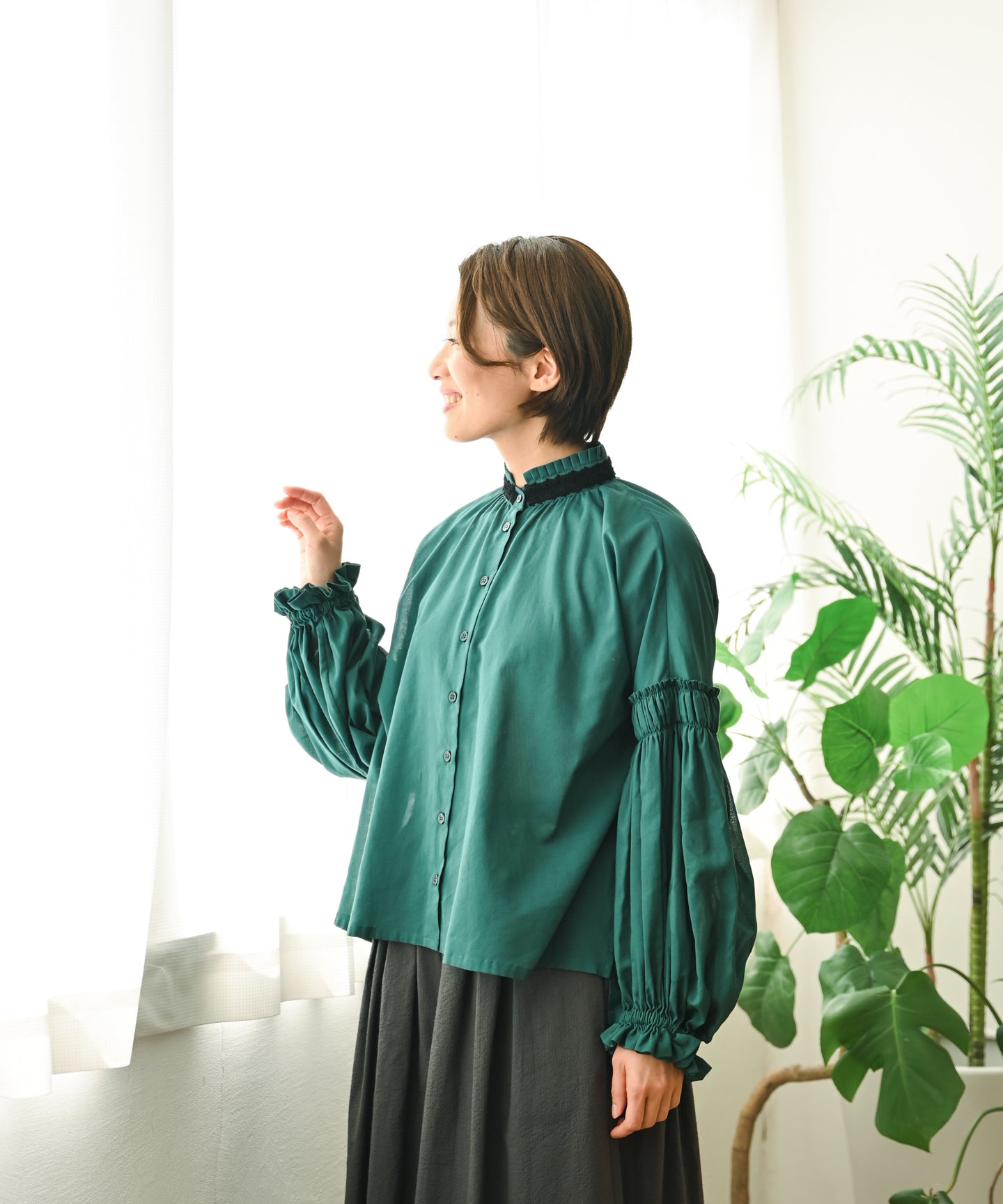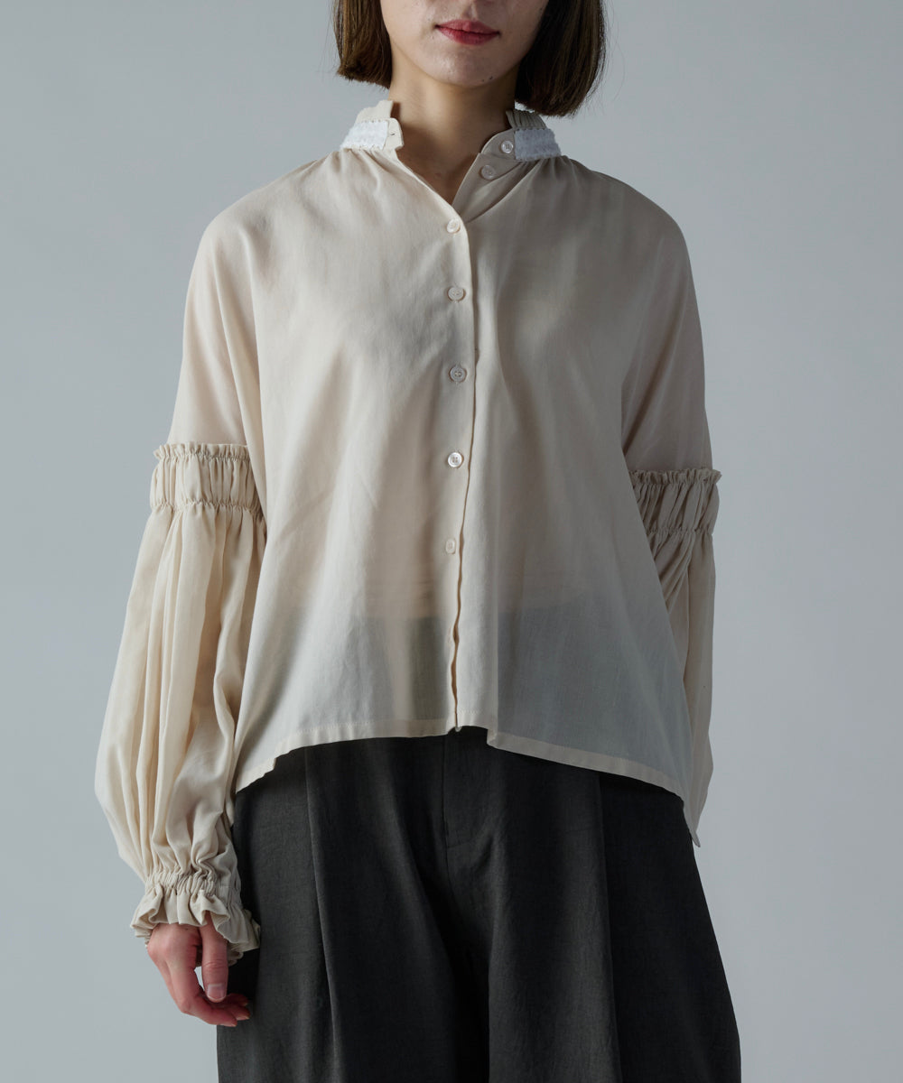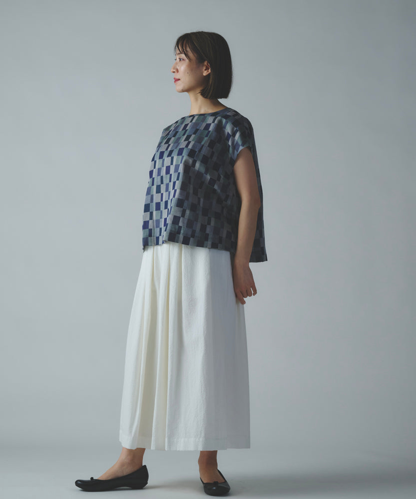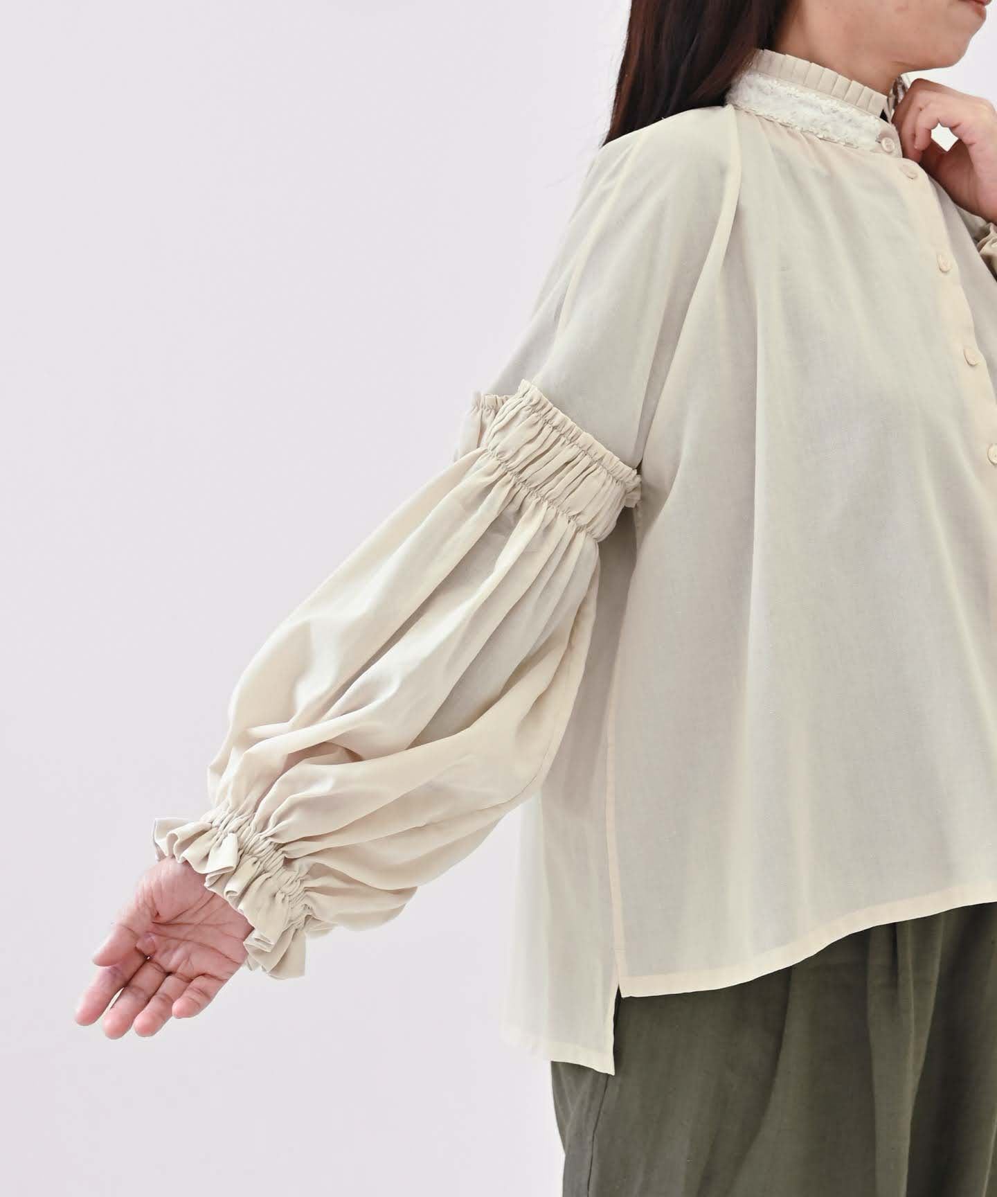 〈遠州織物〉プリーツ袖ブラウス (muf102)