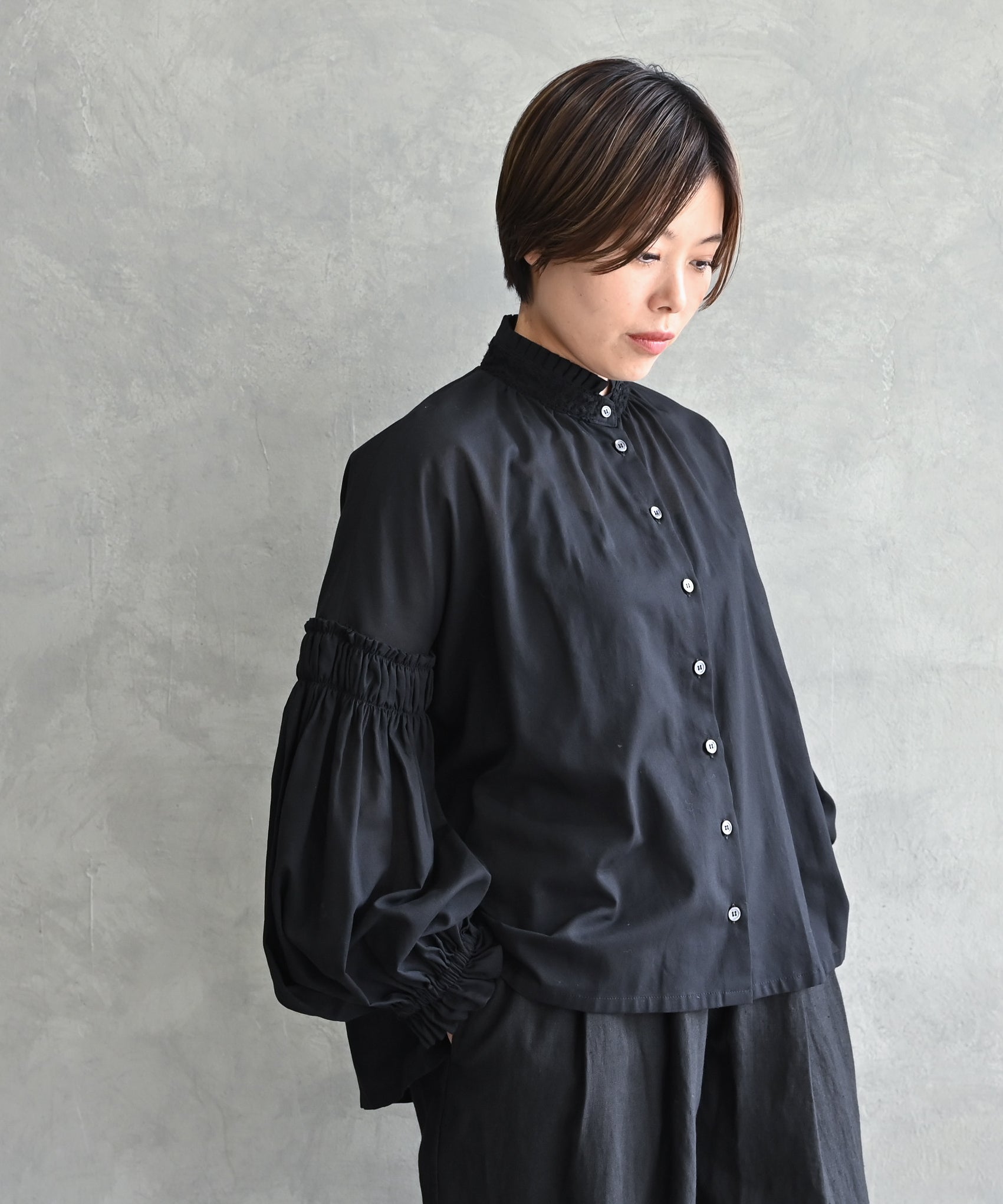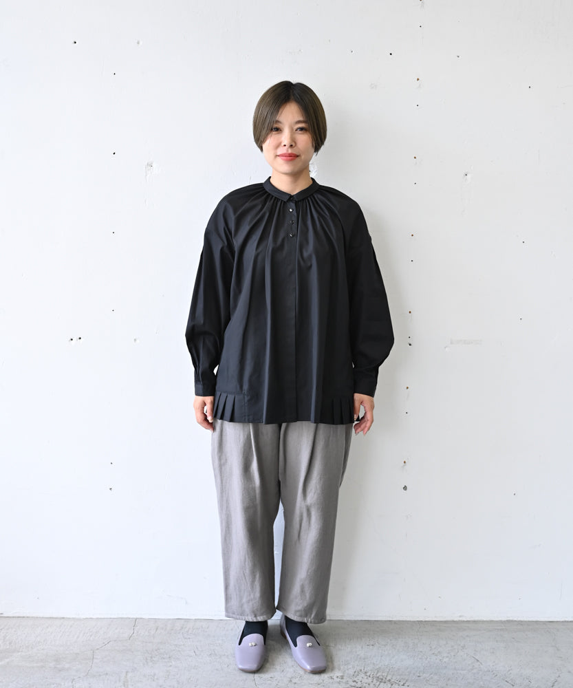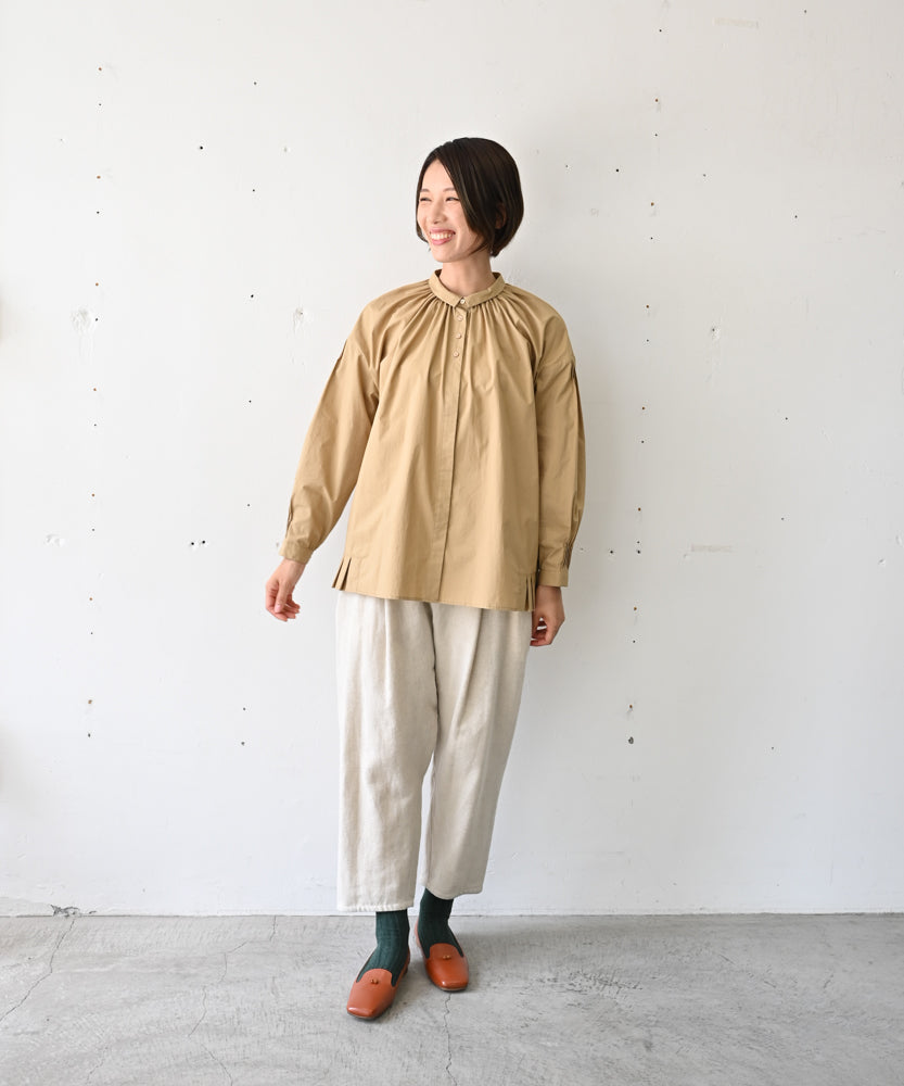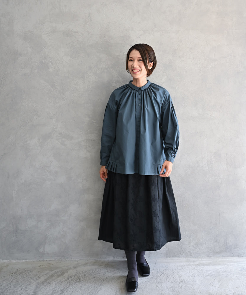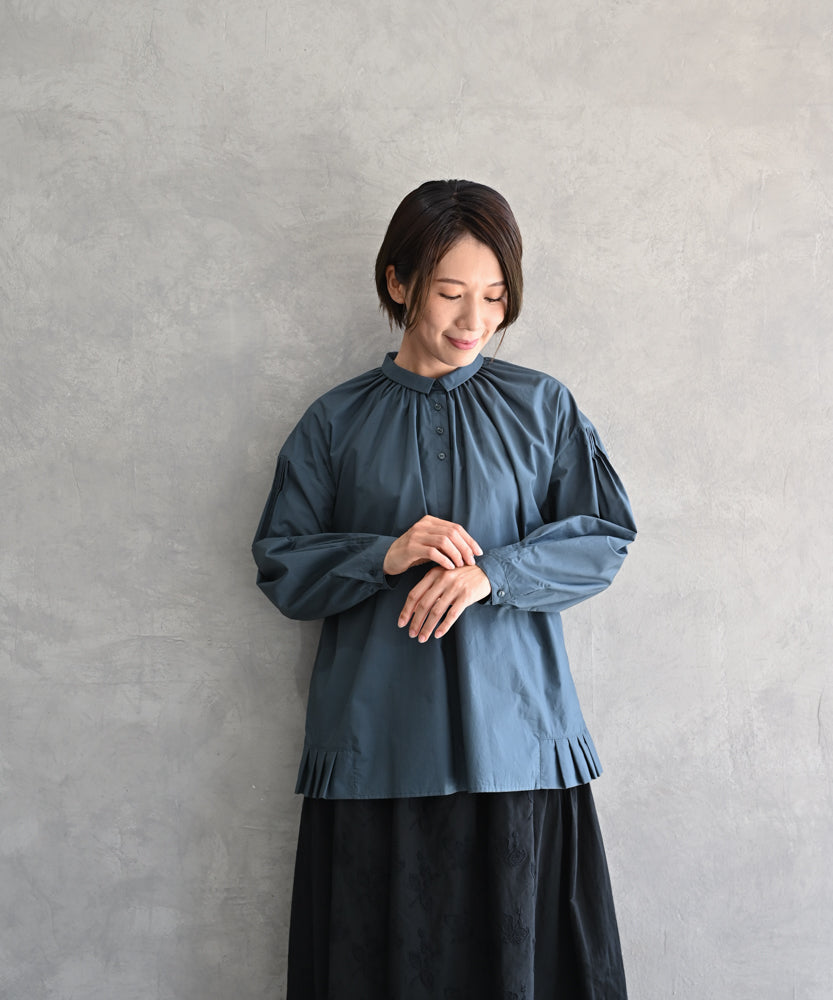 〈遠州織物〉コットンドビーギャザーブラウス (muh110)