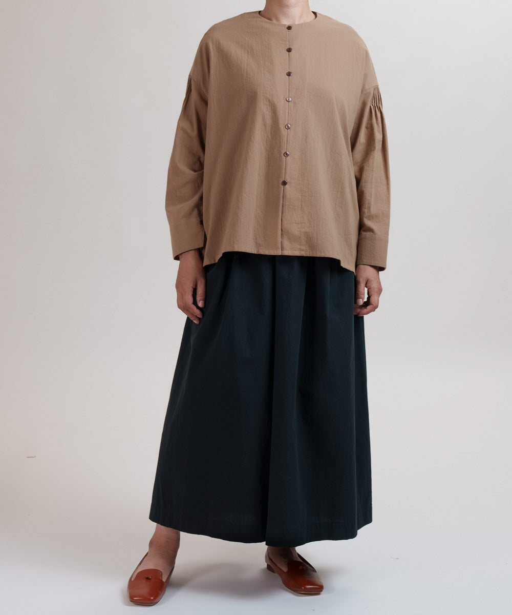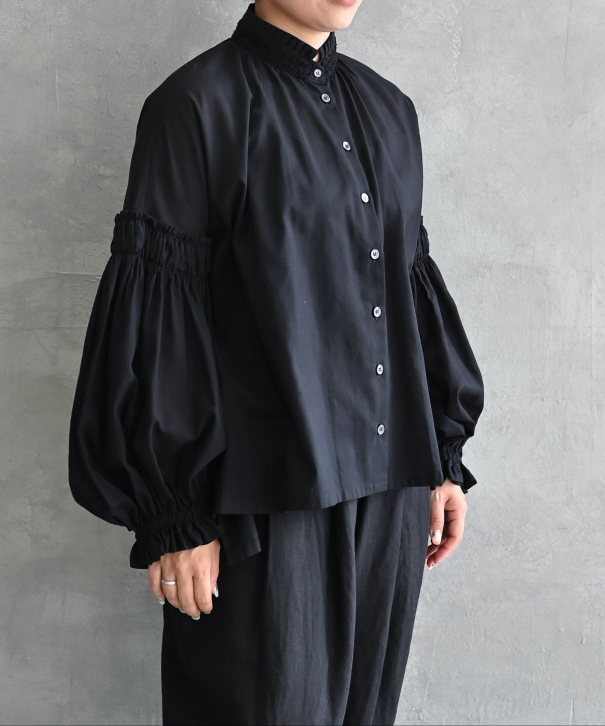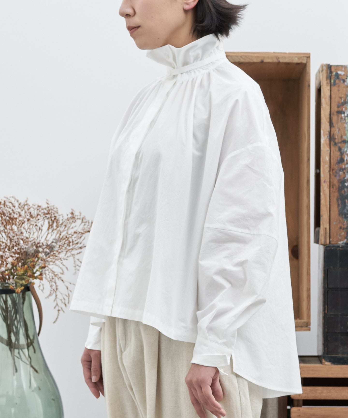 〈遠州織物〉コットンドビーギャザーブラウス (muh110)