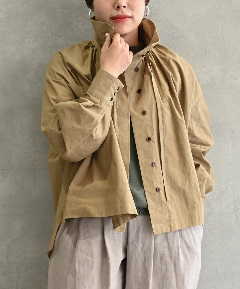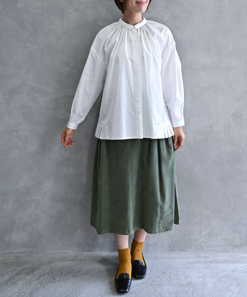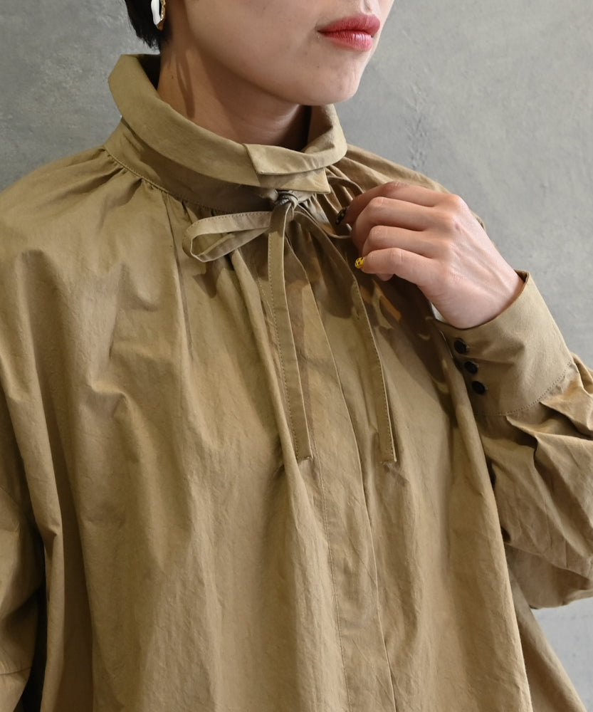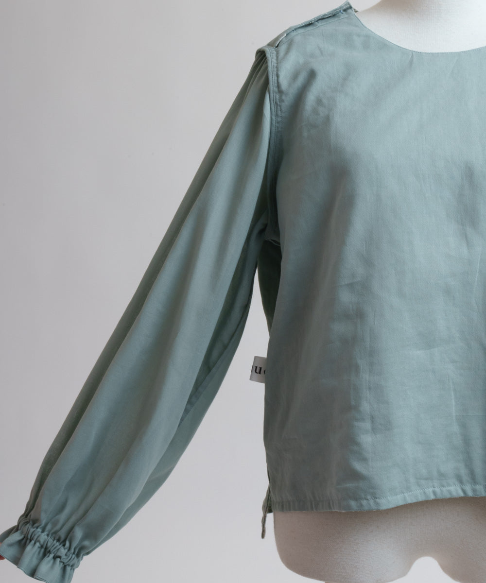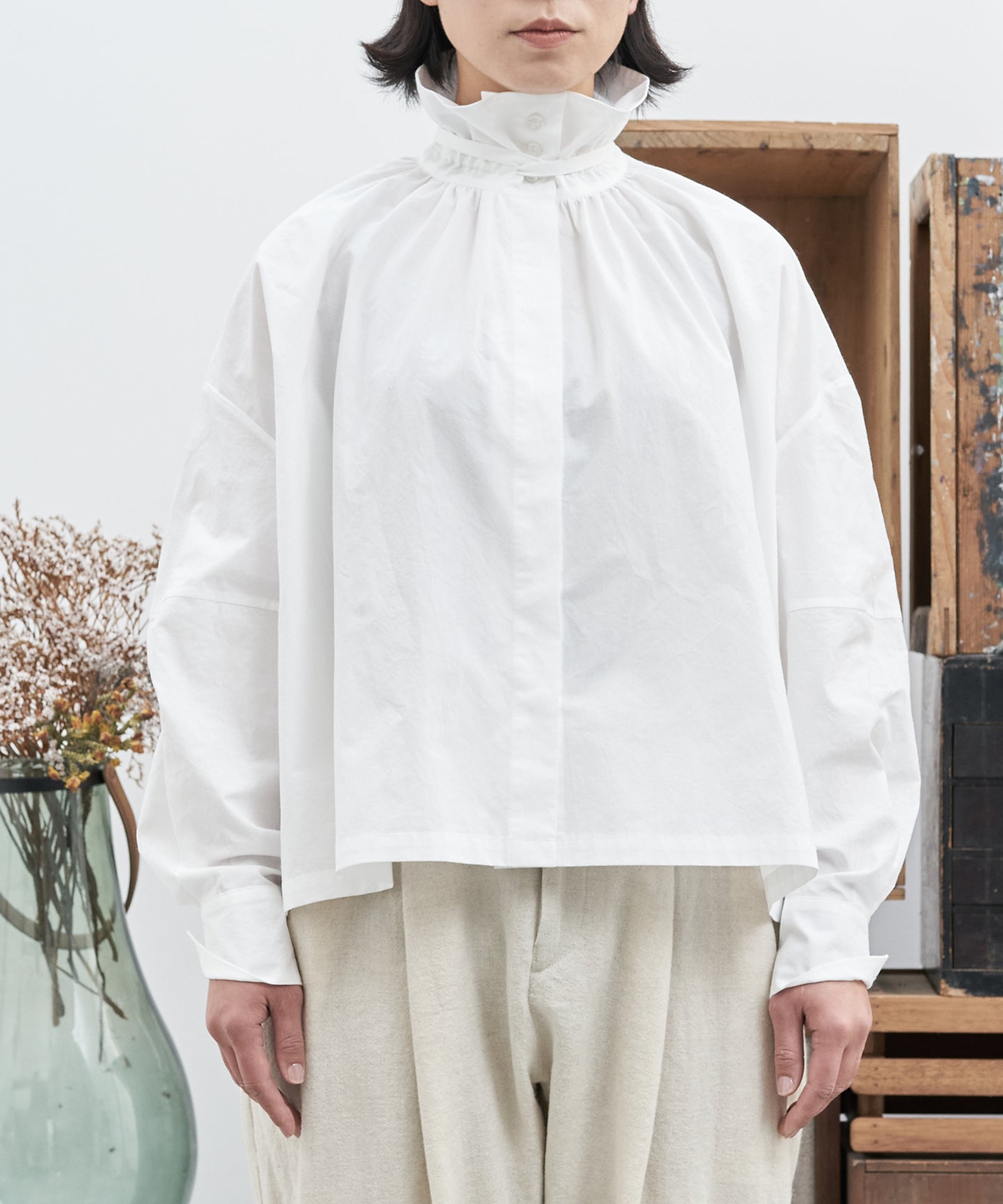 〈遠州織物〉コットンドビーギャザーブラウス (muh110)