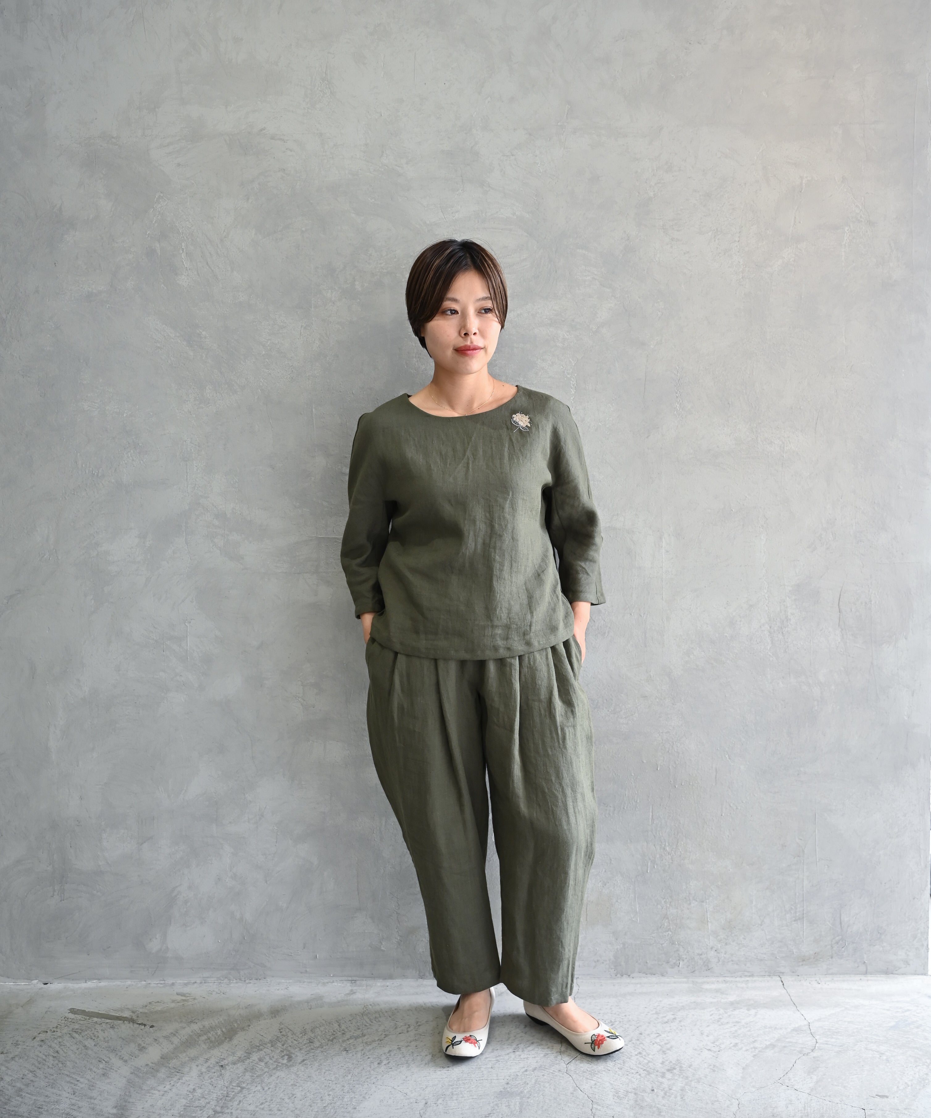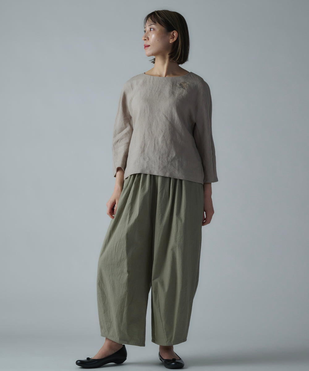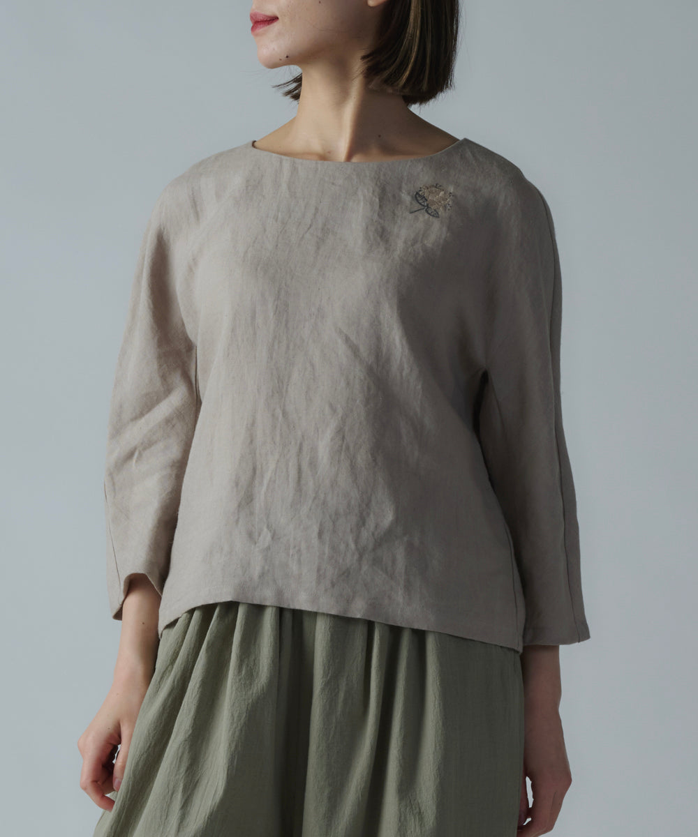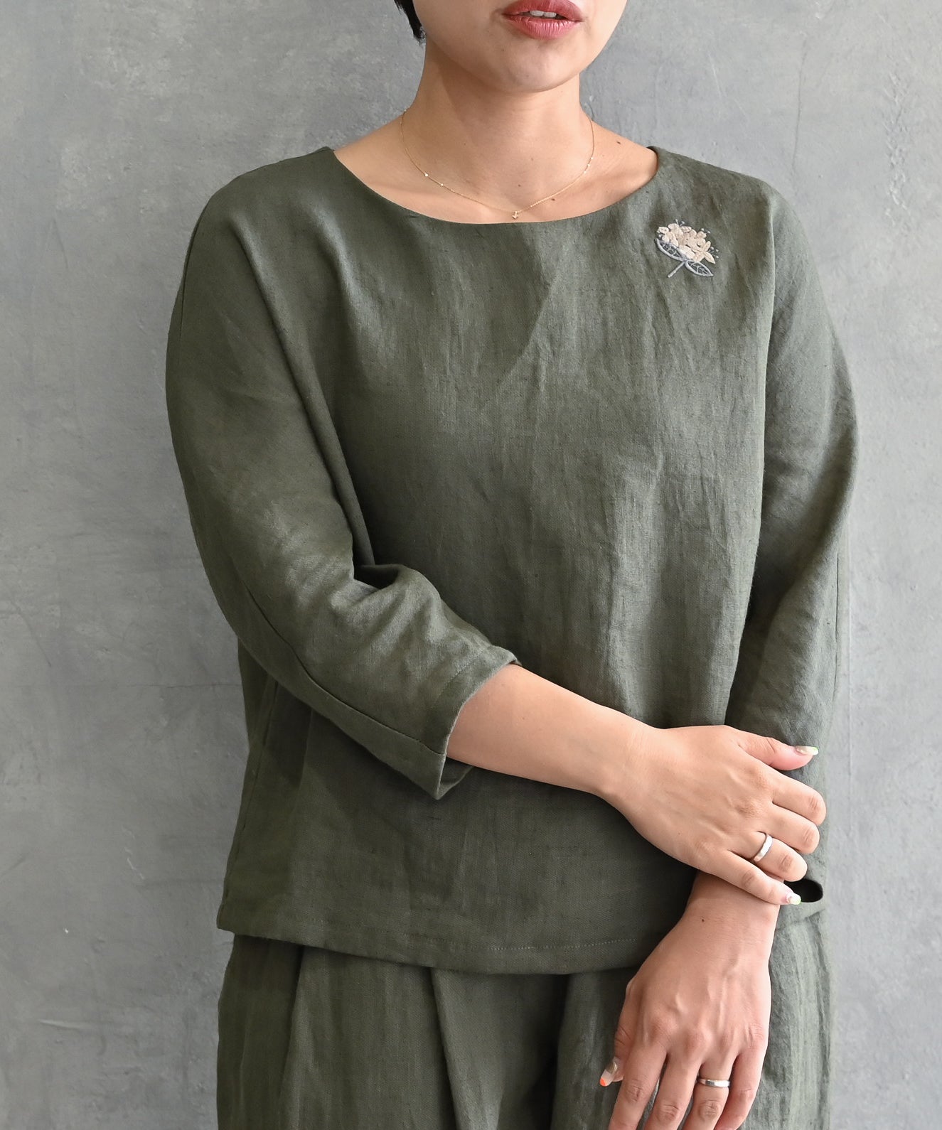 〈高品質ベルギーリネン〉花刺繍モチーフ付きリネンプルオーバー (muh912)