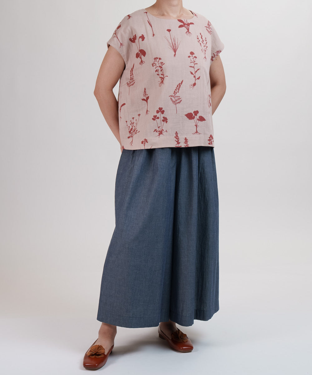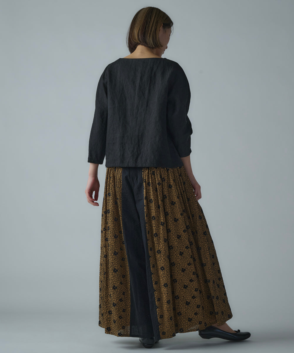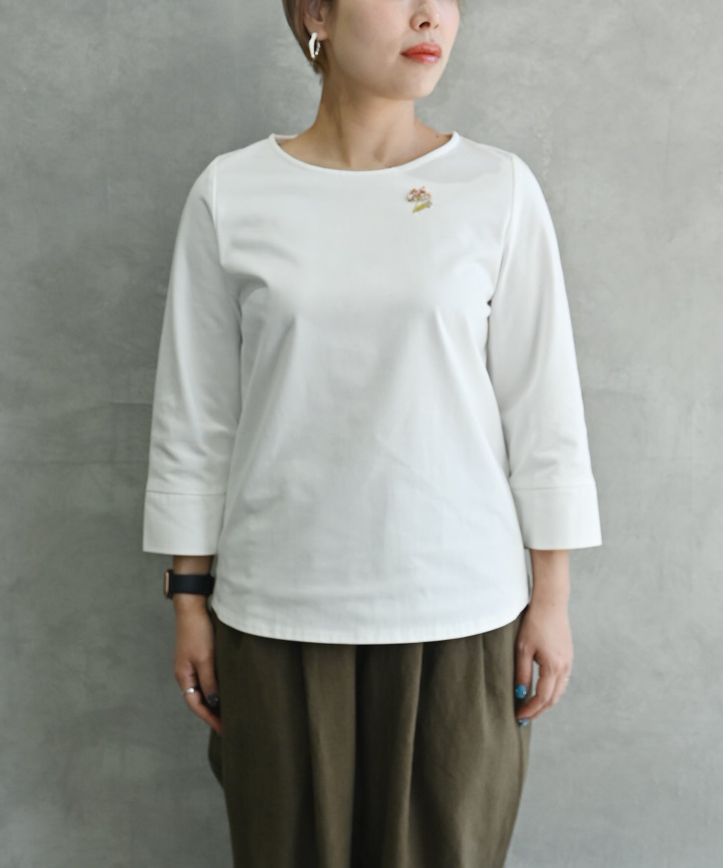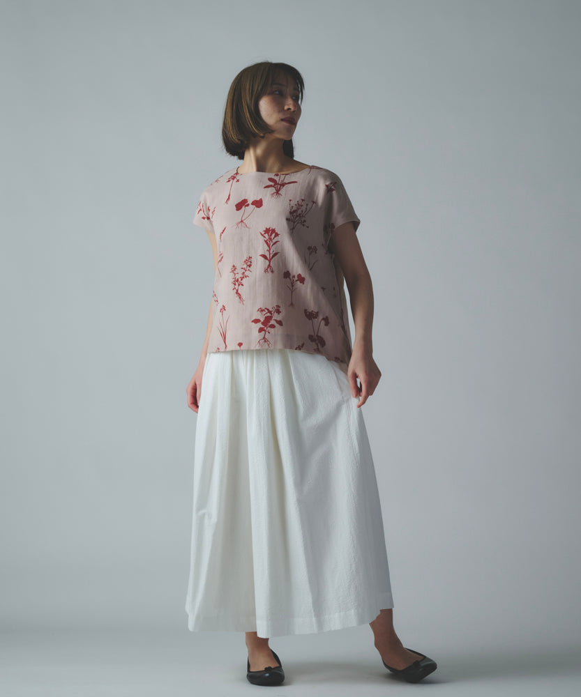 〈高品質ベルギーリネン〉花刺繍モチーフ付きリネンプルオーバー (muh912)