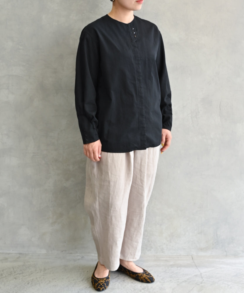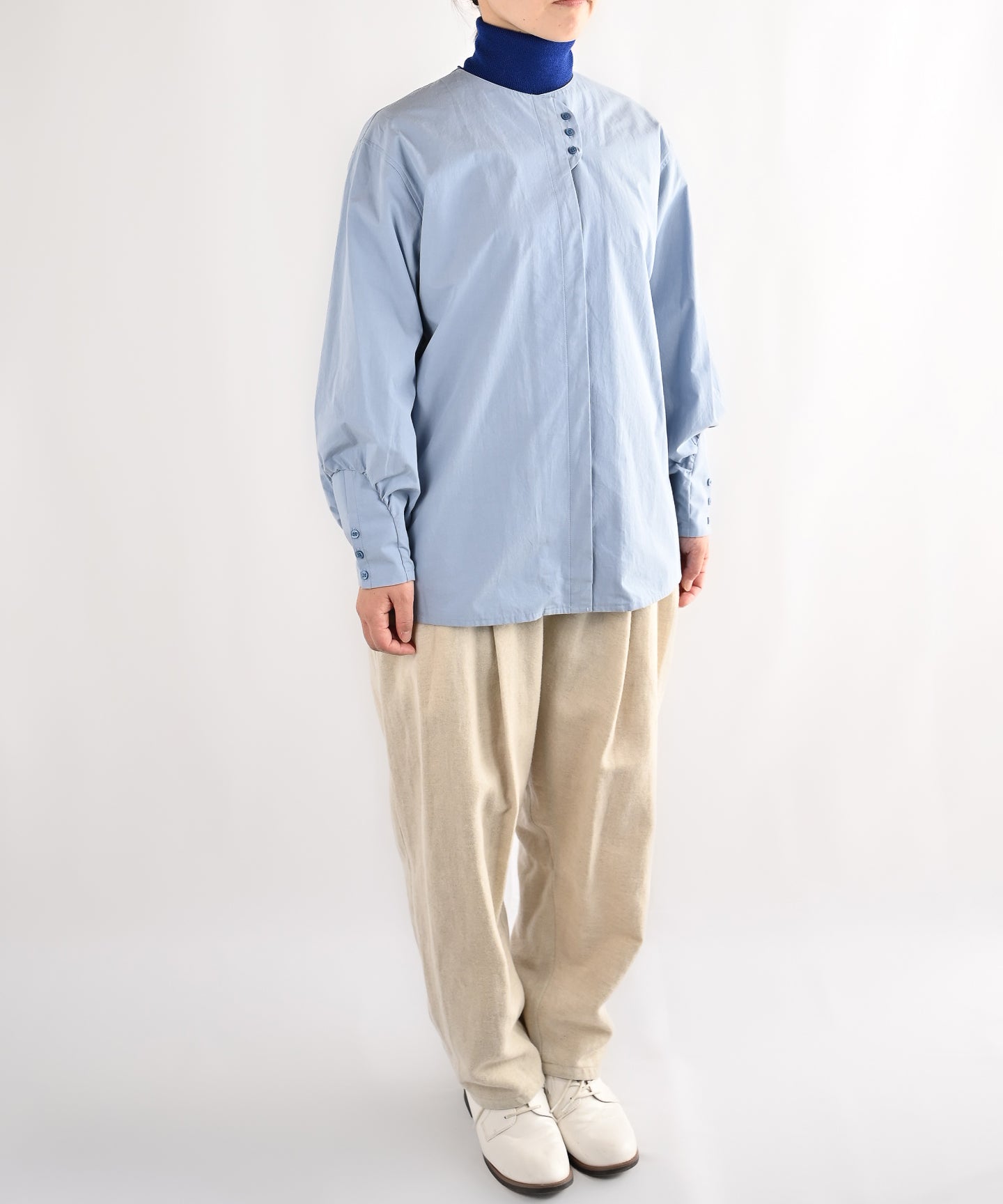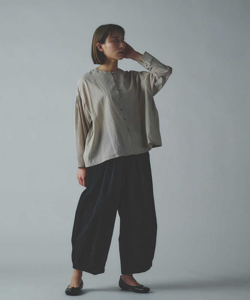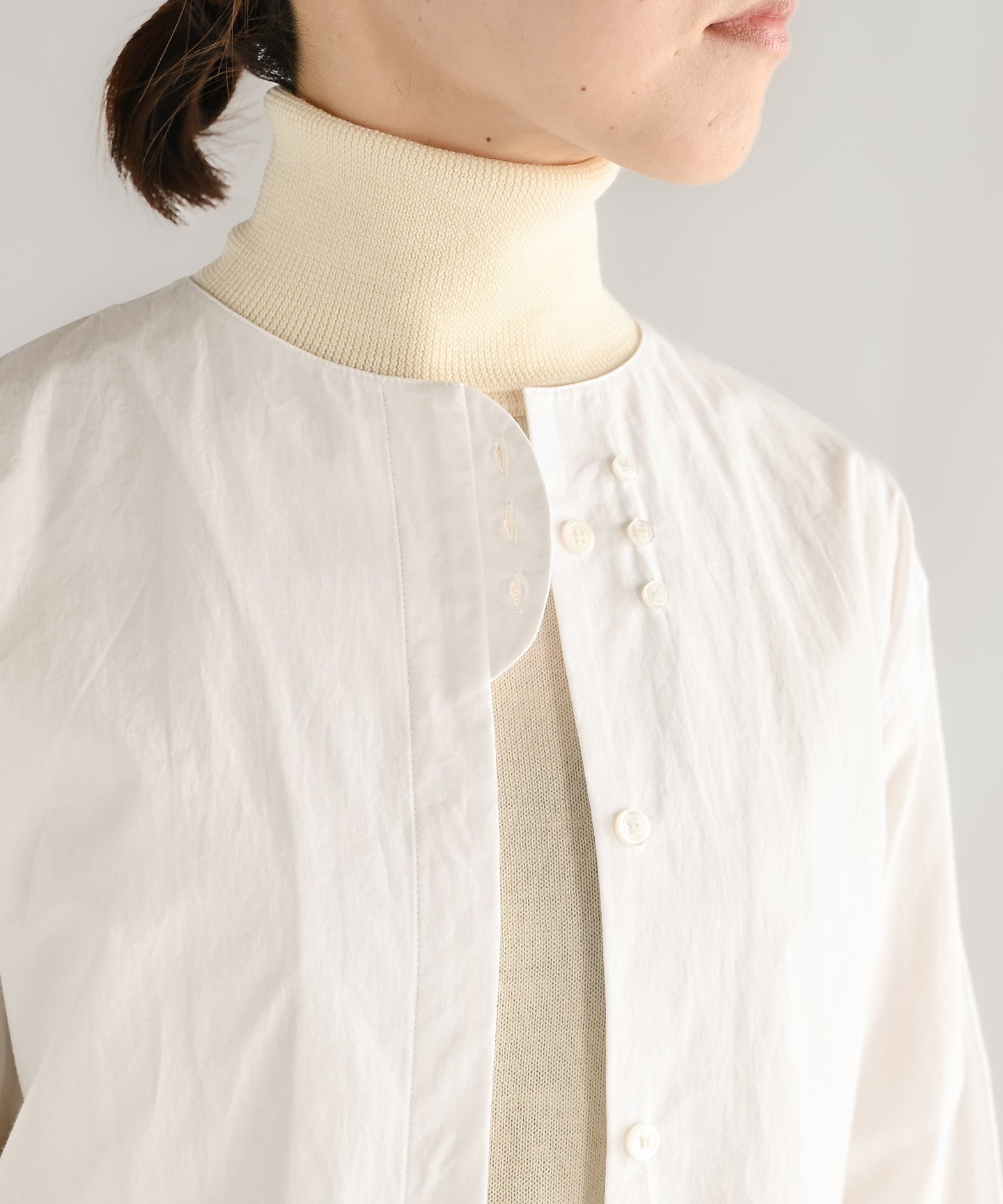 〈遠州織物〉ノーカラーブラウス (mug124)