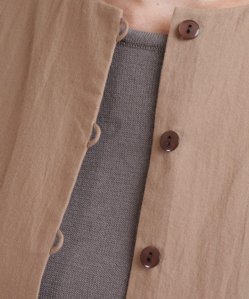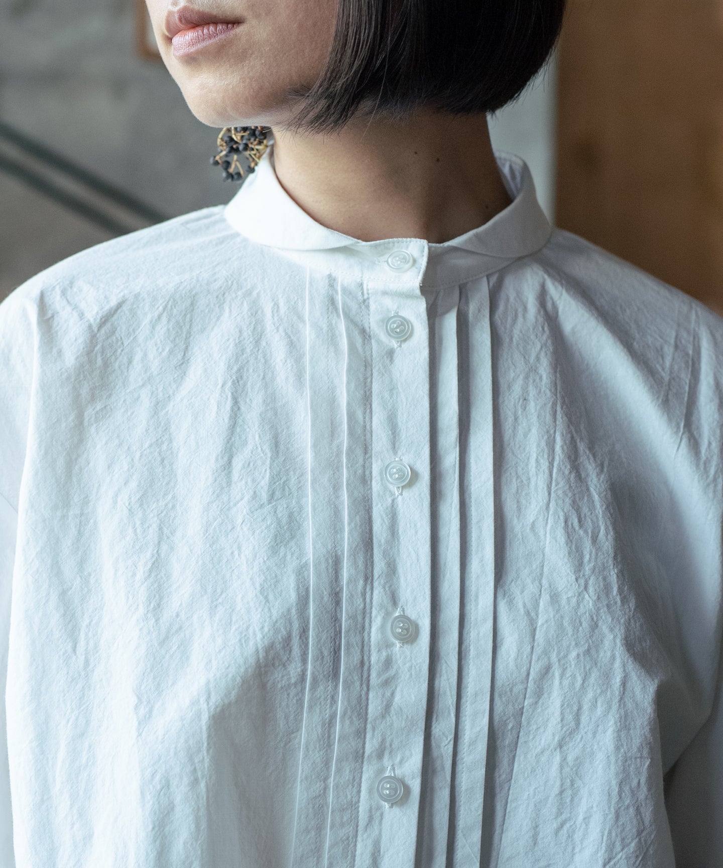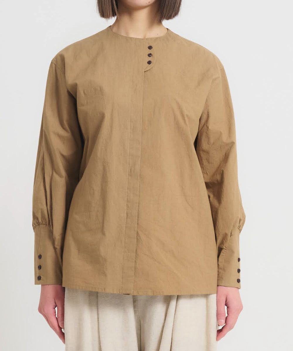 〈遠州織物〉ノーカラーブラウス (mug124)