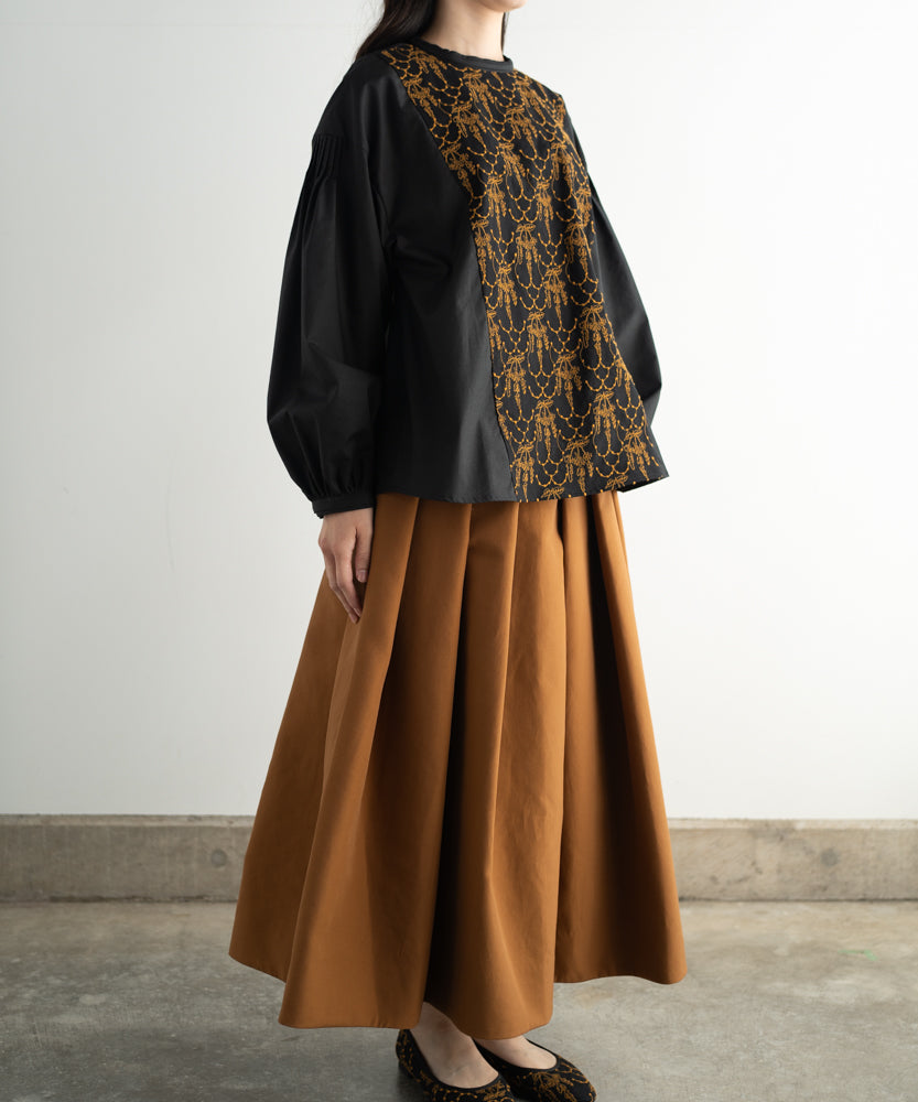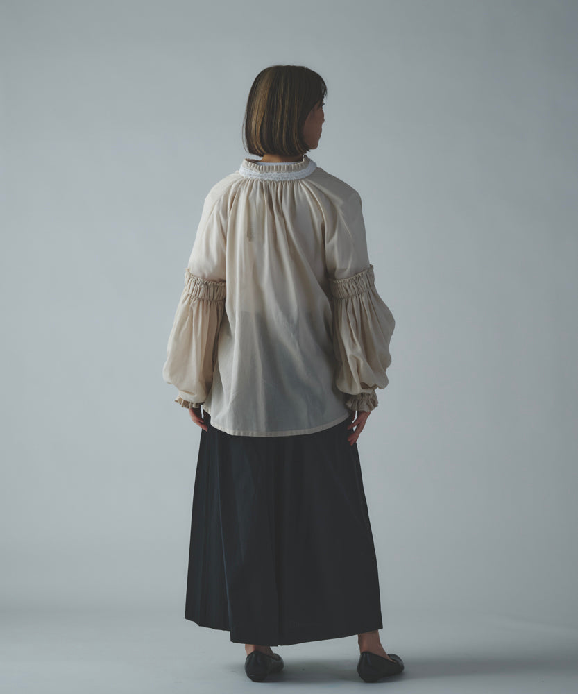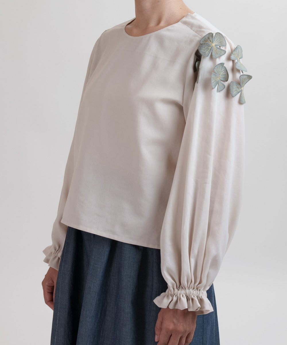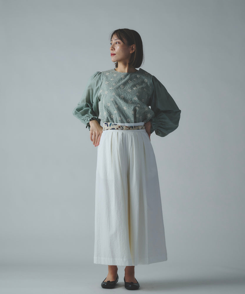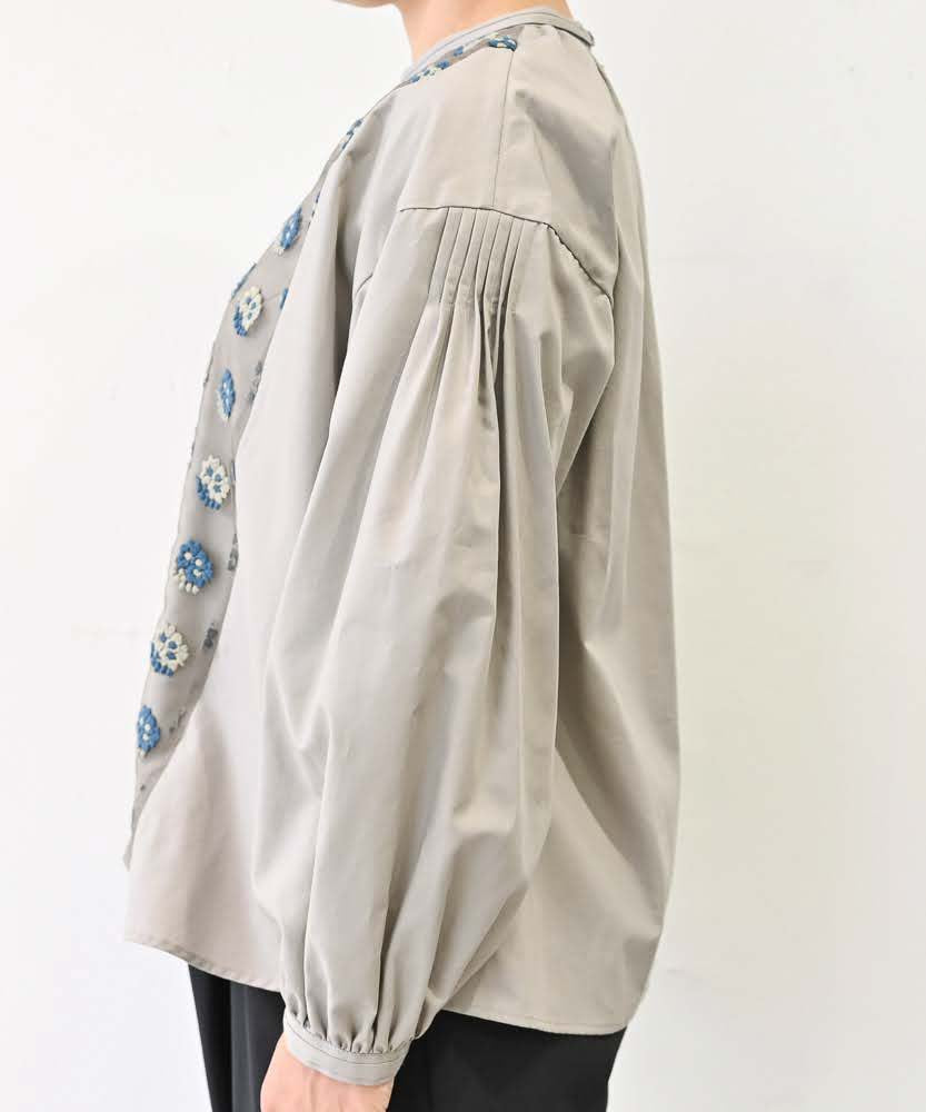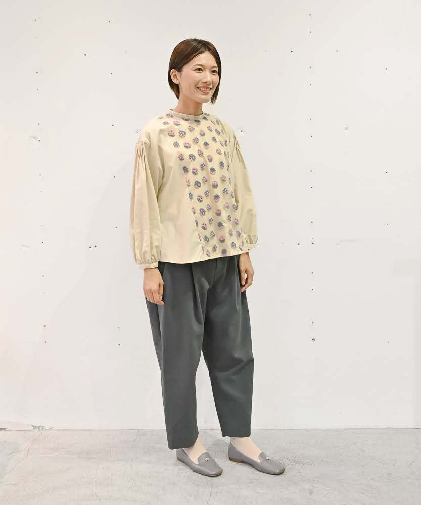 〈遠州織物〉イラカ刺繍切り替え ボリューム袖 プルオーバーブラウス (muk920)