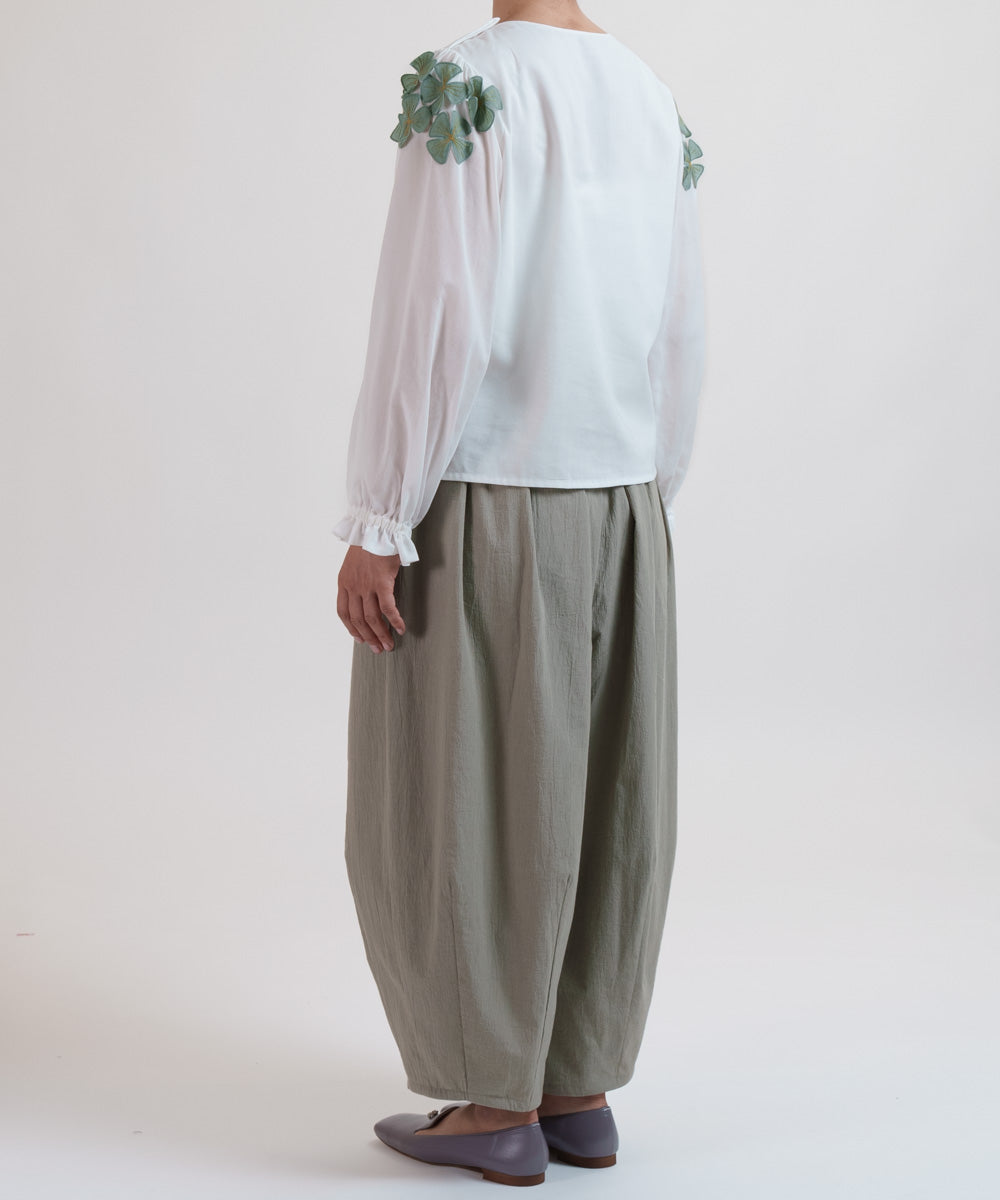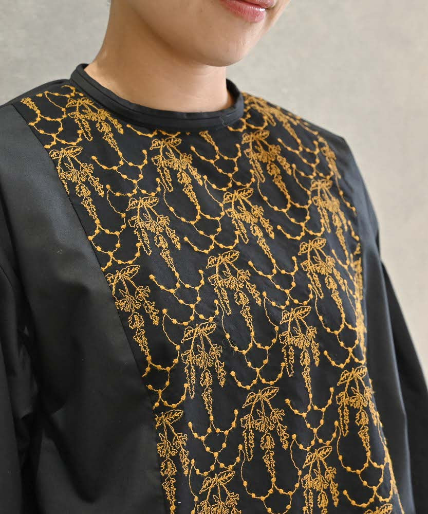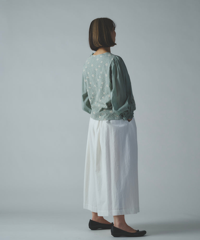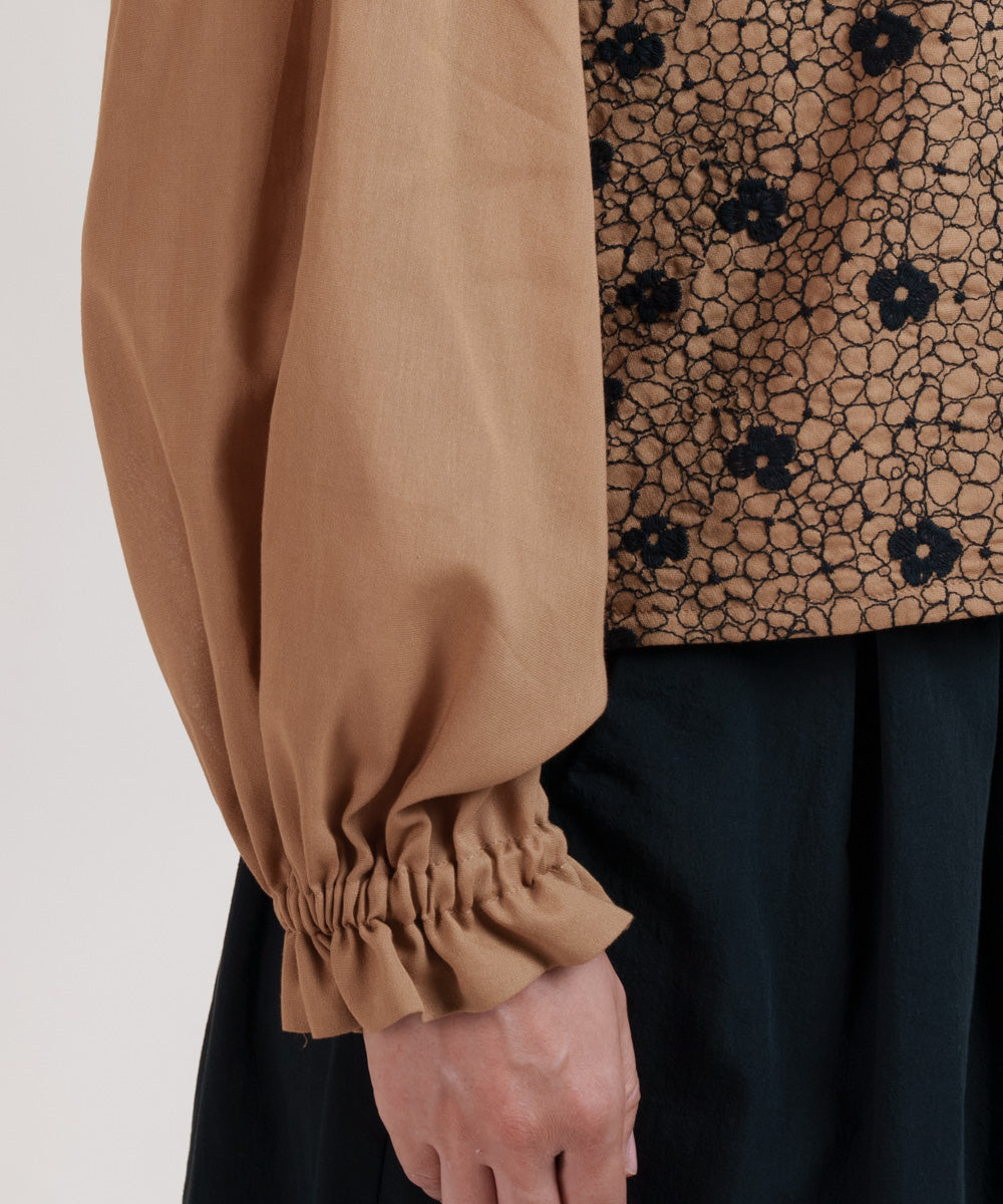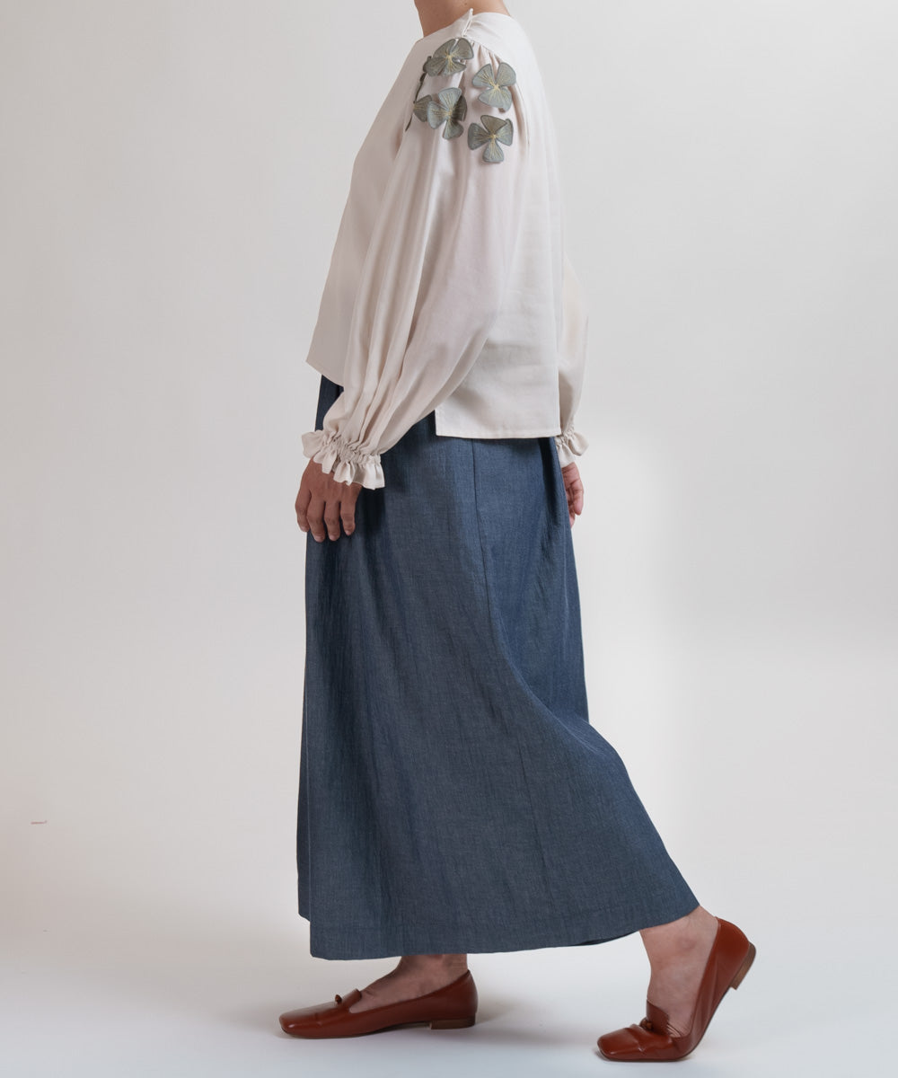 〈遠州織物〉イラカ刺繍切り替え ボリューム袖 プルオーバーブラウス (muk920)