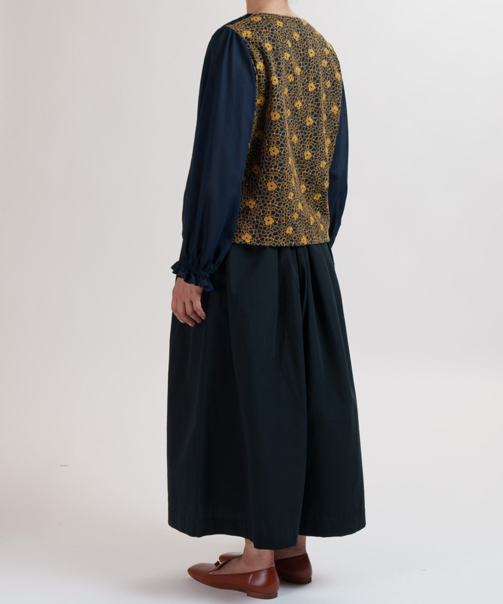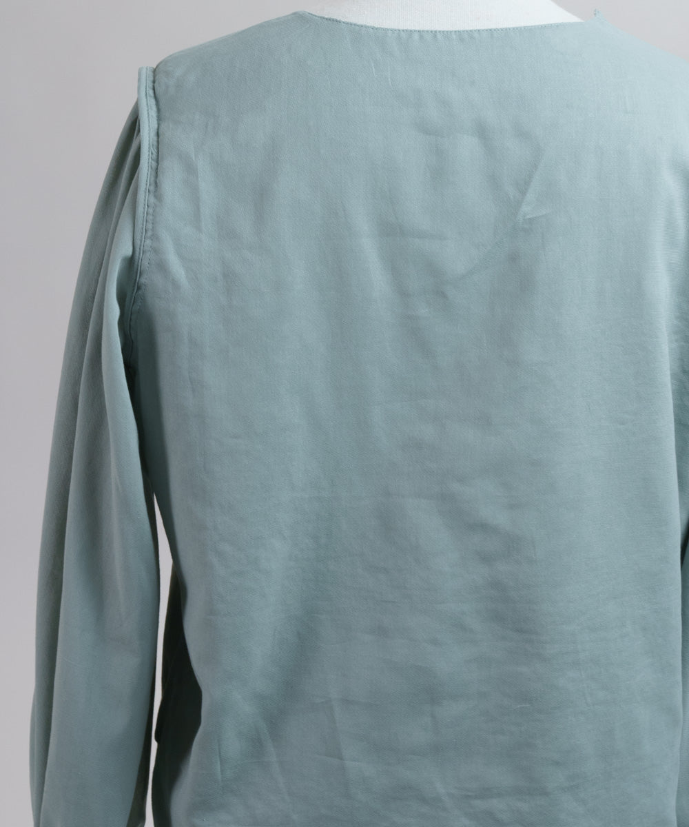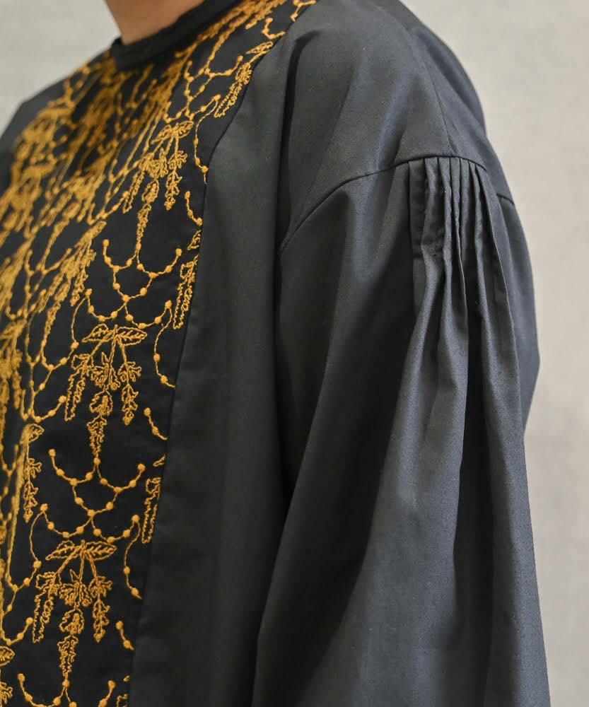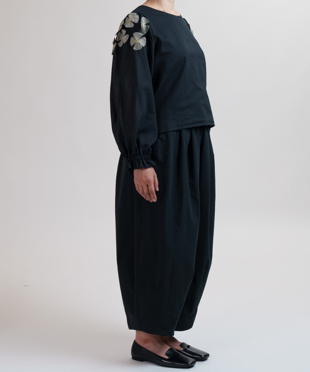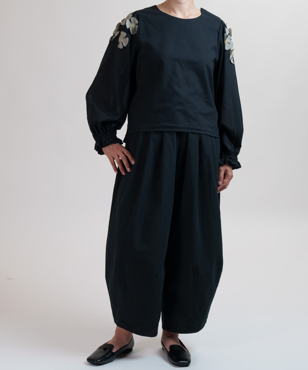 〈遠州織物〉イラカ刺繍切り替え ボリューム袖 プルオーバーブラウス (muk920)