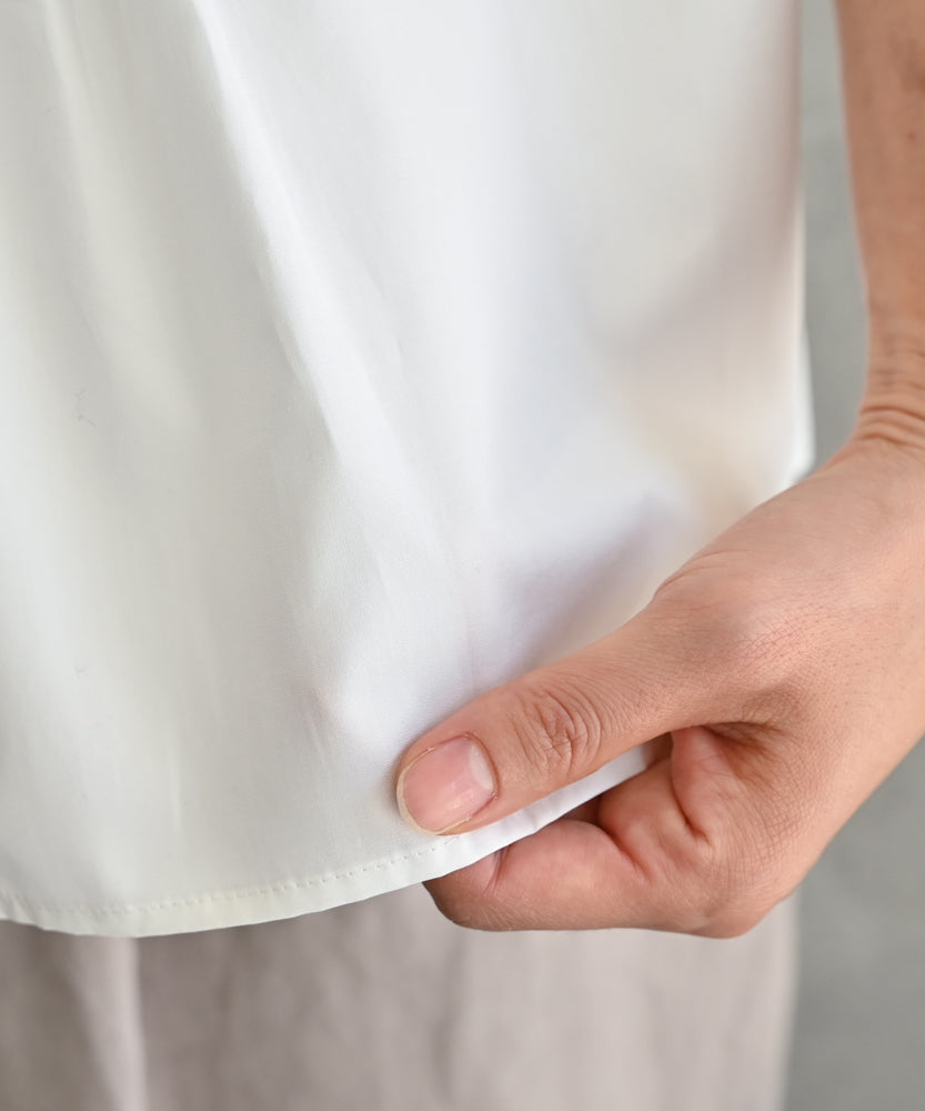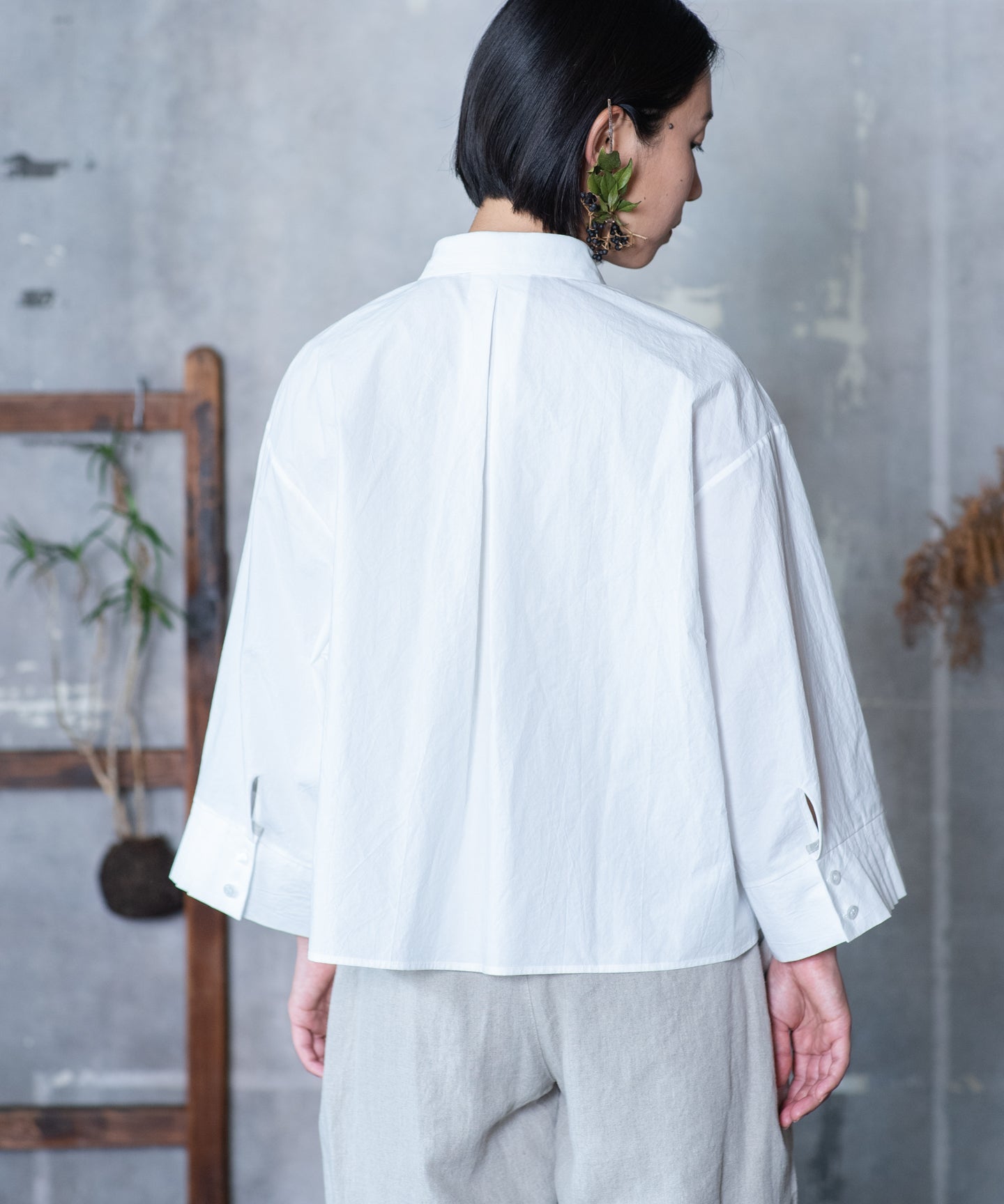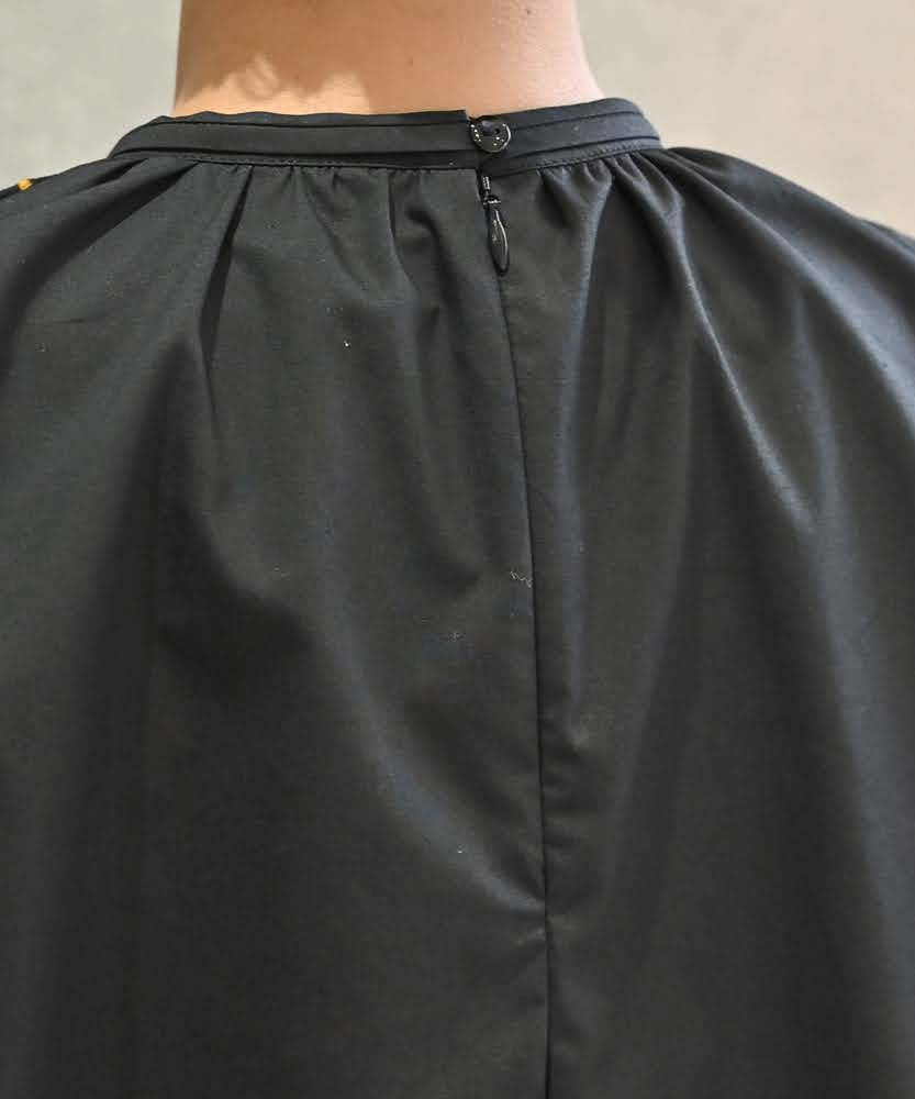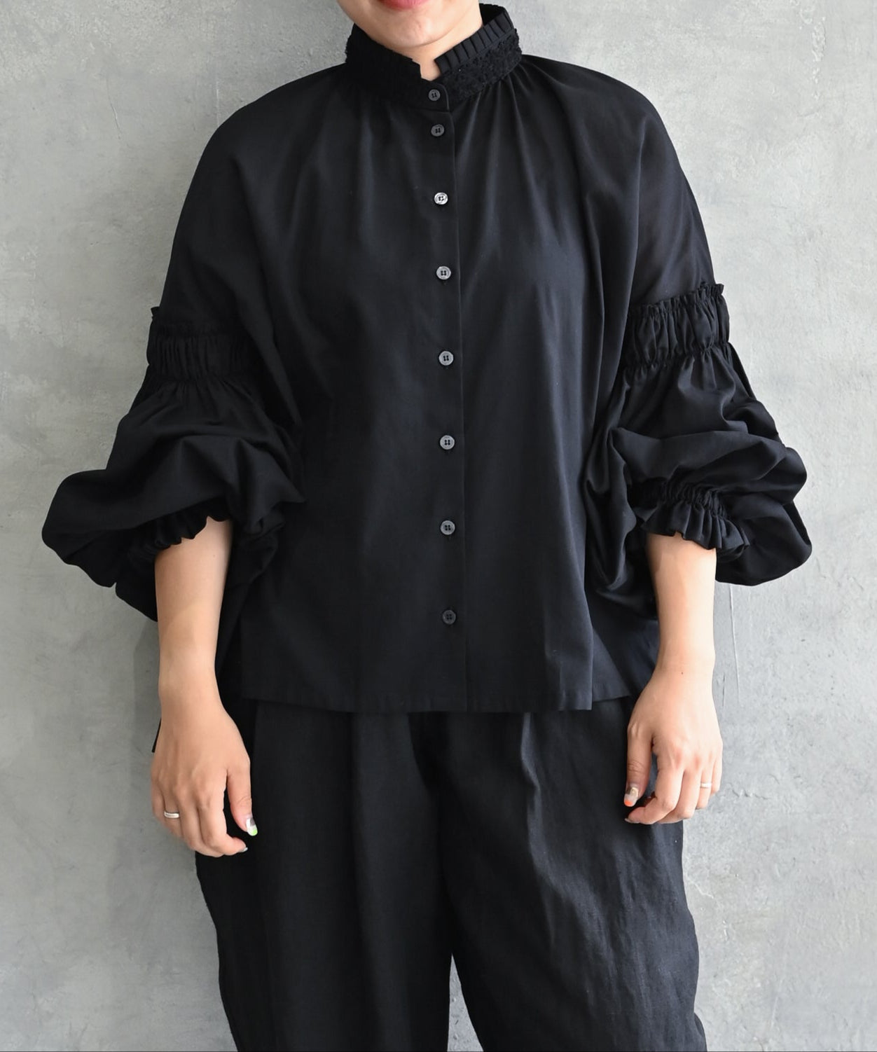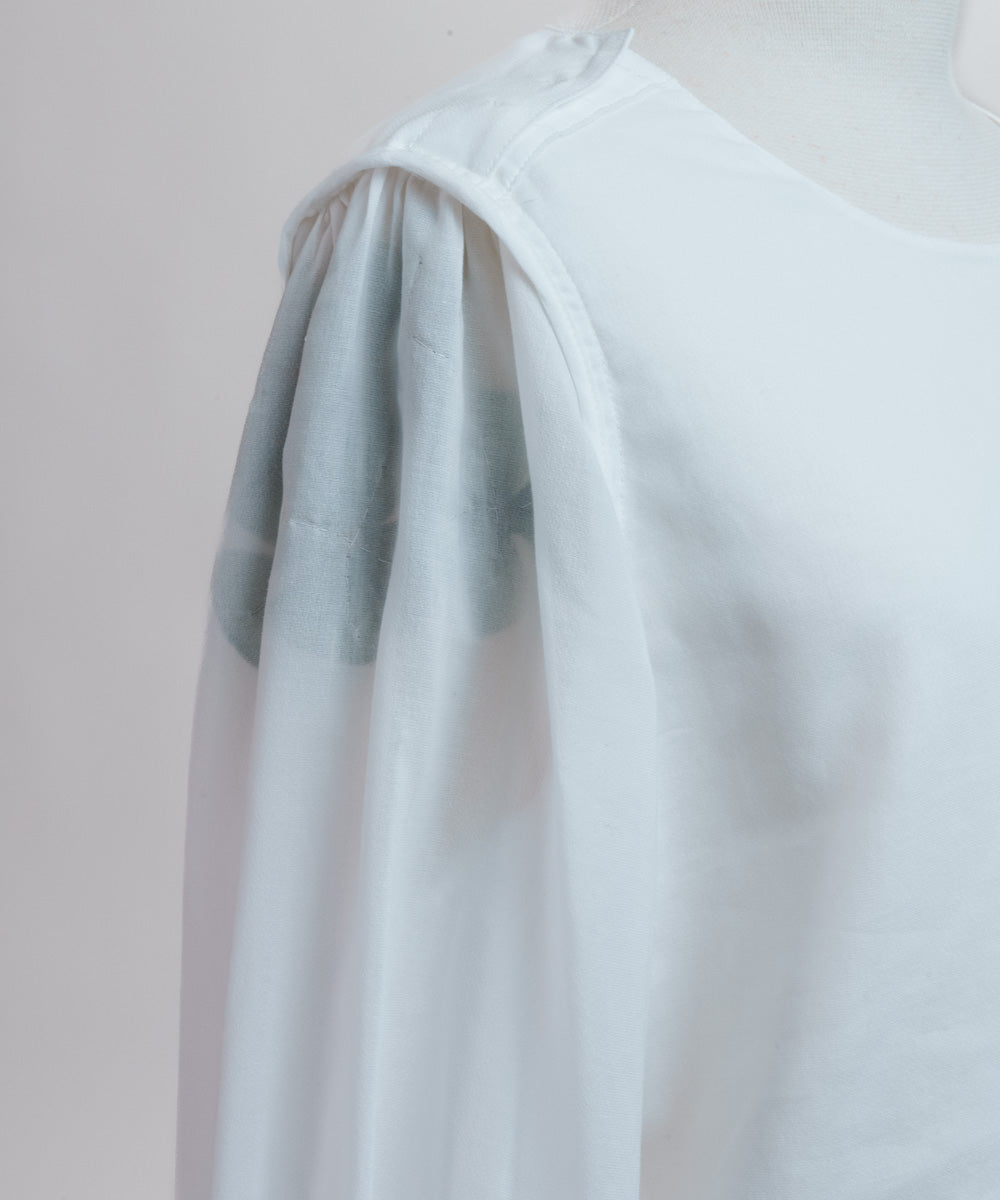 〈コットンタイプライター生地〉後ろギャザー入り フレンチスリーブのブラウス (muf925)